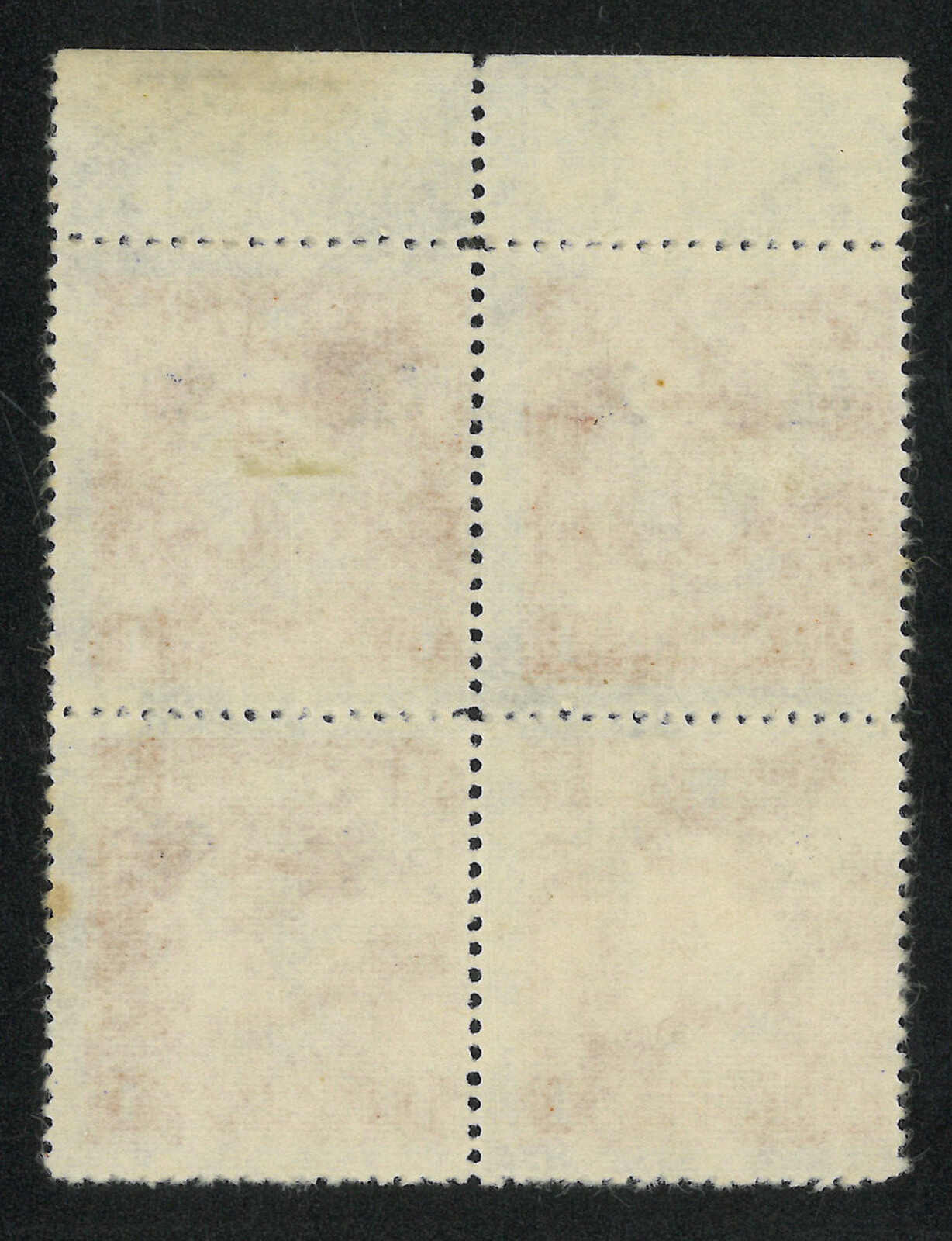 1945 London Print SYS 2c ovpt. large figure “Mengkiang” and re-surch 50c in block of 4, with surcharge shifted variety (Chan JM193), MNH with original gum.