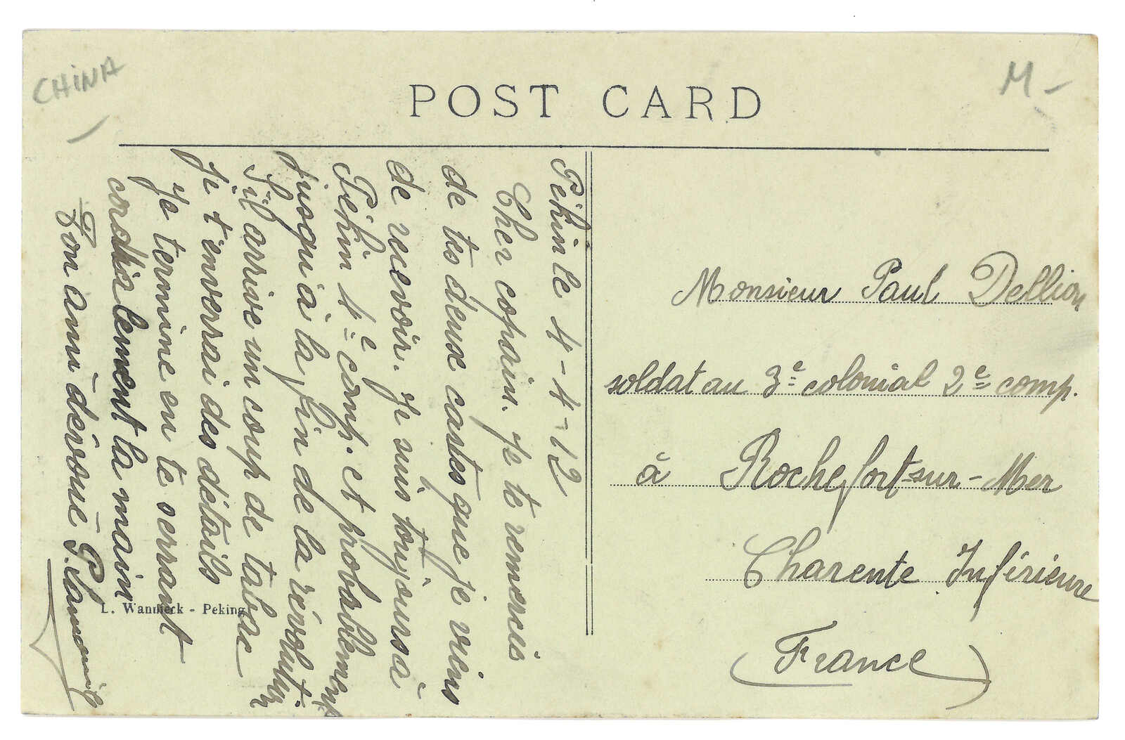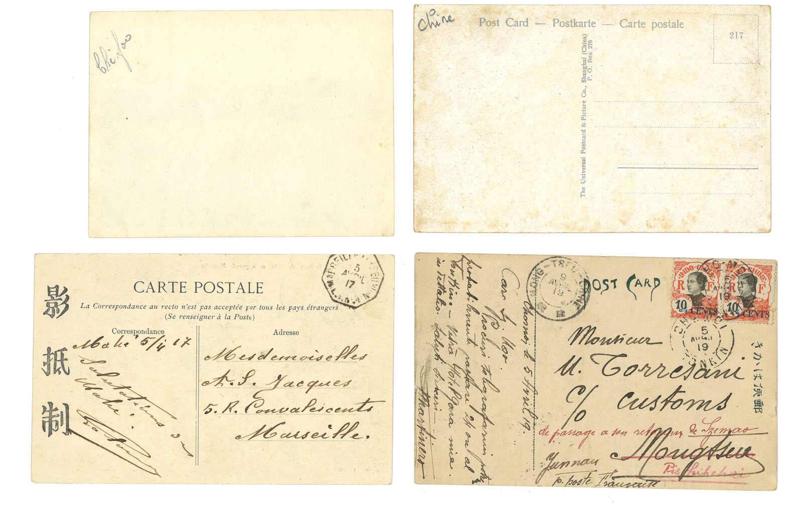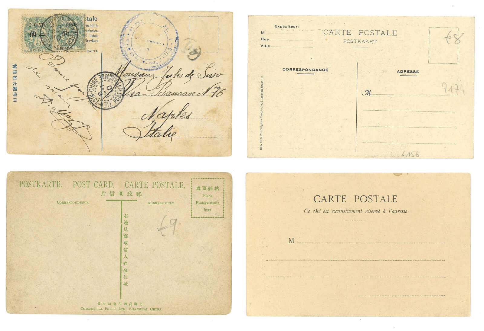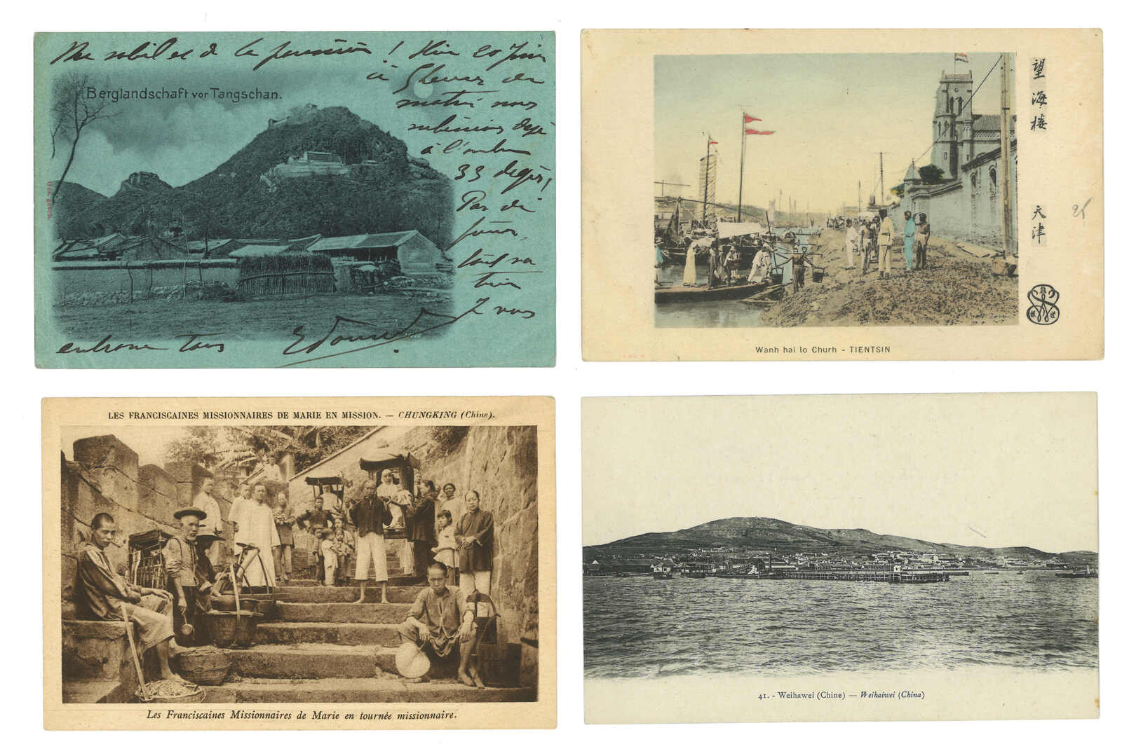 一組四件天津、重慶、唐山及威海衛圖片明信片,當中三件為新,一件由法國對華遠征軍實寄。(Image 1)
