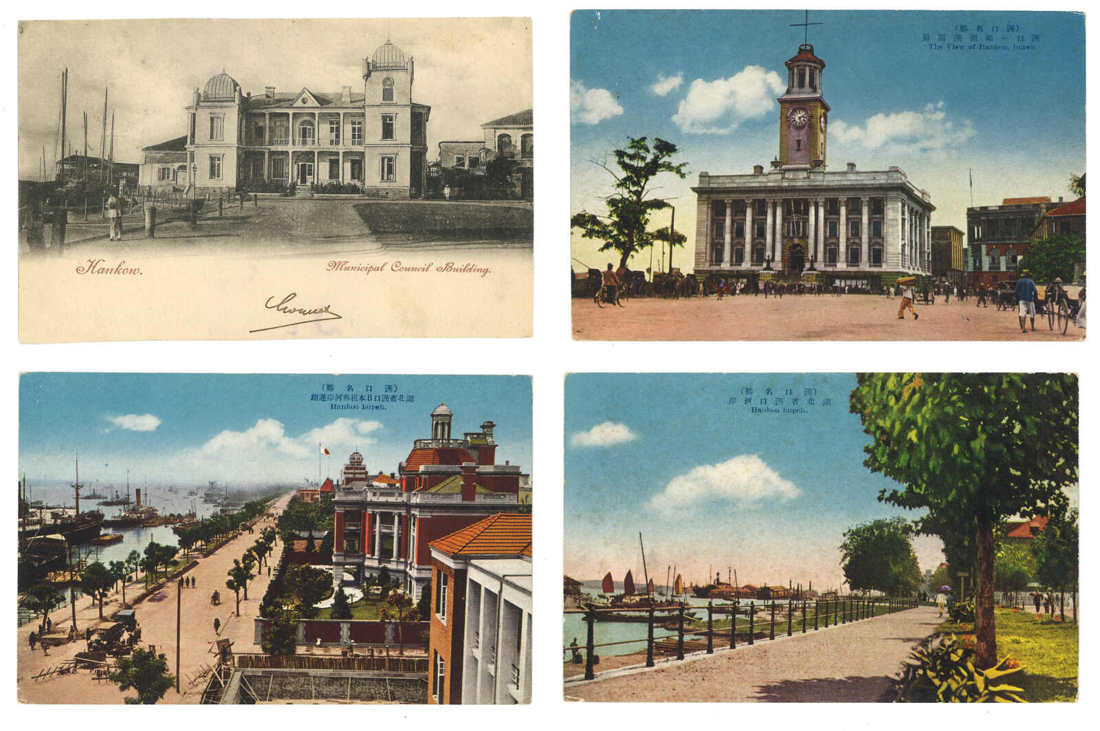 一組四件漢口風光明信片,當中三件彩色片出自同一系列,未使用。(Image