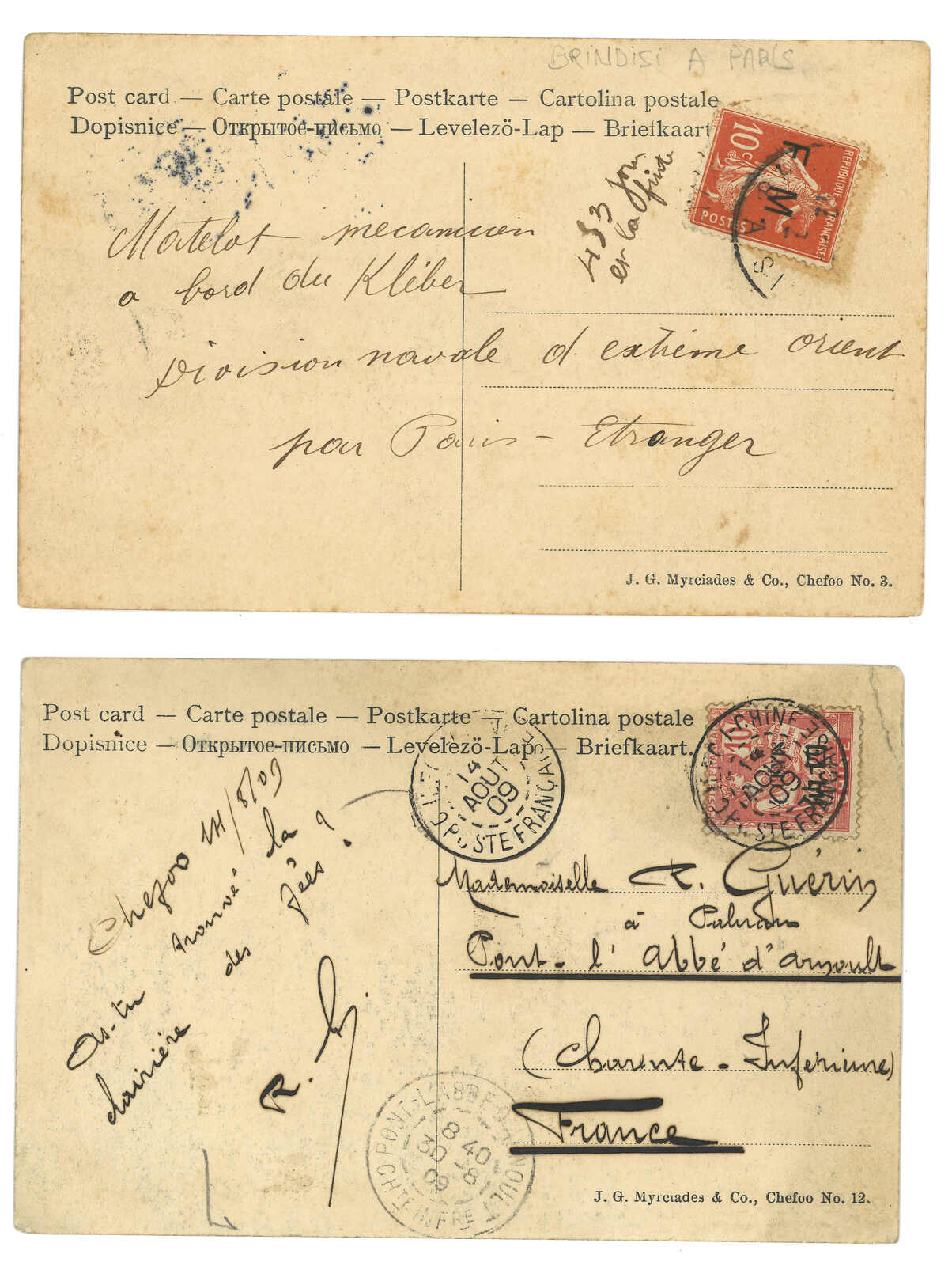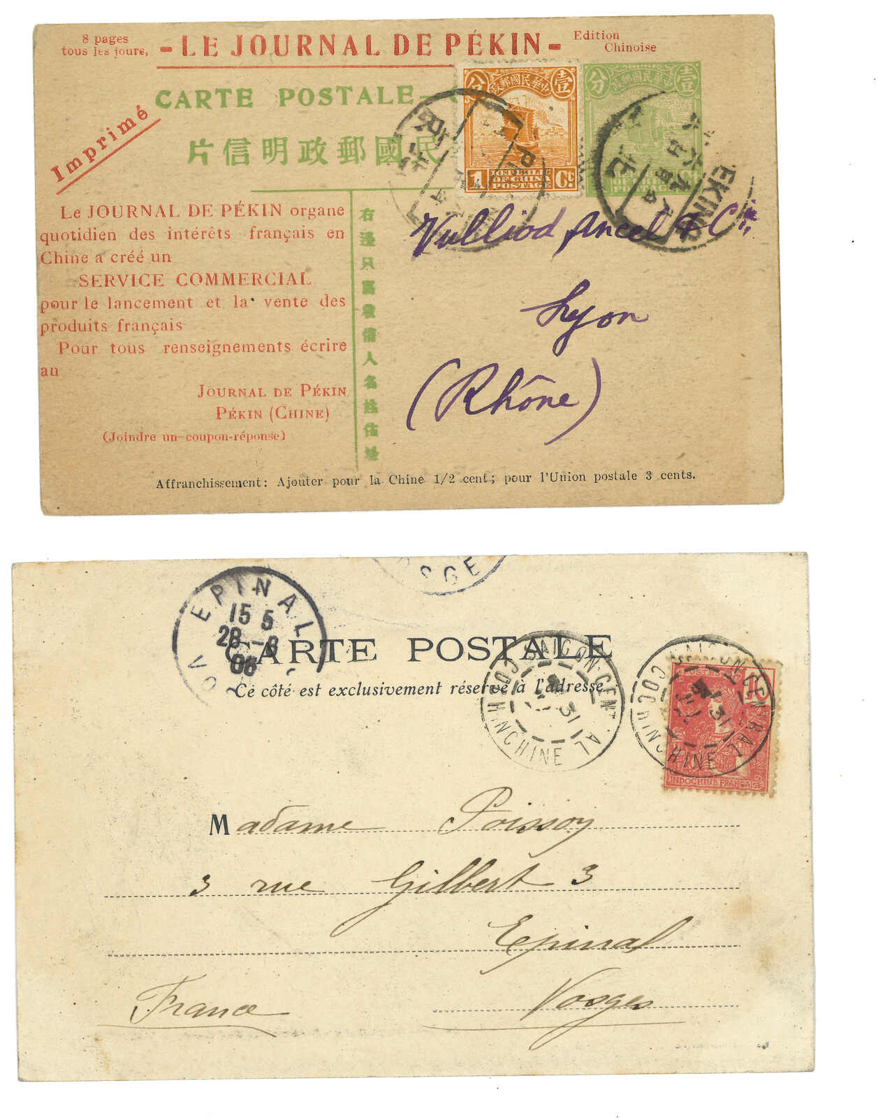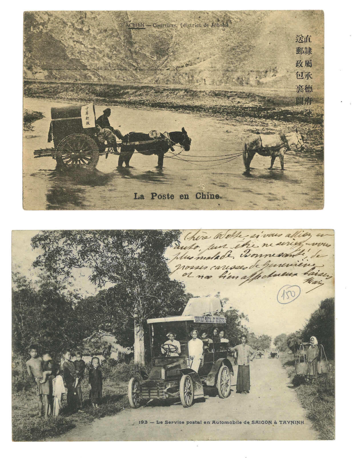 A pair of picture postcards in theme of postal serivice in China and French Indochina. Both commerically used. Interesting rare theme.