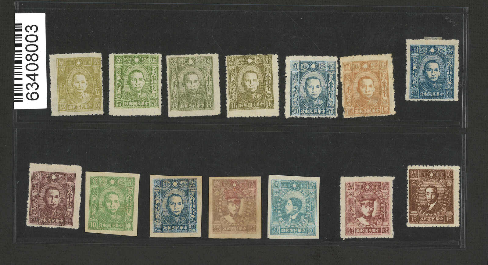 1945年未發行之孫像蒙文郵票一組18枚,面值由2分至20元,無貼或背貼。(Image 1)