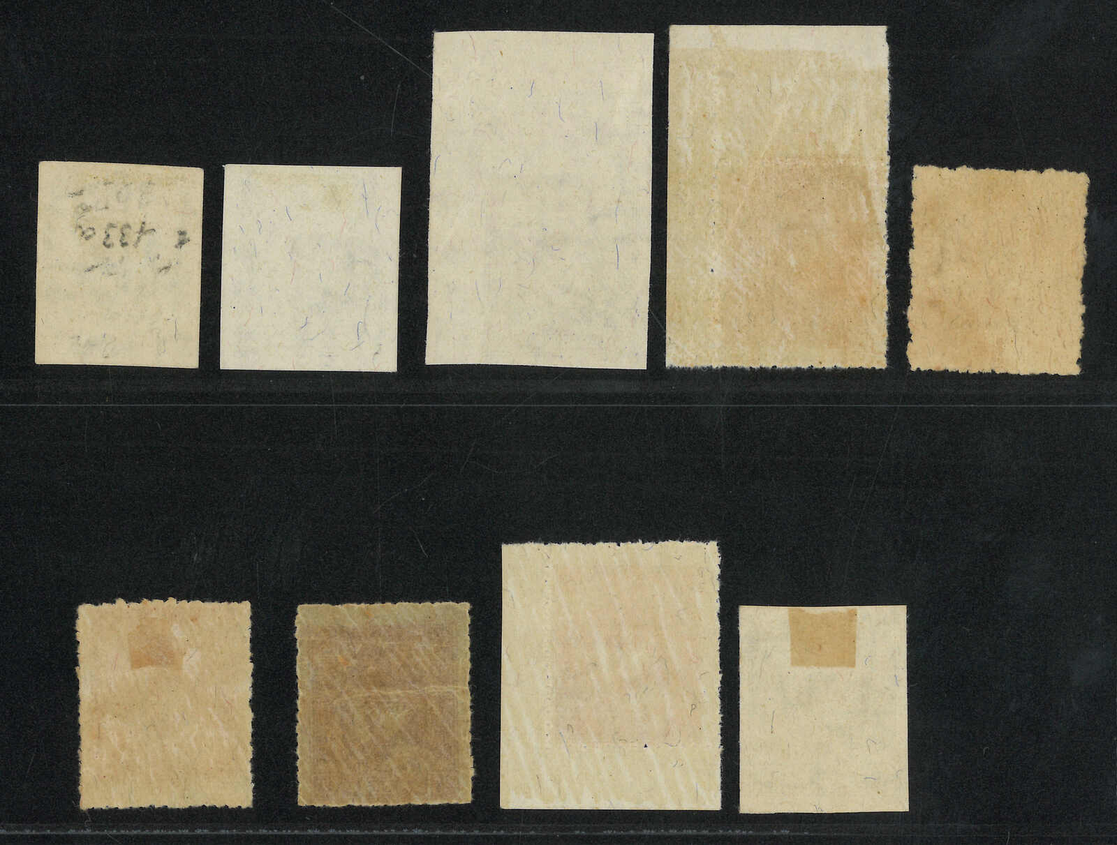 1945 unissued Martyrs Mongolian stamps in a group of 9, denominations from 1c to 25c. MNH/MH without gum as issued.