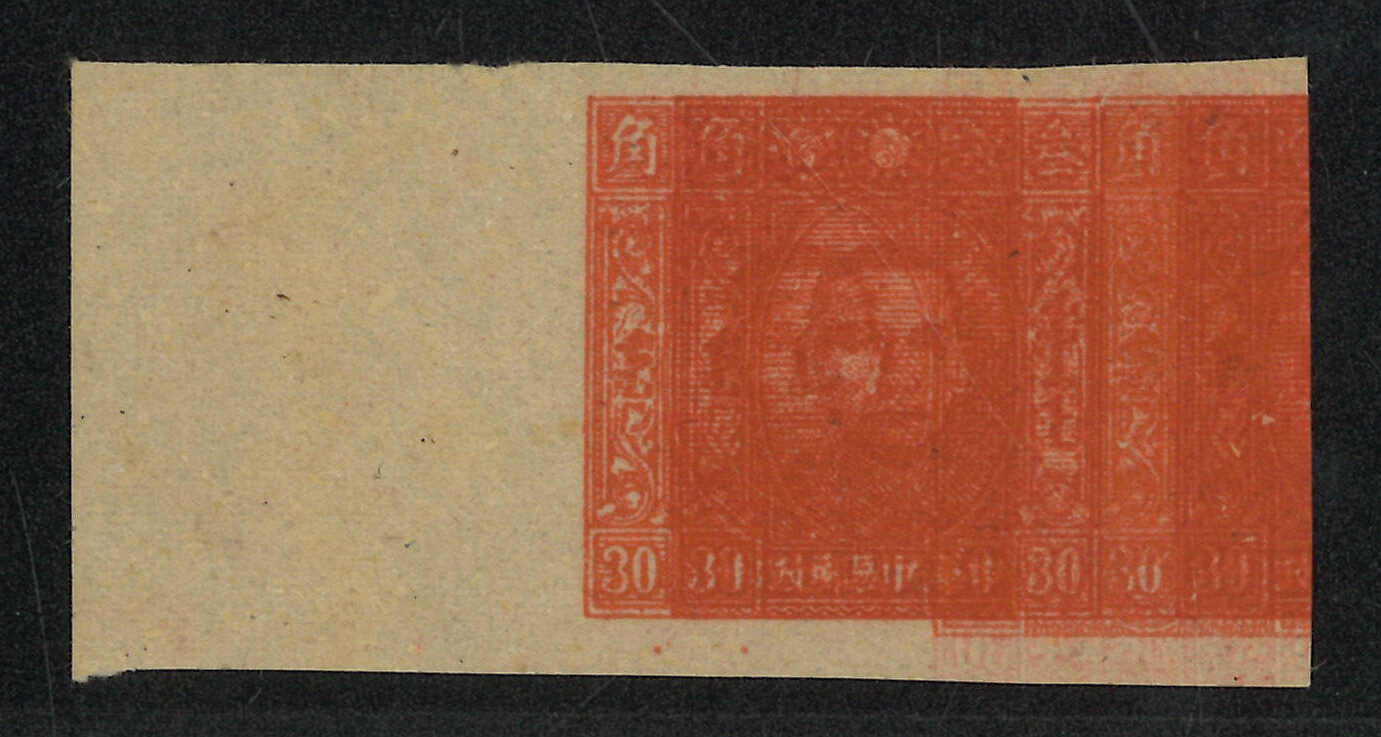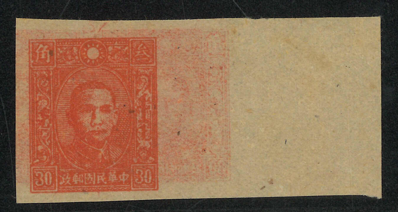1945 unissued SYS Mongolian 30c, with two-side and double impression variety.