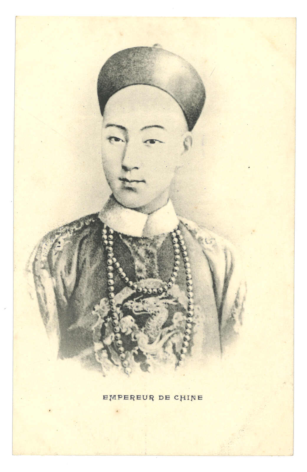 約1900年代“中國皇帝”肖像明信片。雖然題為中國皇帝,但此肖像極可能僅為根據畫像之想像創作,而非光緒本人。(Image 1)