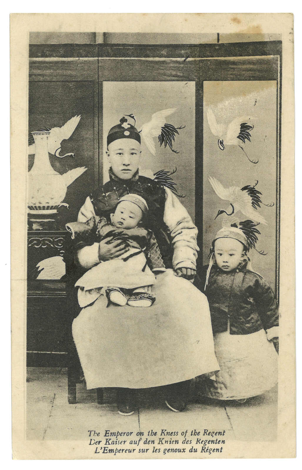 1900s Picture postcard of Puyi with his father Prince Chun and brother Pujie. With content.