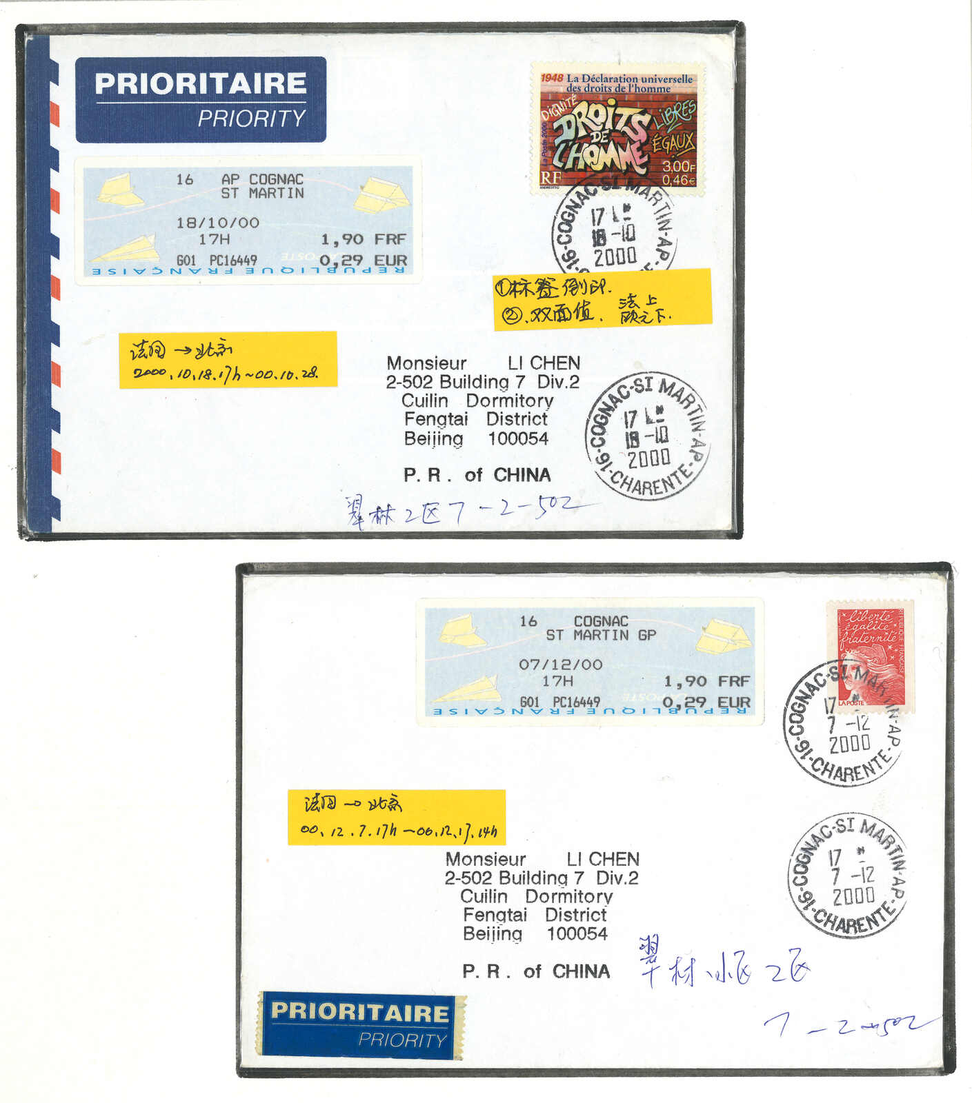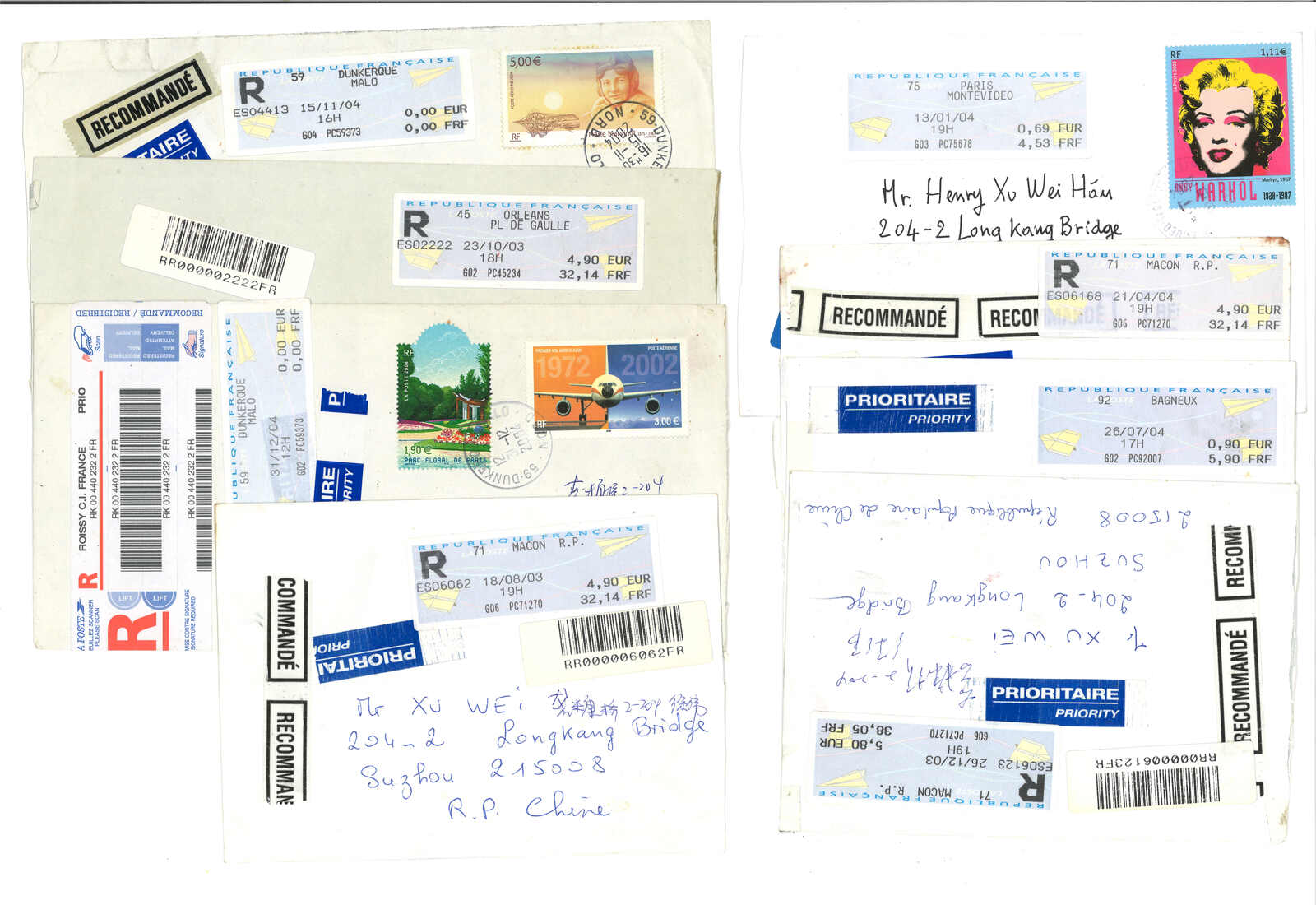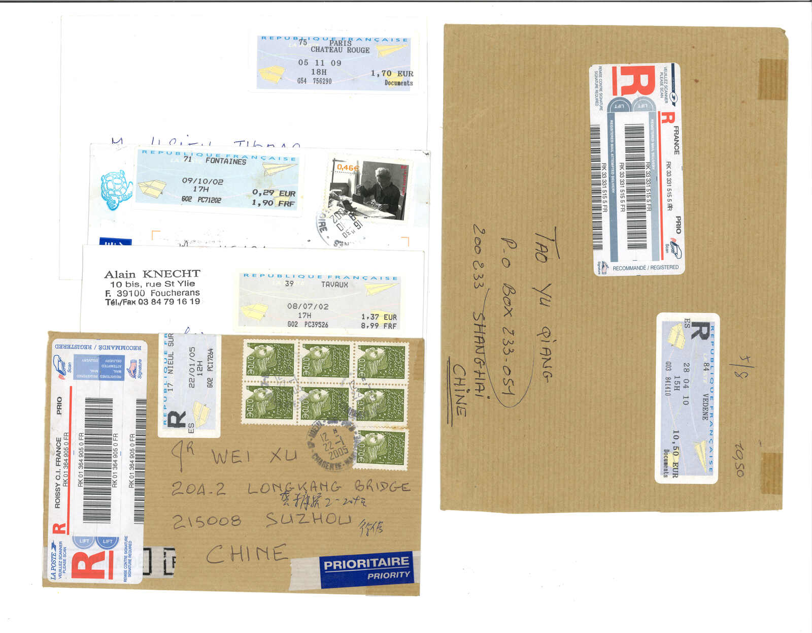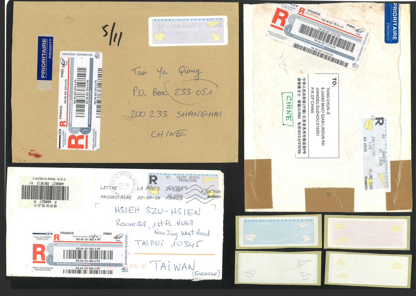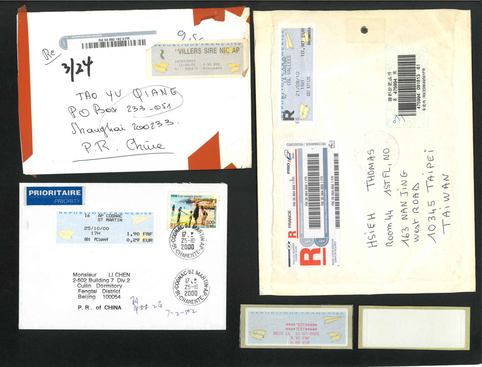 2000年代一組法國電子郵票集藏,包括2枚票及37件封,大多為“紙飛機”票,包含掛號、混貼等郵例。(Image 1) (Image 2) (Image 3) (Image 4) (Image 5) (Image 6) (Image 7) (Image 8) (Image 9) (Image 10)