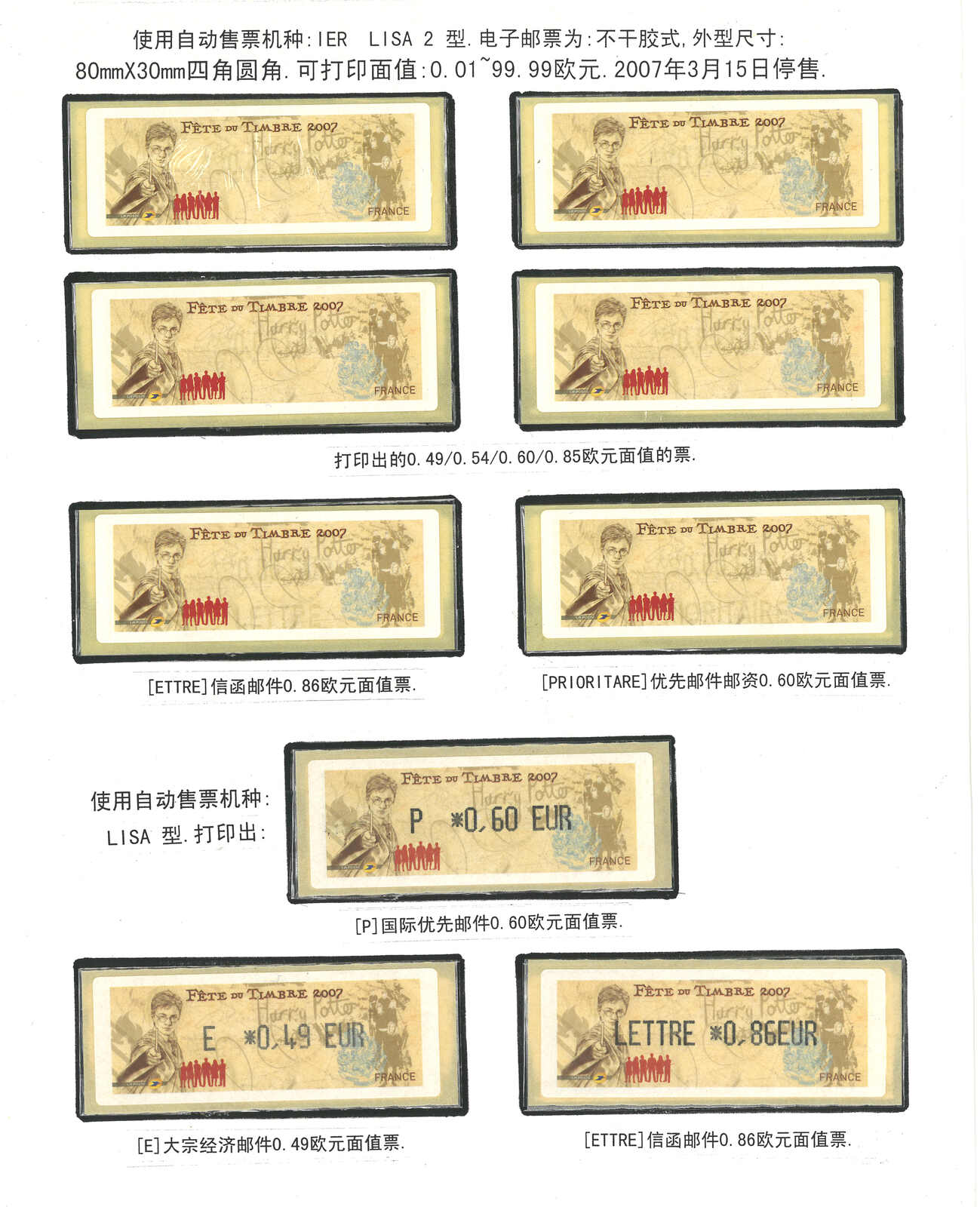 3503 ** imageAn assorted group of about 75 French ATM stamps, including “Dove”, “Birds”, “Harry Potter” designs etc. A beautiful group.