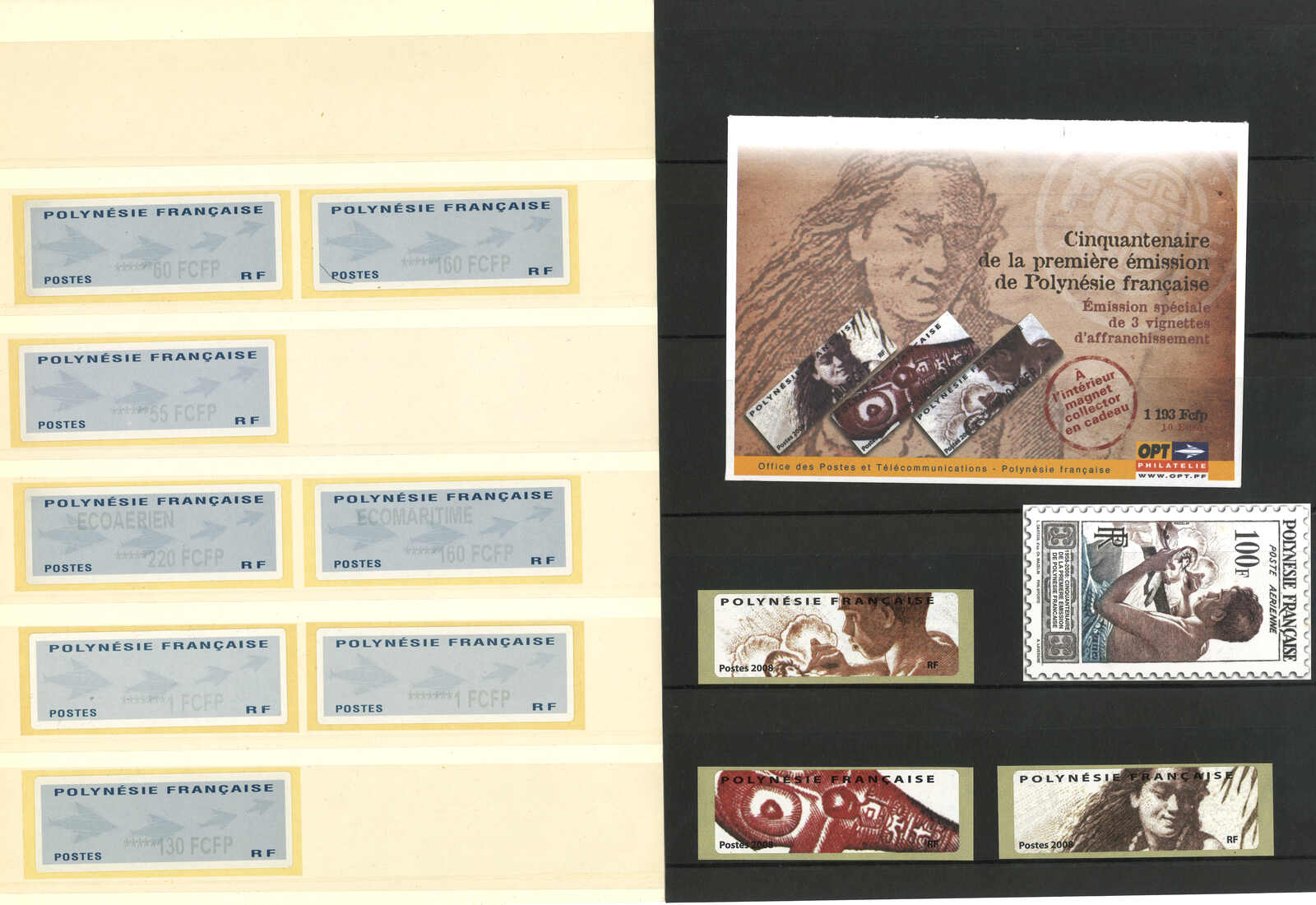 3557 ** image2003-2008 a group of 11 French Polynesia “Postal Logo” and “50th Anniv” ATM stamps.