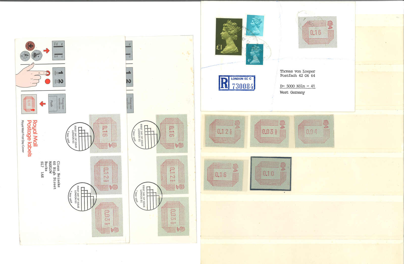 1984至2000年代一組英國電子郵票及郵資標籤,包括約80枚票及20件信封,包括大量較早期之1984年Frama票及首日封、國家 博物館樣票組等。請預覽。(Image 1) (Image 2) (Image 3) (Image 4) (Image 5) (Image 6) (Image 7) (Image 8) (Image 9) (Image 10)