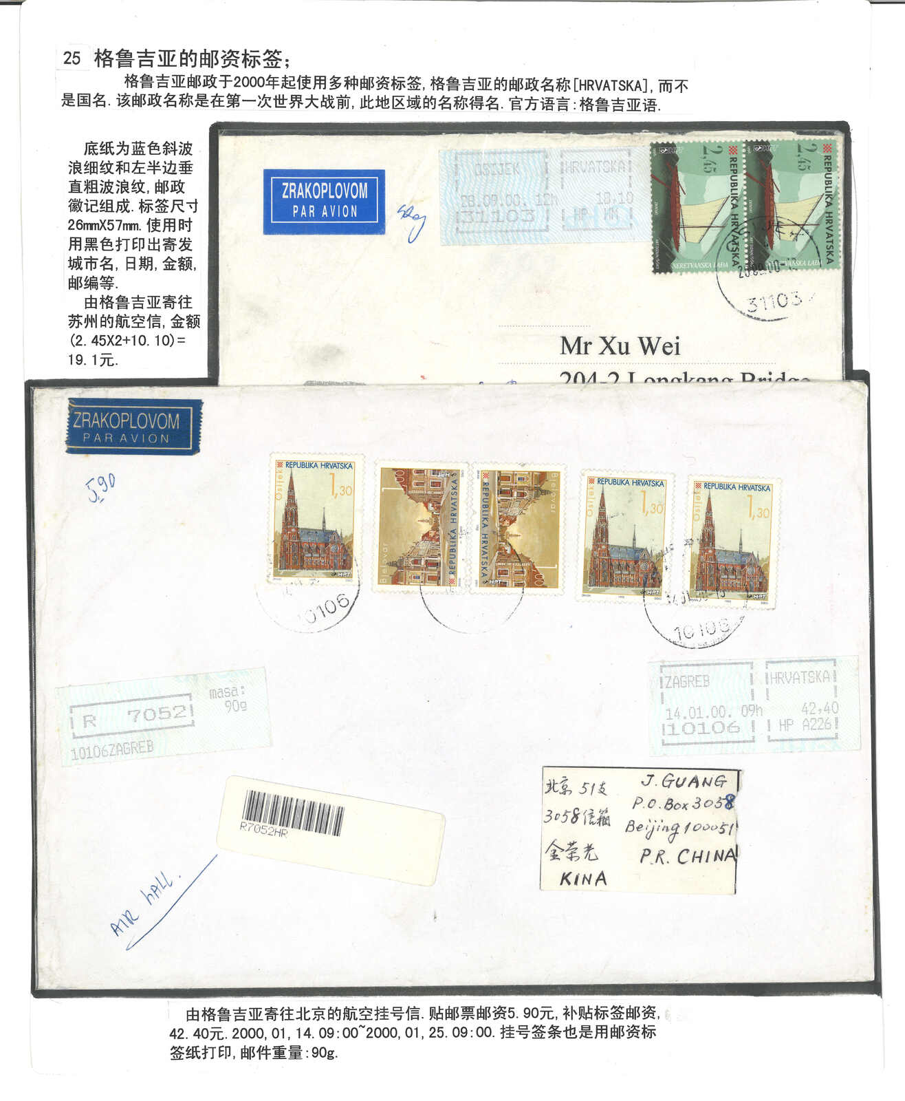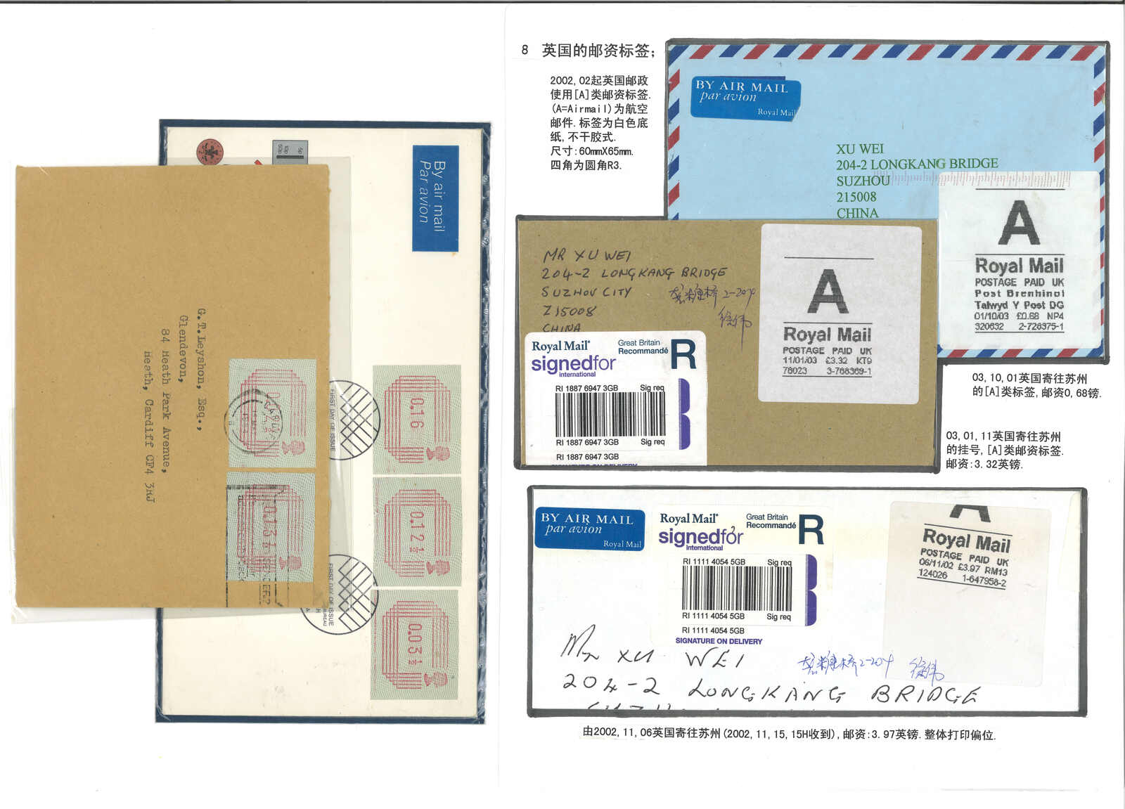 3450 cover image2000s a group of 4 Georgia covers applied with ATM stamps and postage labels, all addressing to China. Partly in combination franking or with R label.