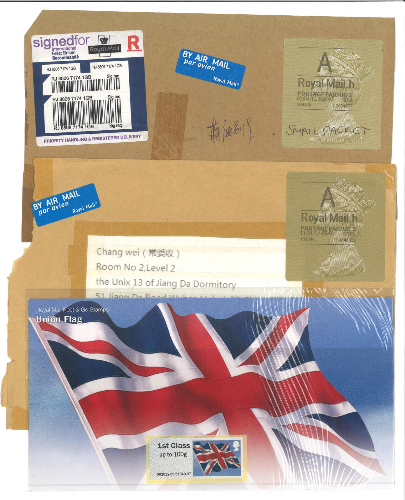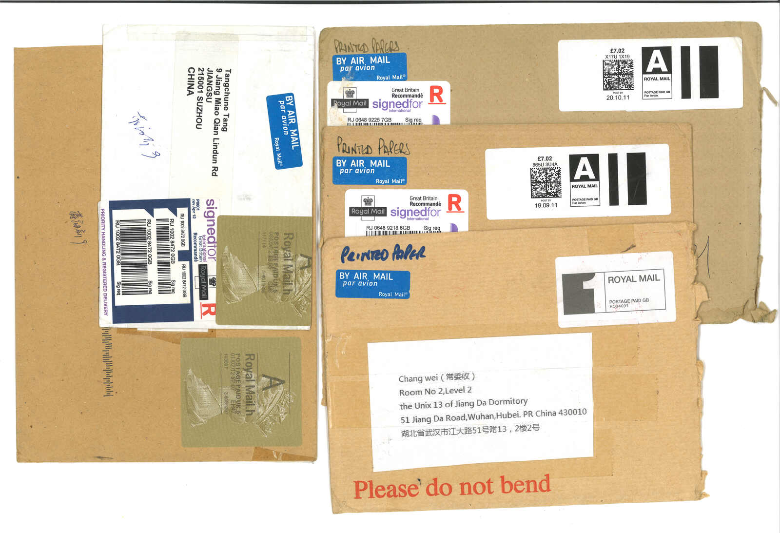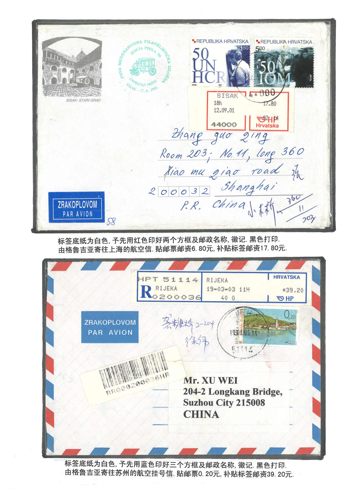 2000年代一組四件貼有喬治亞電子郵票或郵資標籤之信封,均寄中國。部分混貼或貼R章。(Image 1) (Image 2)