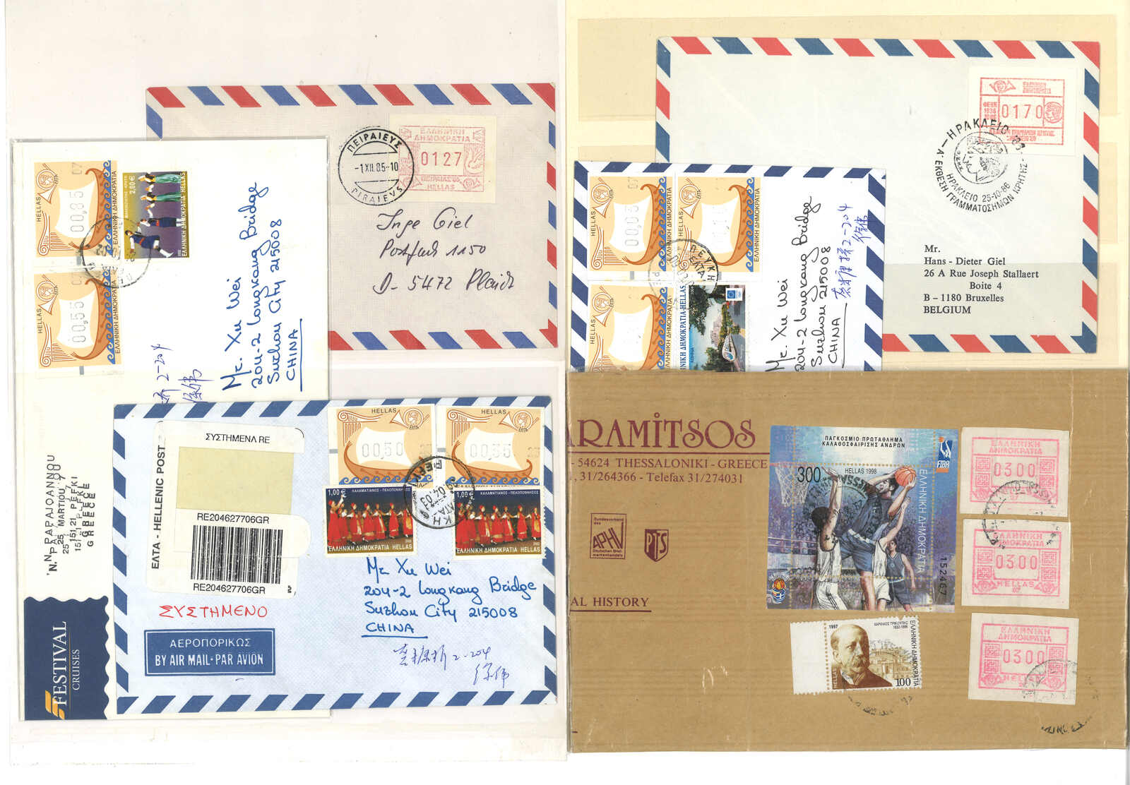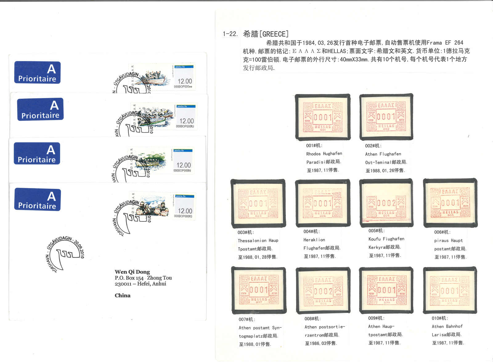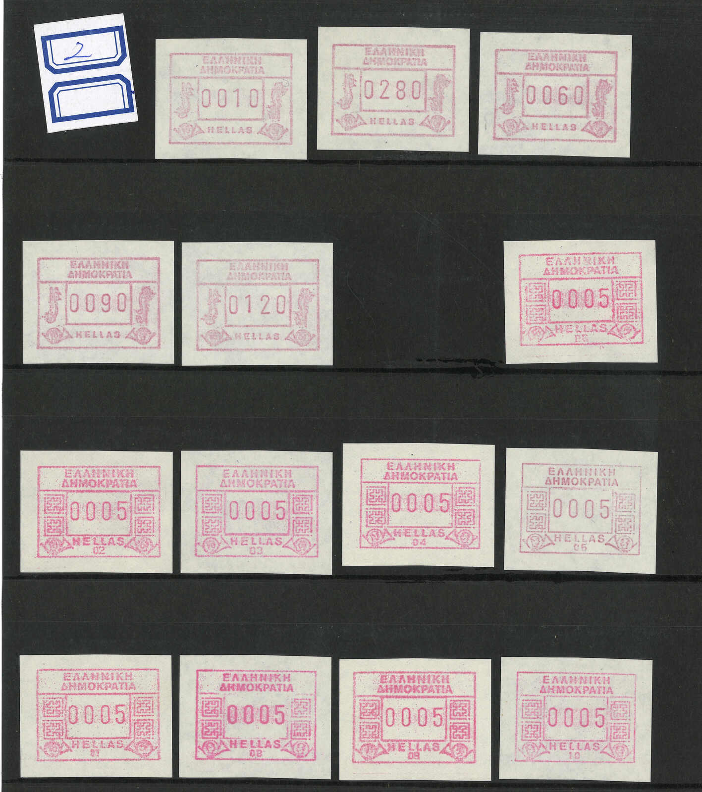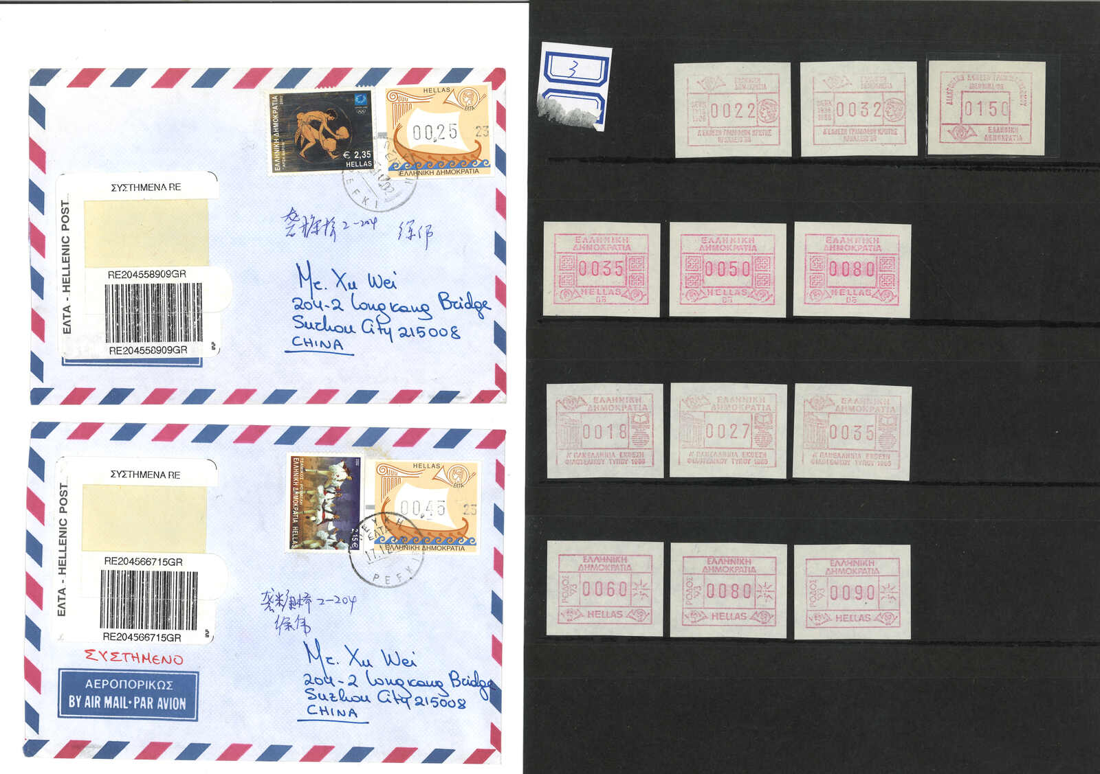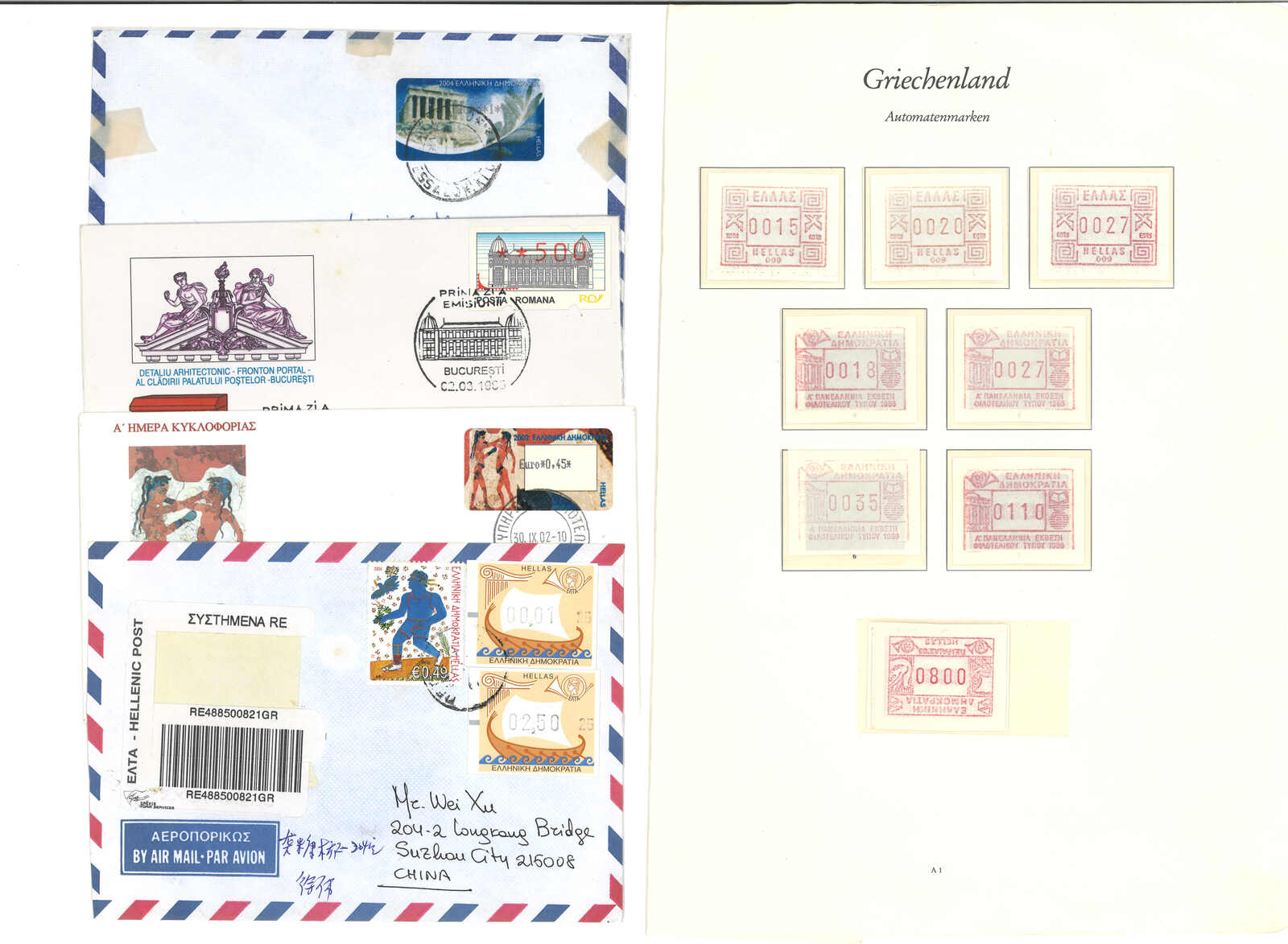 3509 **/cover image1984-2002 a collection of Greece ATM stamps, containing 45 stamps and 12 covers. Most early “Post Emblem” designs. Some with high catalogue price. Please view.