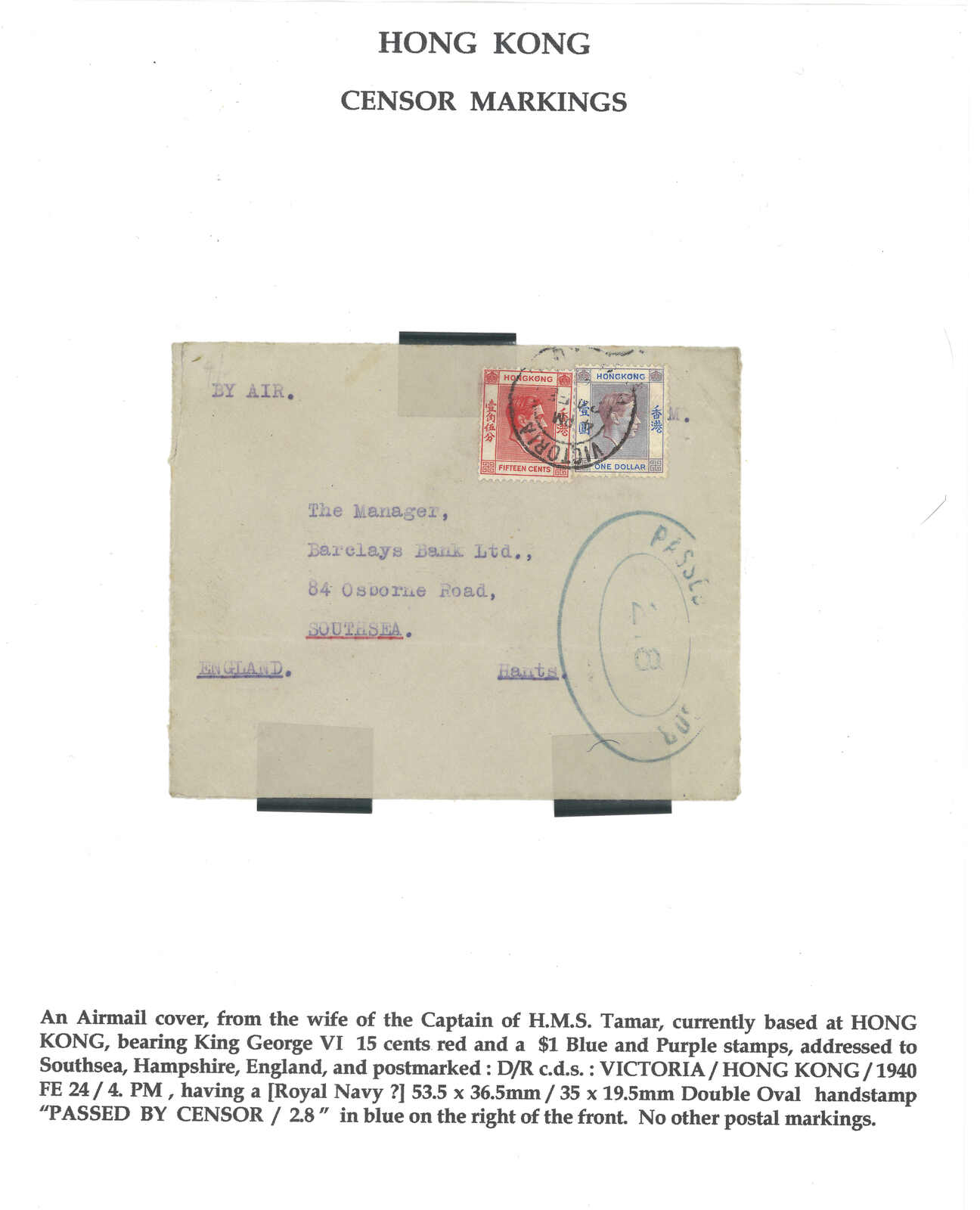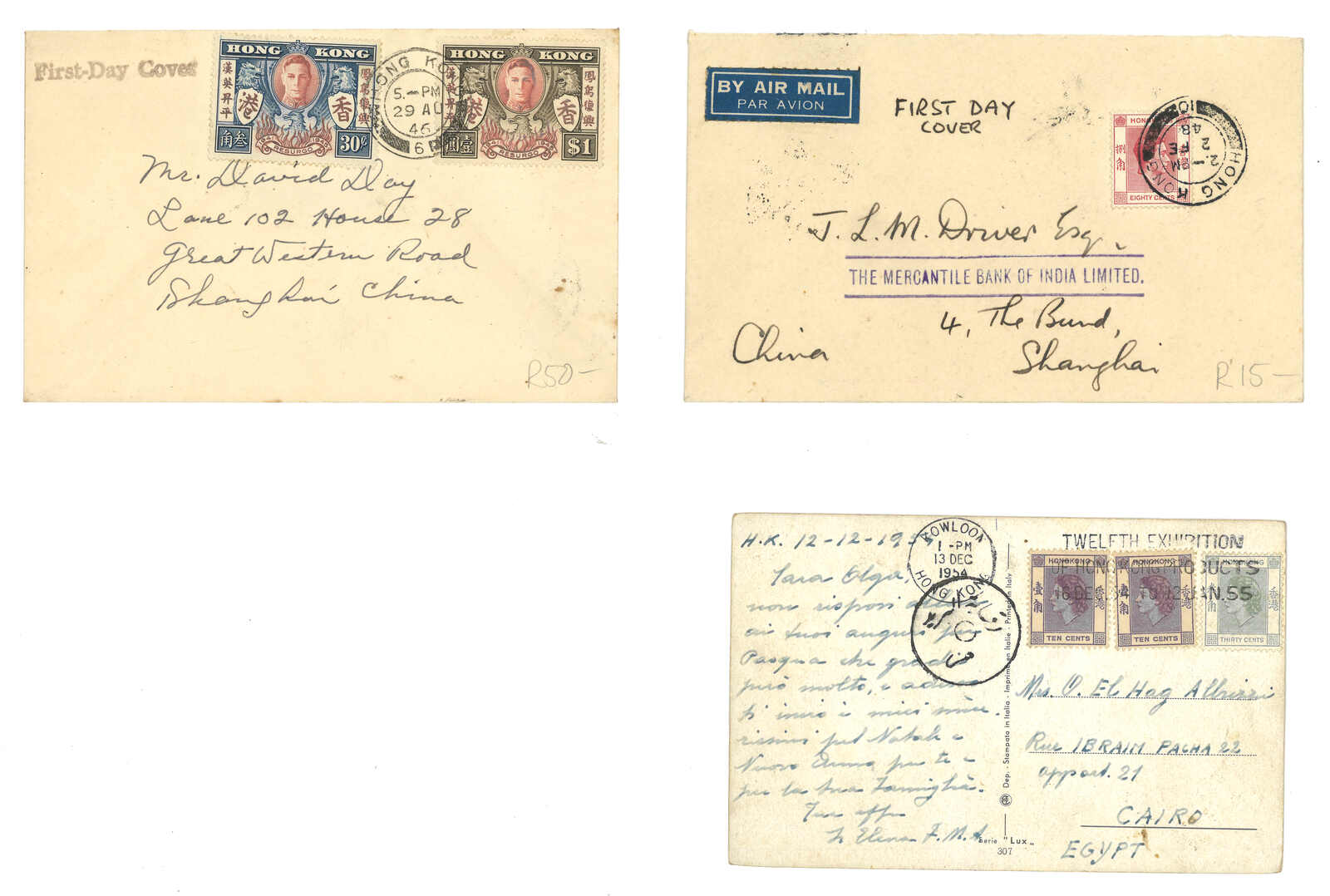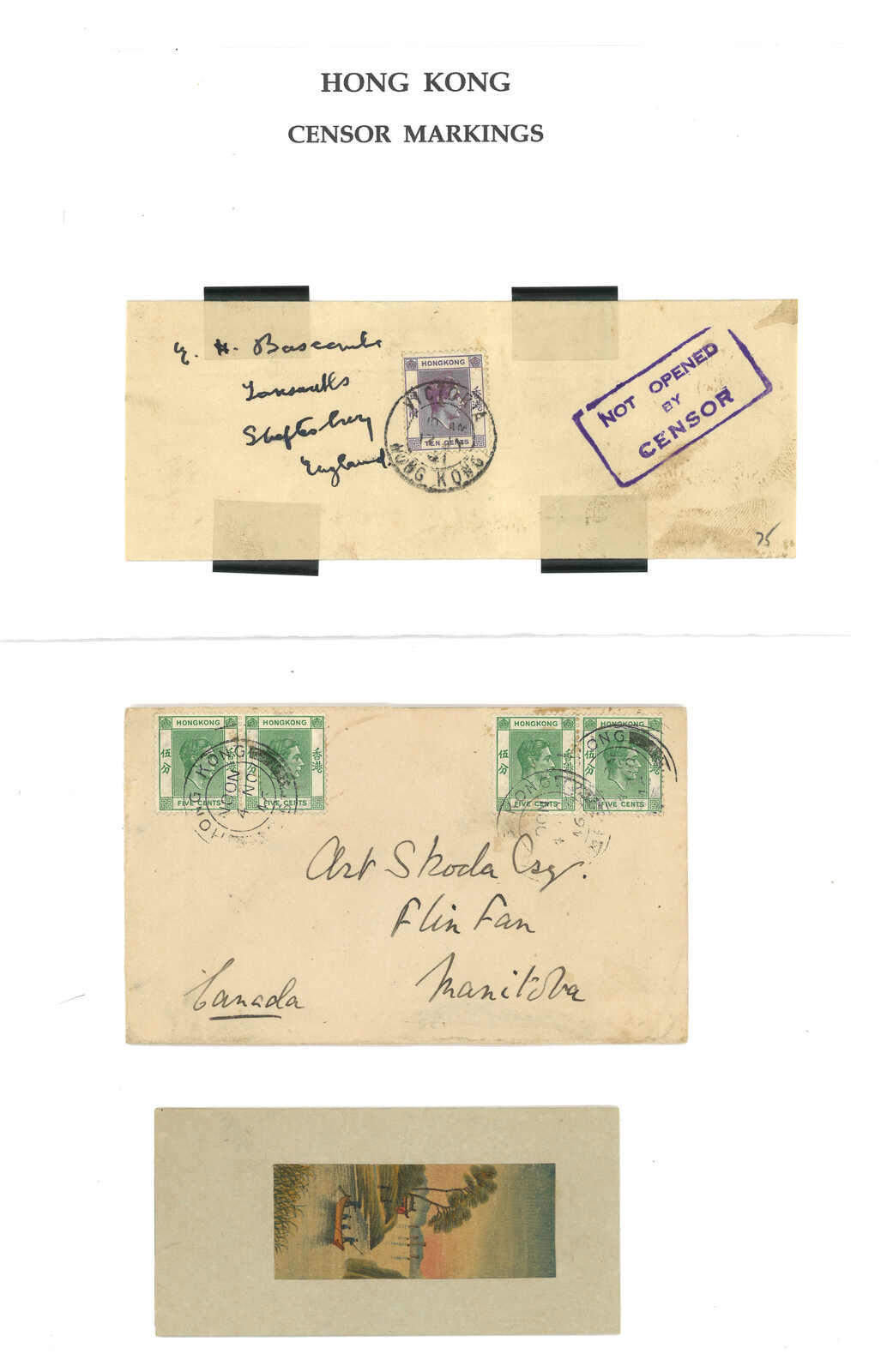 1900-1940s a comprehensive collection of about 38 Hong Kong covers and postcards, featuring WWII censor mails, POW mails, FPO covers, crash mail, survey flight cover, KGVI coronation FDC, postal stationeries etc. Including