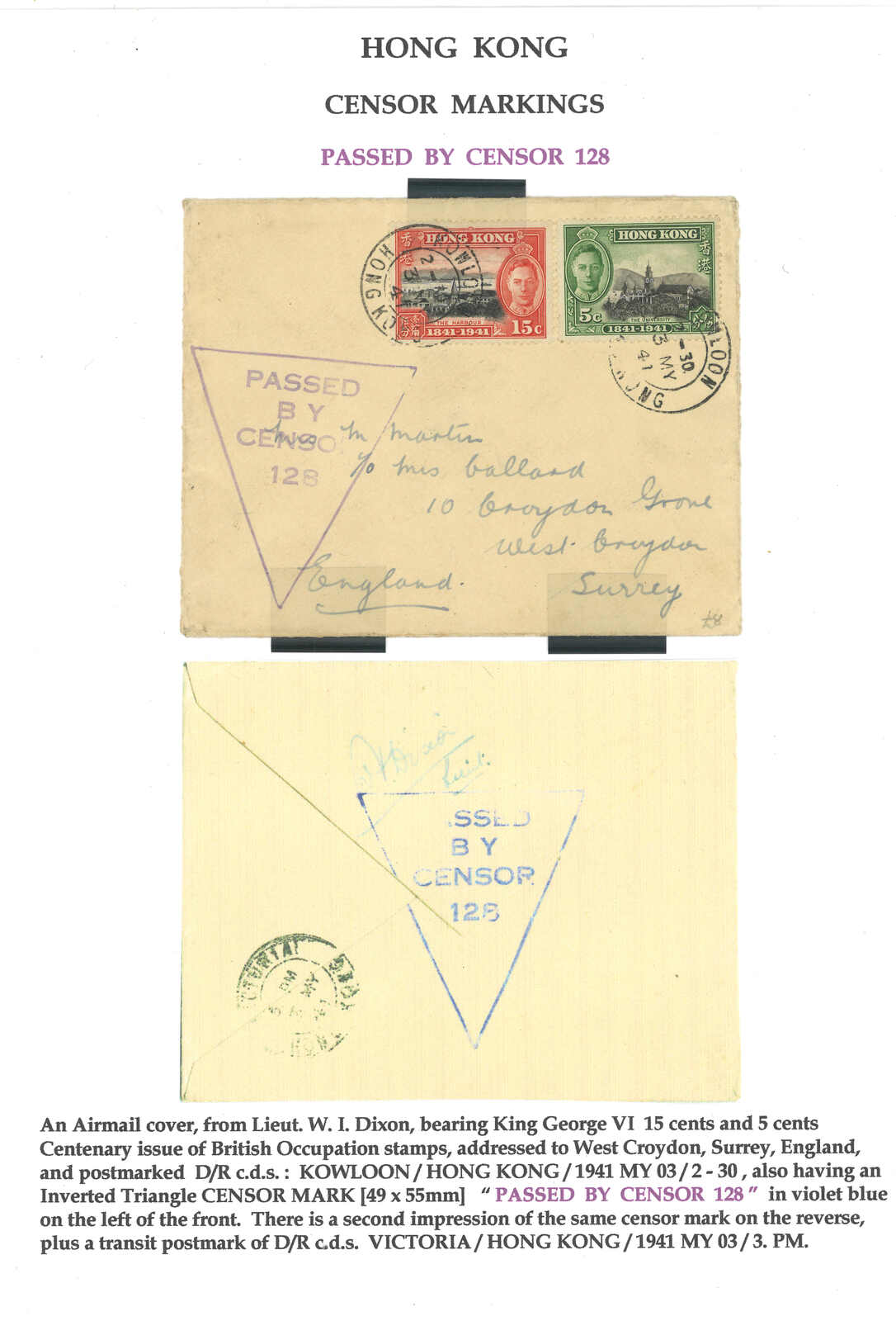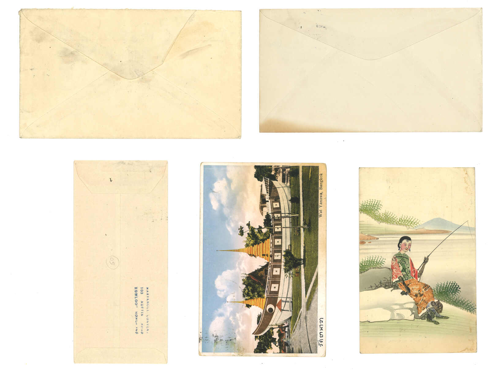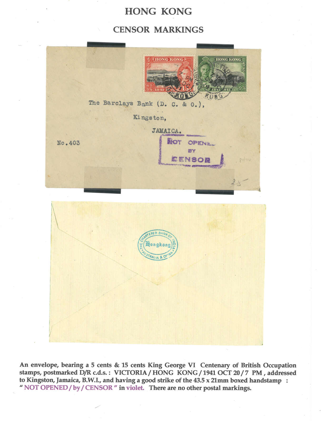 1900-1940s a comprehensive collection of about 38 Hong Kong covers and postcards, featuring WWII censor mails, POW mails, FPO covers, crash mail, survey flight cover, KGVI coronation FDC, postal stationeries etc. Including