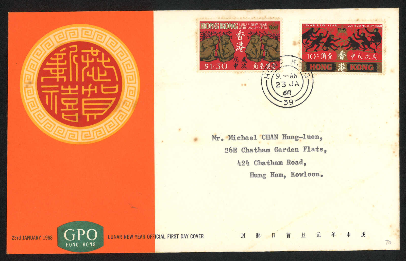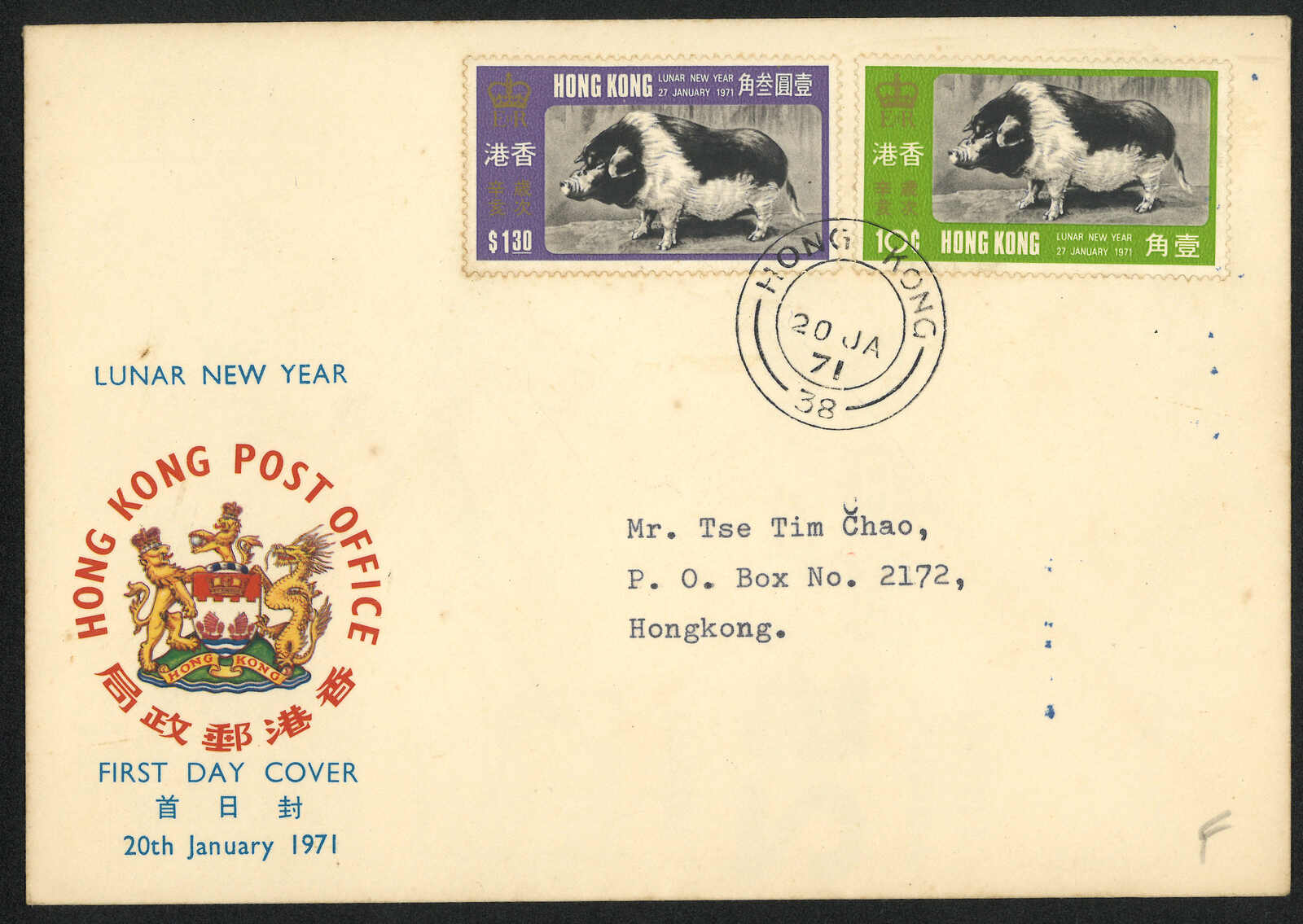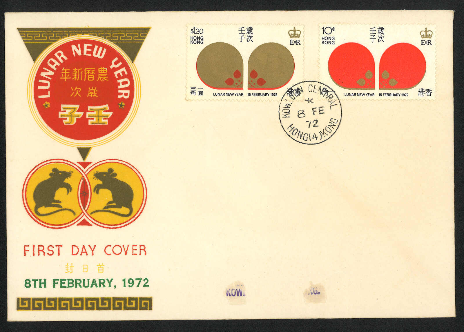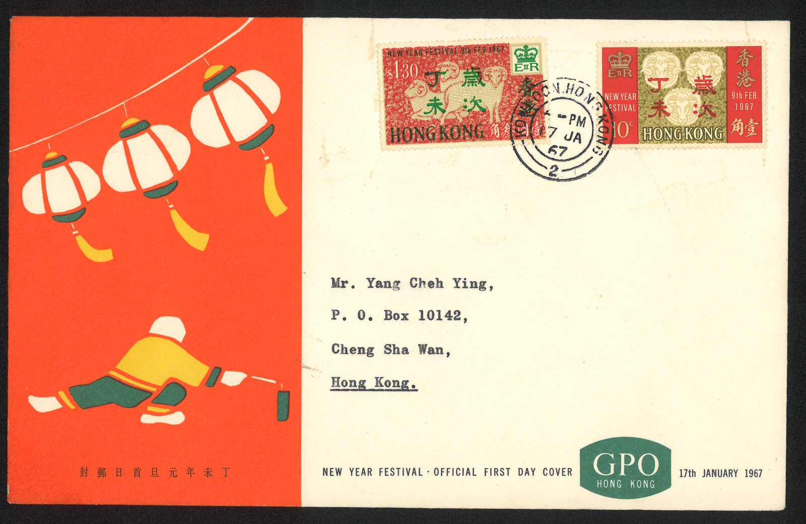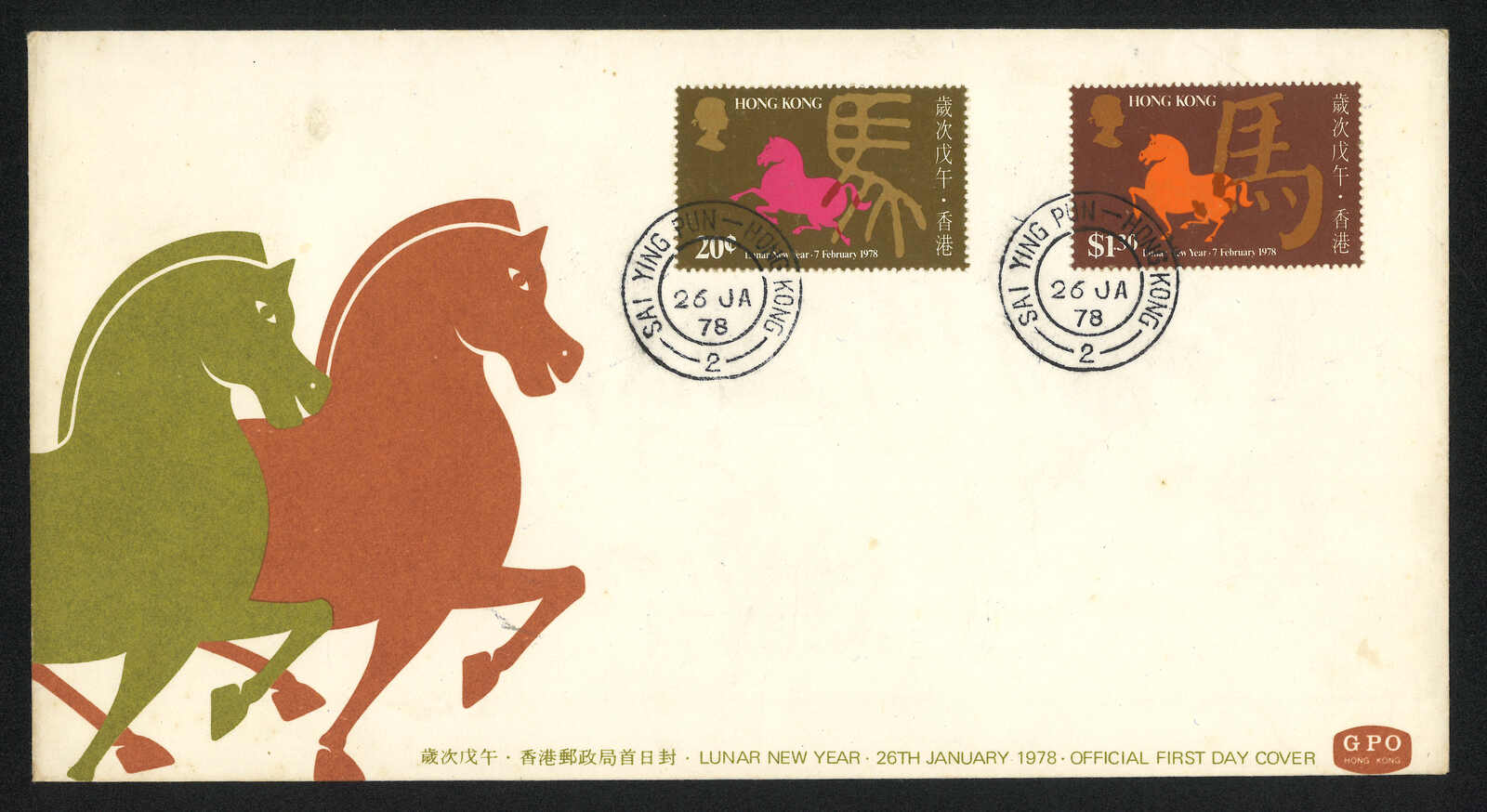 1967-1978 Hong Kong 1st Round lunar year issue FDC, from Year of Ram to Year of Horse. F-VF