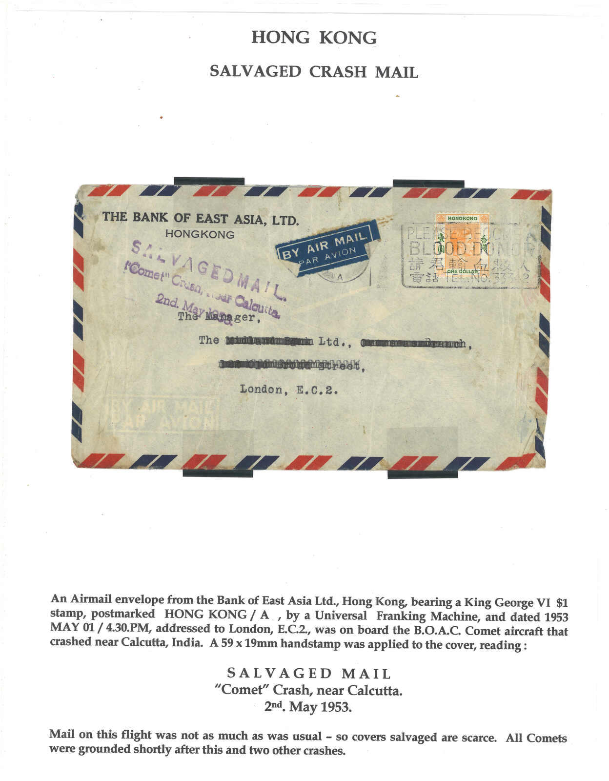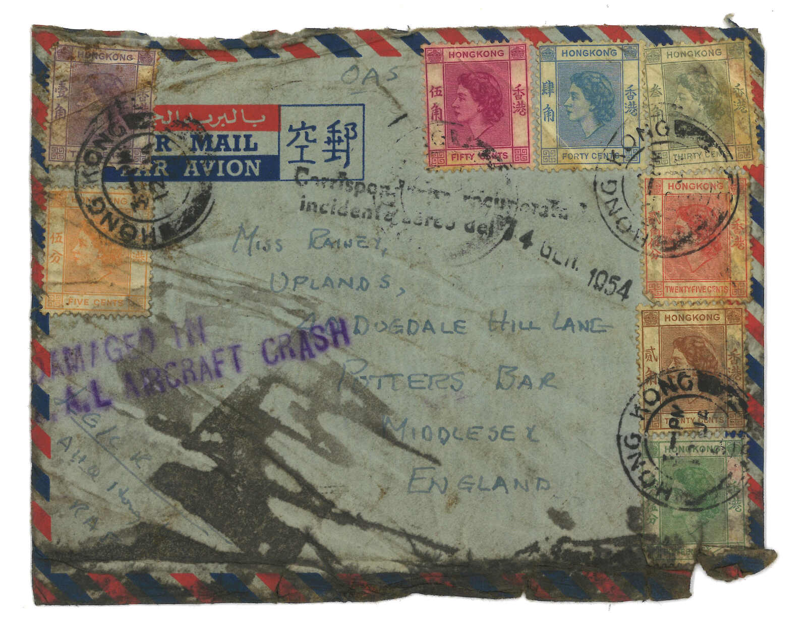 A.L. AIRCRAFT CRASH”指示戳。出自香港的空難封較少見。(Image 1)