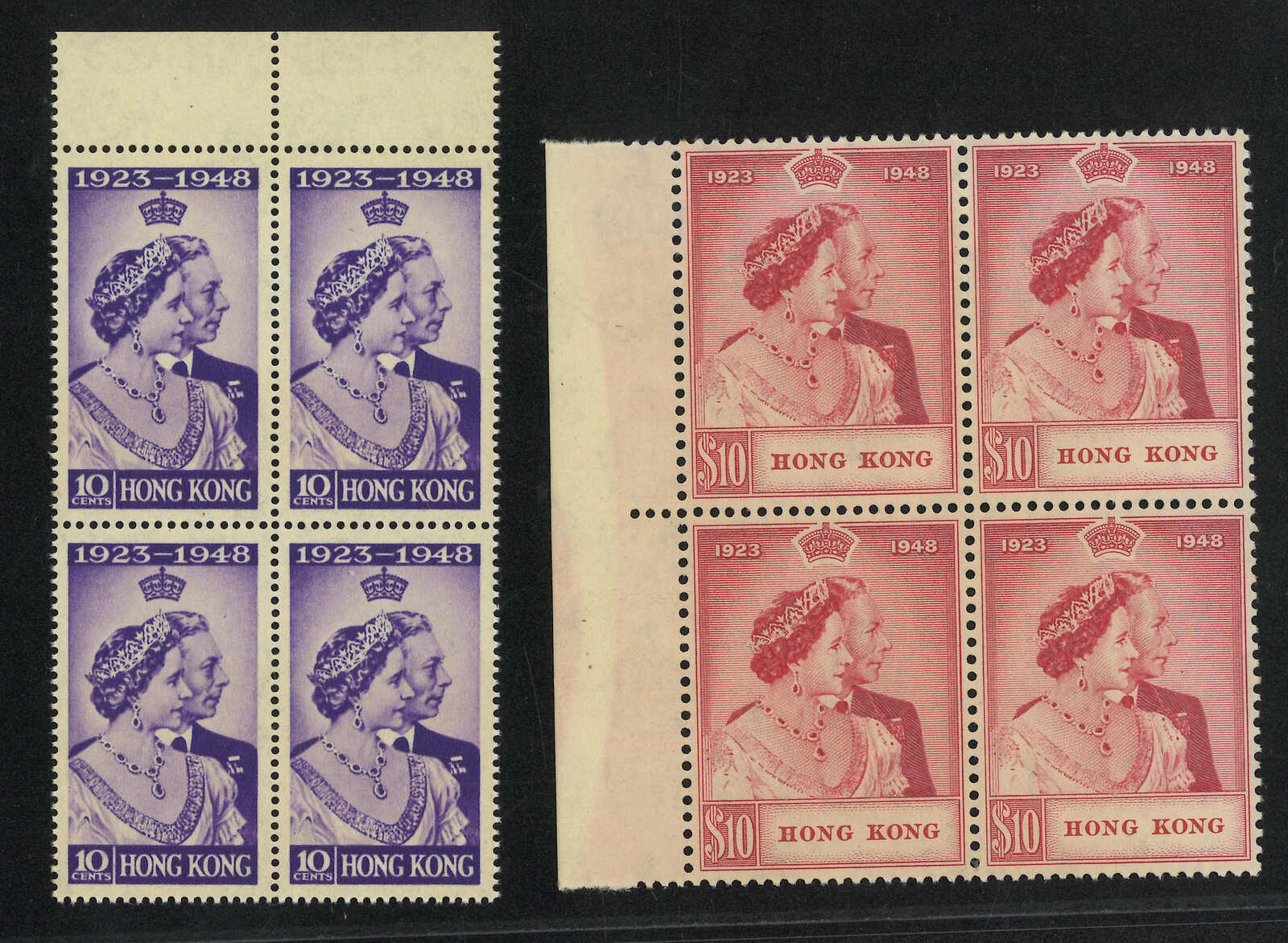 1948 Royal Silver Wedding complete set in block of 4 with margin (Yang C17-18), MNH with original gum. Very fine.