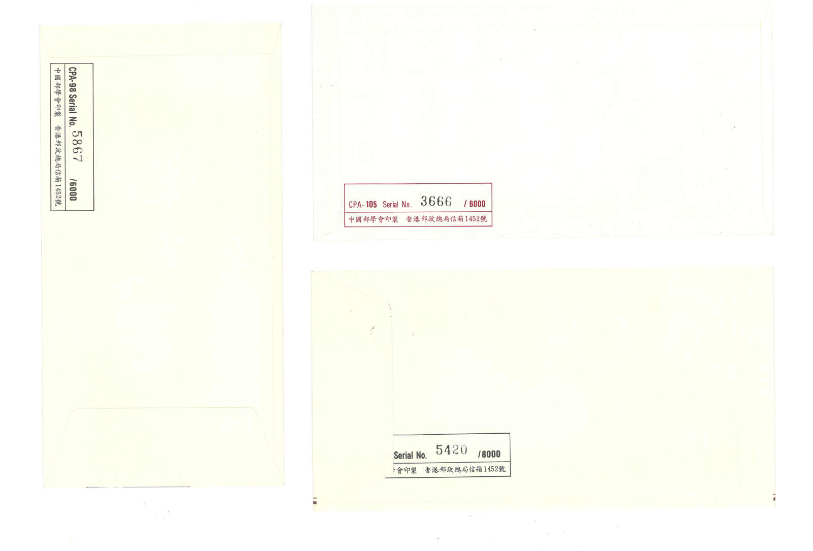 1960至1980年代一組12件香港中國郵學會首日封,包括郵票百年、邱吉爾、世衛總部大廈、新面值通用郵票等。部分實寄。(Image 1)