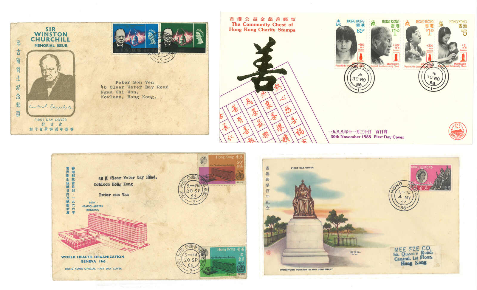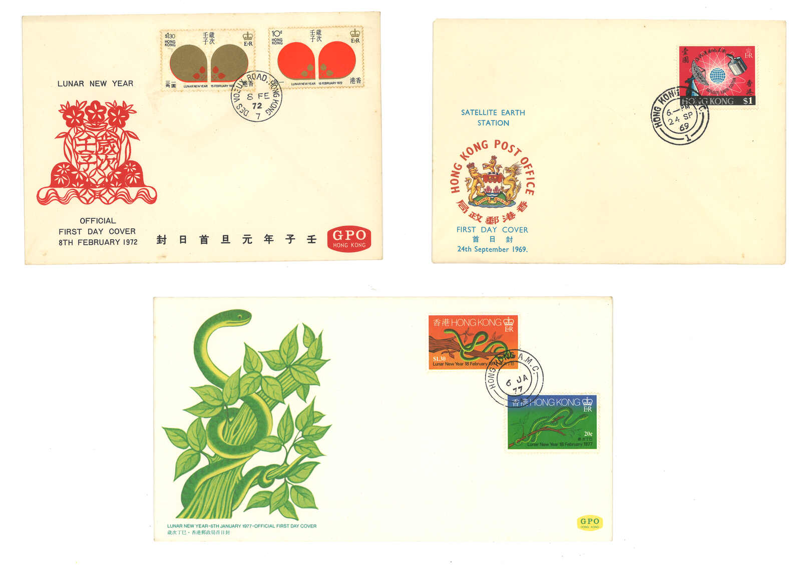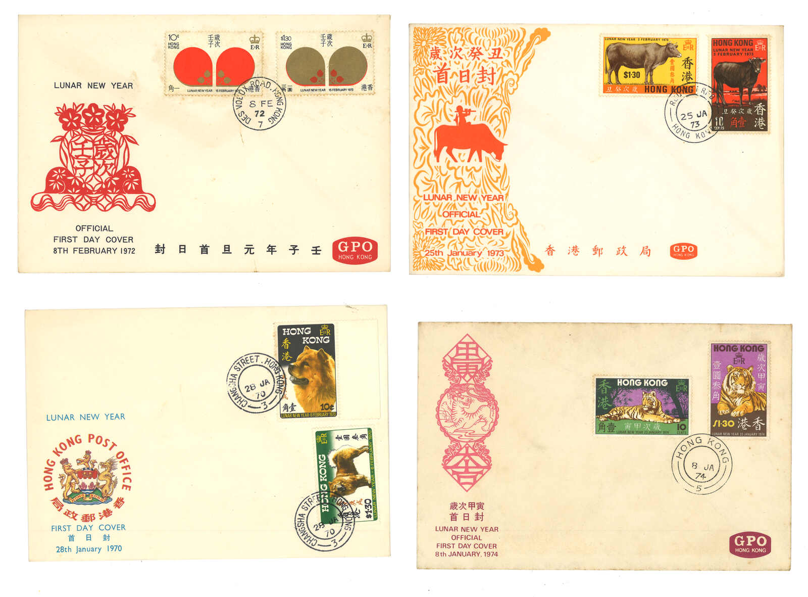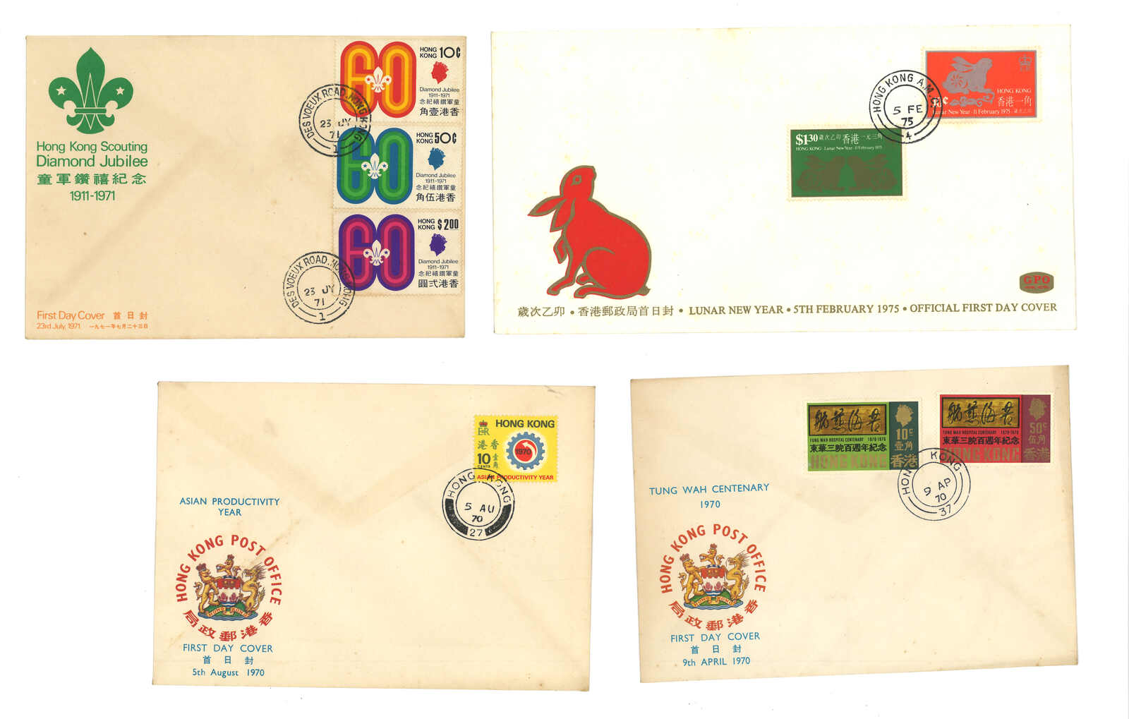1960-1970s a group of about 32 Hong Kong FDCs. More outstanding items include International Cooperation Year, Freedom From Hunger and several lunar year issues.