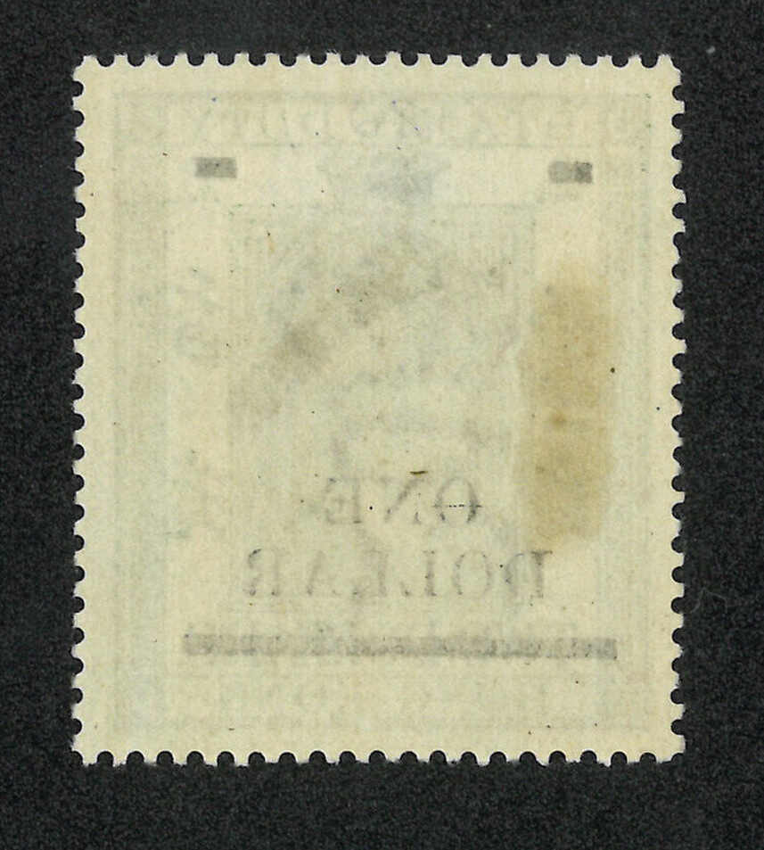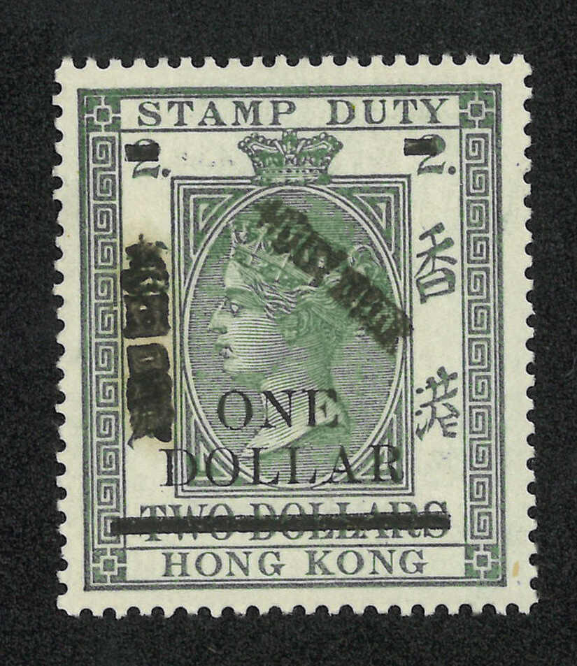 1897年香港維多利亞女皇像印花稅票改作郵票1元蓋藍綠色5元新(楊目F11),原膠無貼上品。(Image 1)