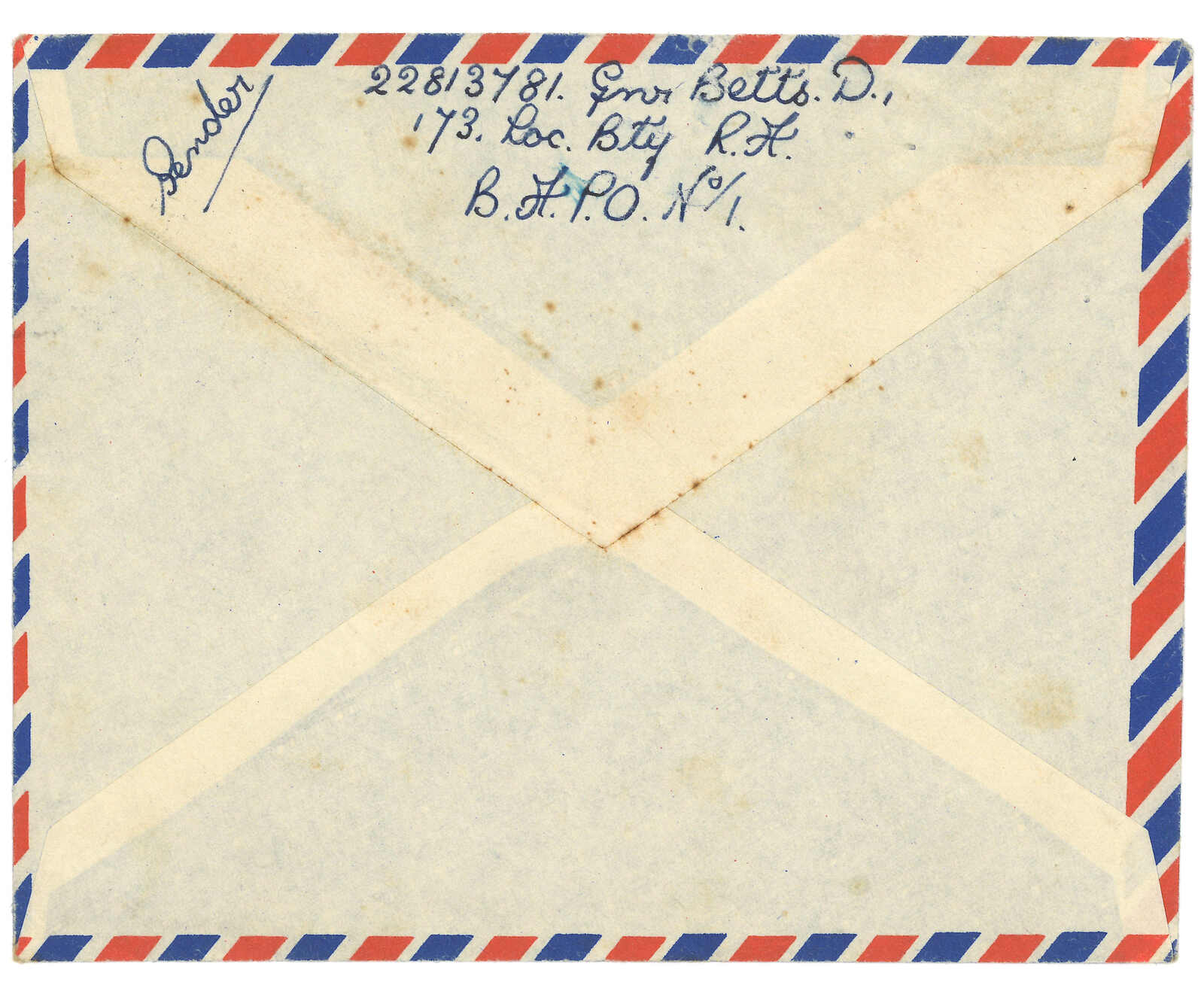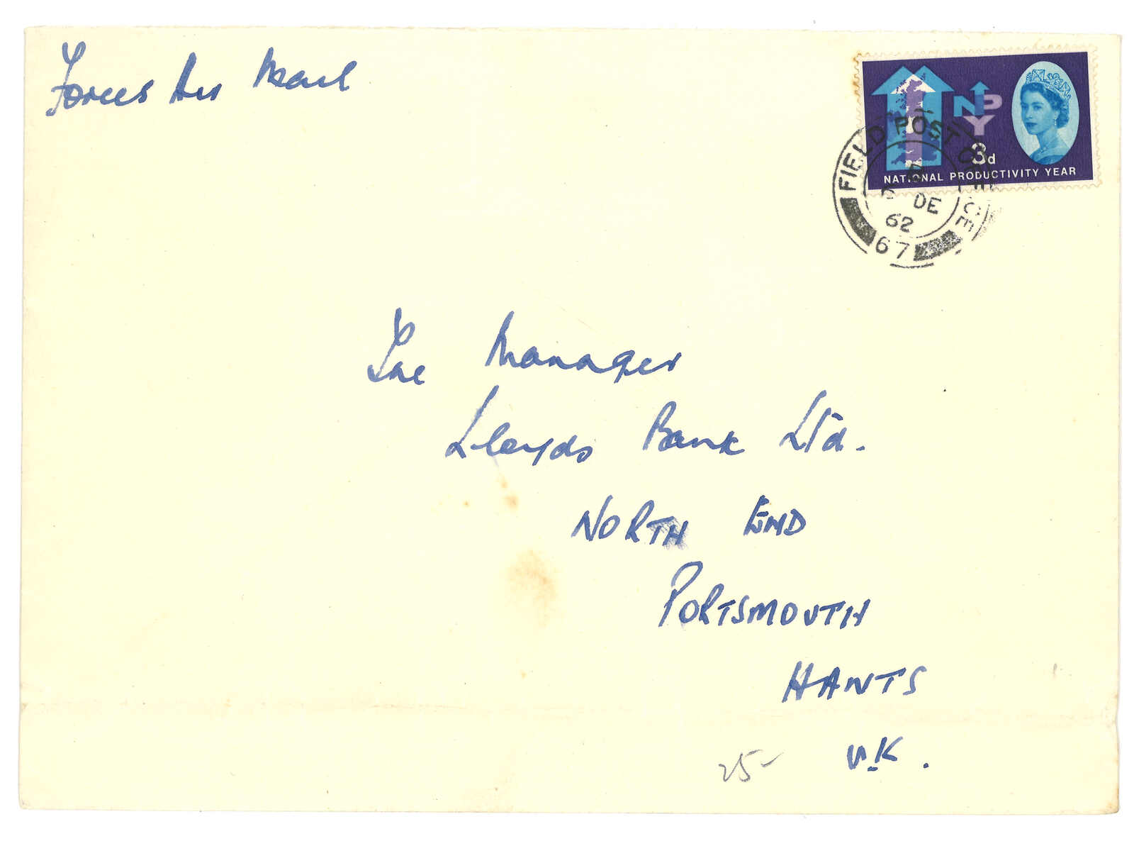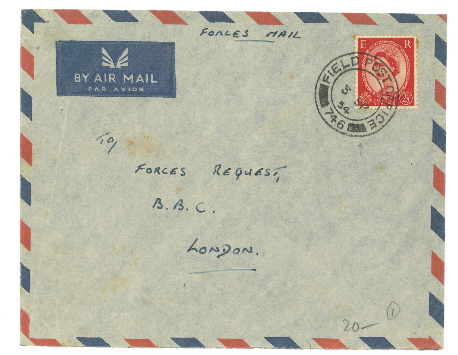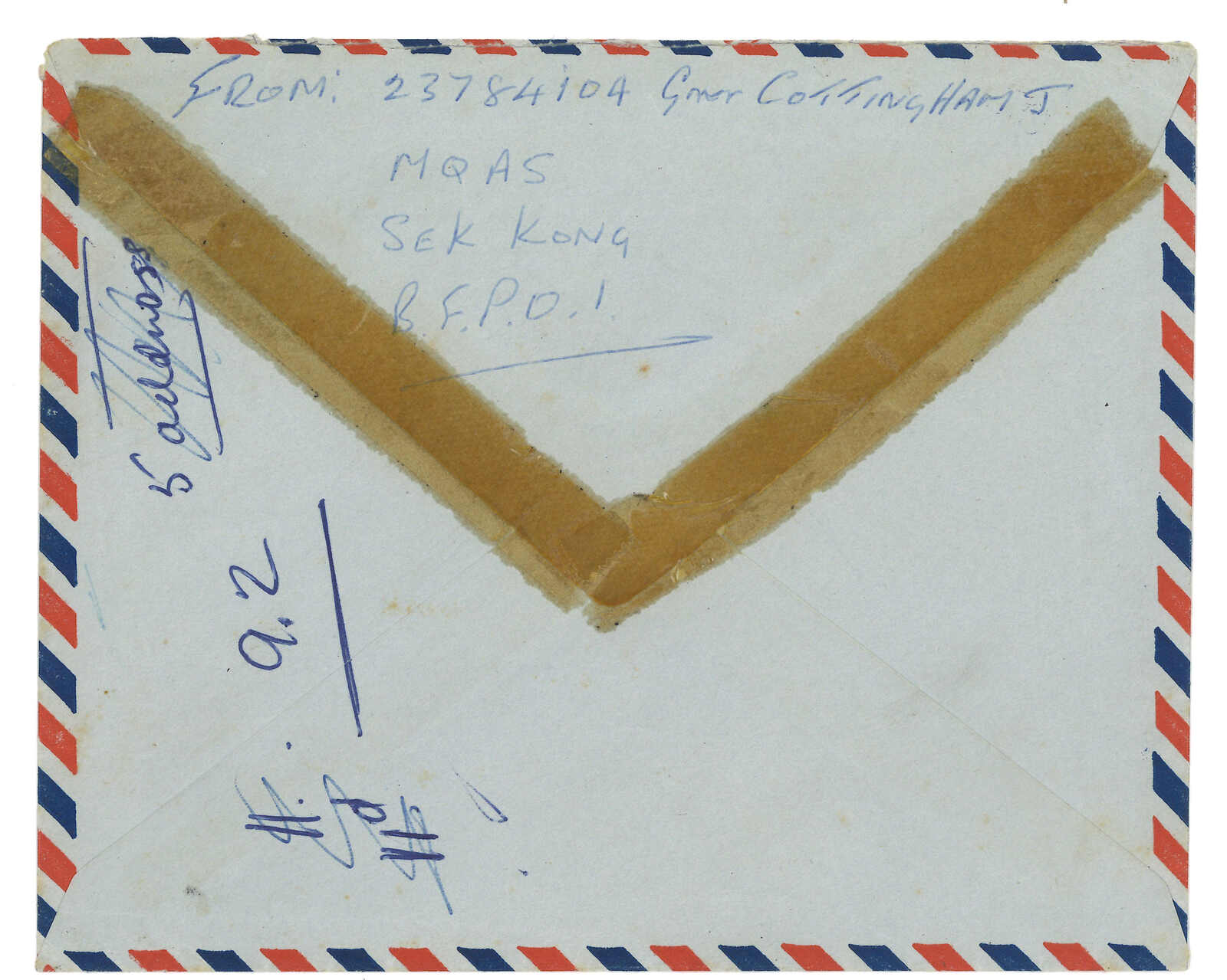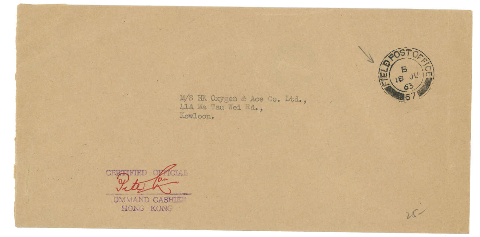 1950至1980年代一組十件香港軍郵封,展示了各款駐港英軍郵局及野戰局日戳。部分野戰局之號碼未被Webb記錄。1949年,英國派遣大批軍隊來港以應付新中國可能武力收回香港,故重開野戰軍郵局以應付上升的郵政需求。(Image 1)