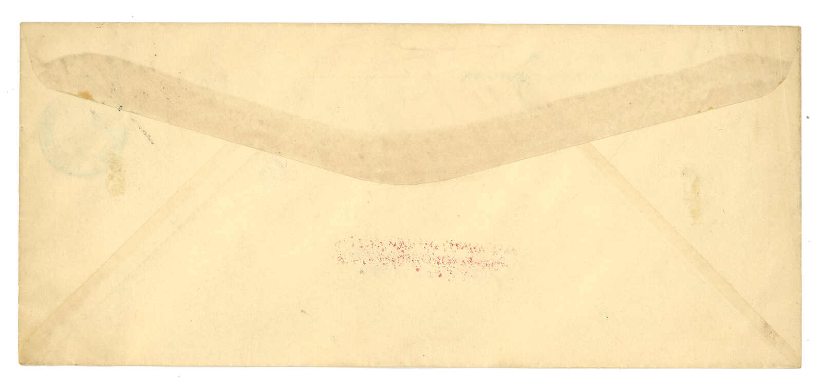 1938.1.21 聯美航空公司封,貼香港印花稅票用作郵票第四組5仙(楊目F12),銷Webb O型維多利亞日戳。 此戳用於1934至1938年間,於1941年又重新使用。此為1938年之晚期例子。(Image 1)
