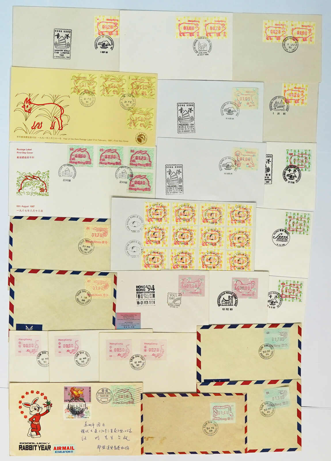 1986-1996 a collection of 25 covers f.w. Hong Kong ATM stamps, ranging from 1986 Carp to 1996 year of rat, mostly tied by first day cds or commemorative d.s.