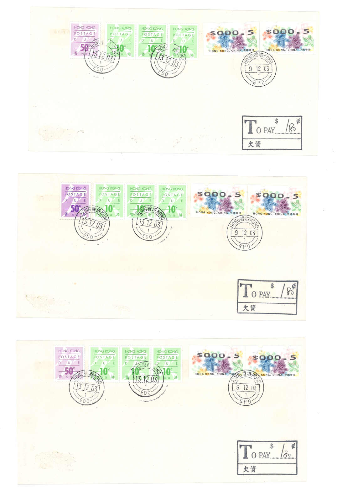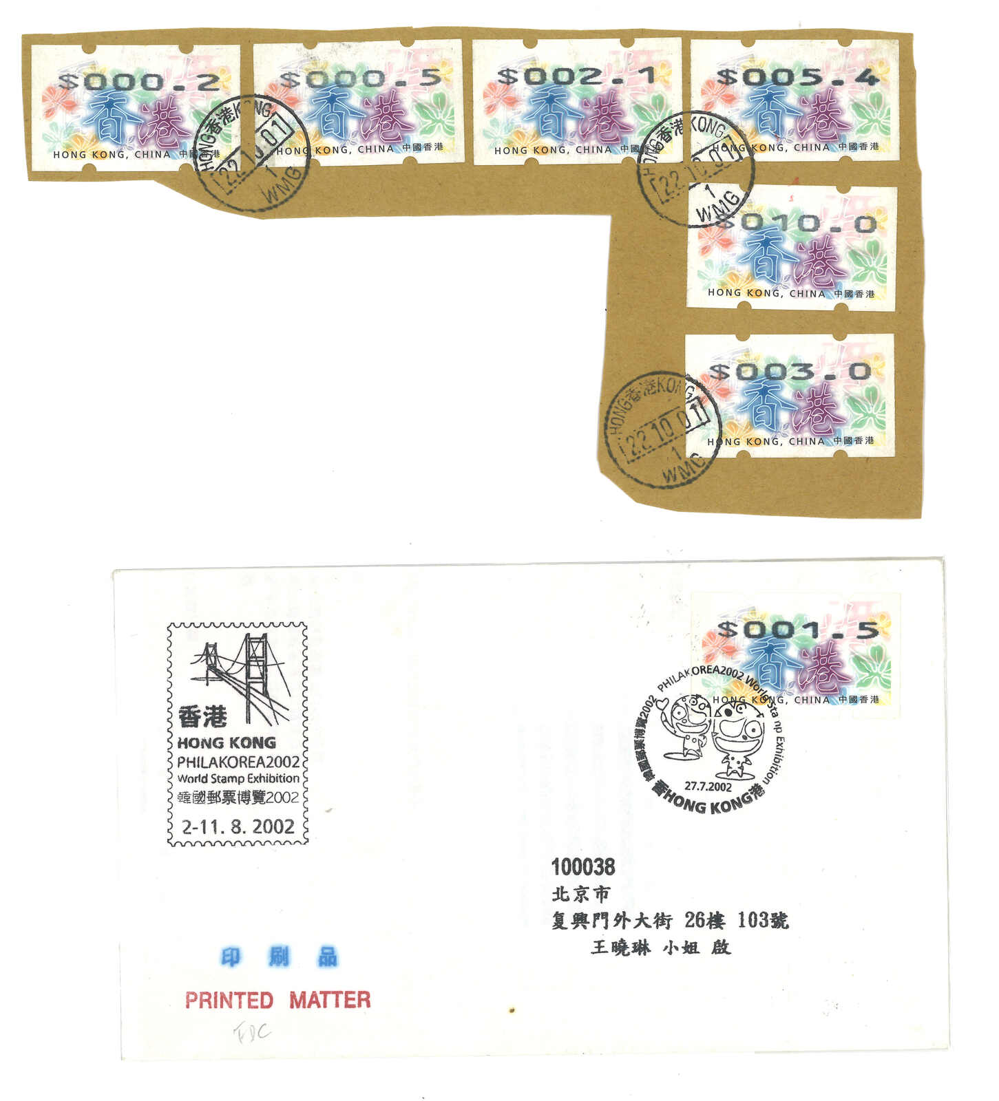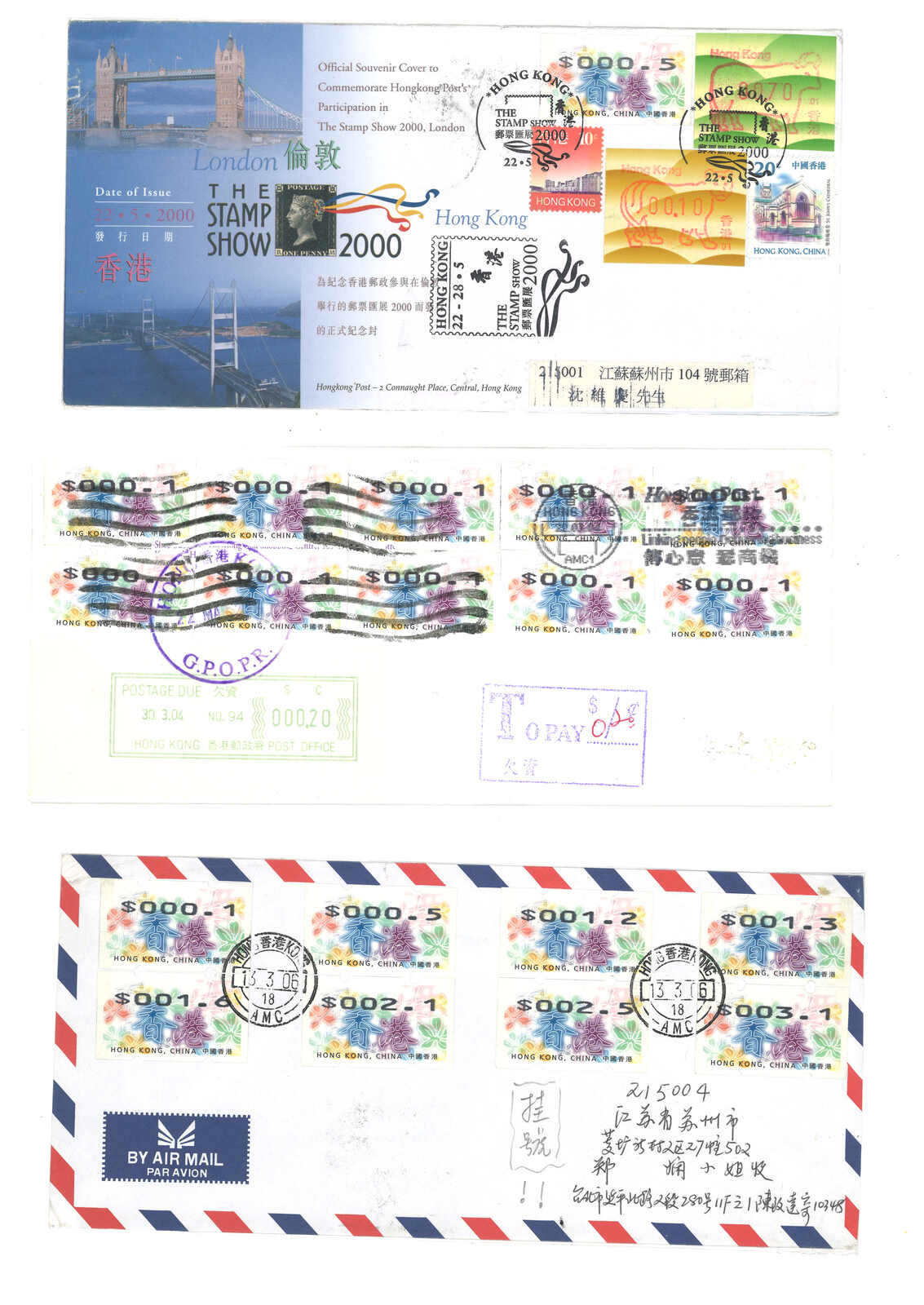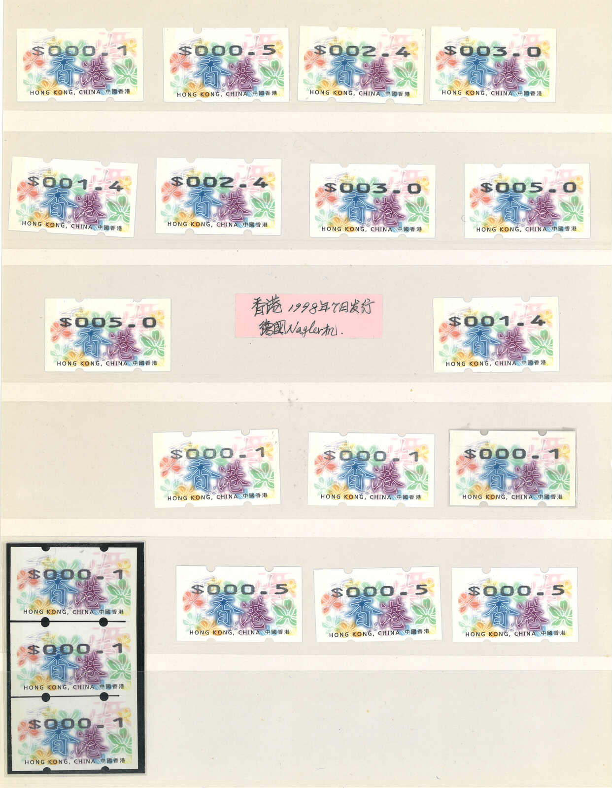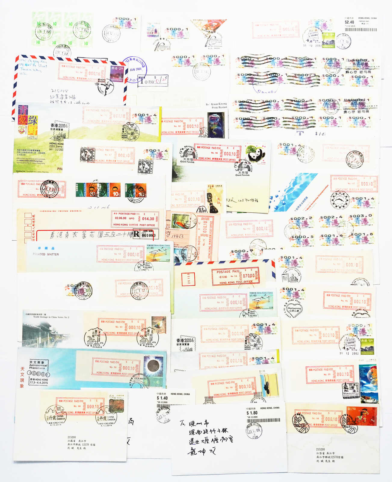 1998 a collection of Hong Kong Flower ATM stamps, containing about 13 stamps and 32 covers, including several taxed, commemorative and combination covers.