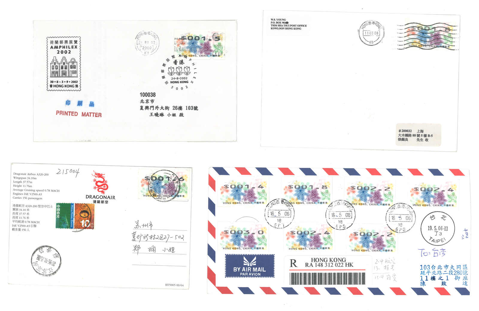 1998年一組香港花卉電子郵票集藏,包含約13枚票、32件封片,當中包含欠資封、紀念封、混貼封等。(Image 1)
