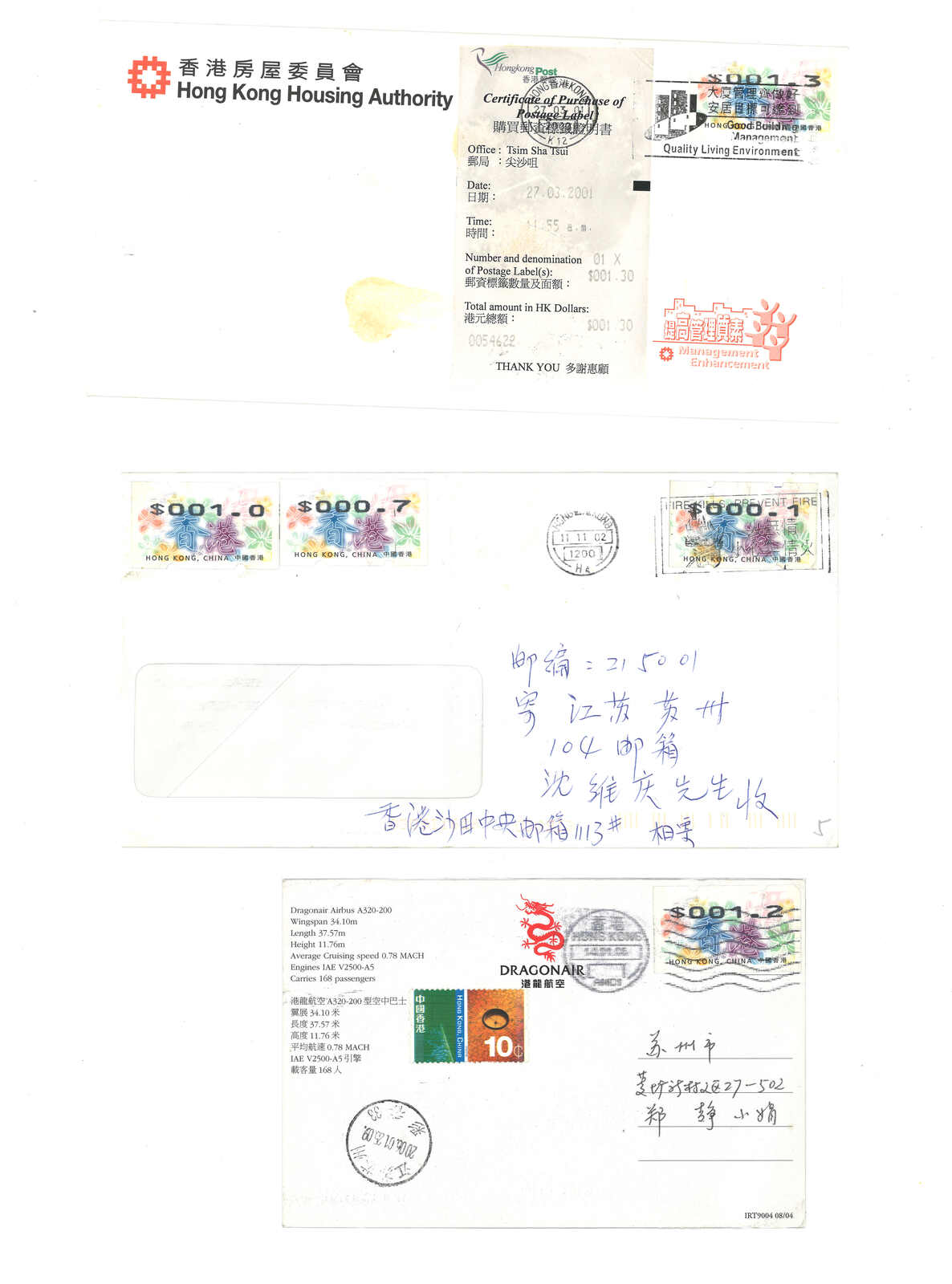 2000年代一組香港郵資已付機戳及標籤集收藏,包含約28件封及70件剪片。(Image 1)
