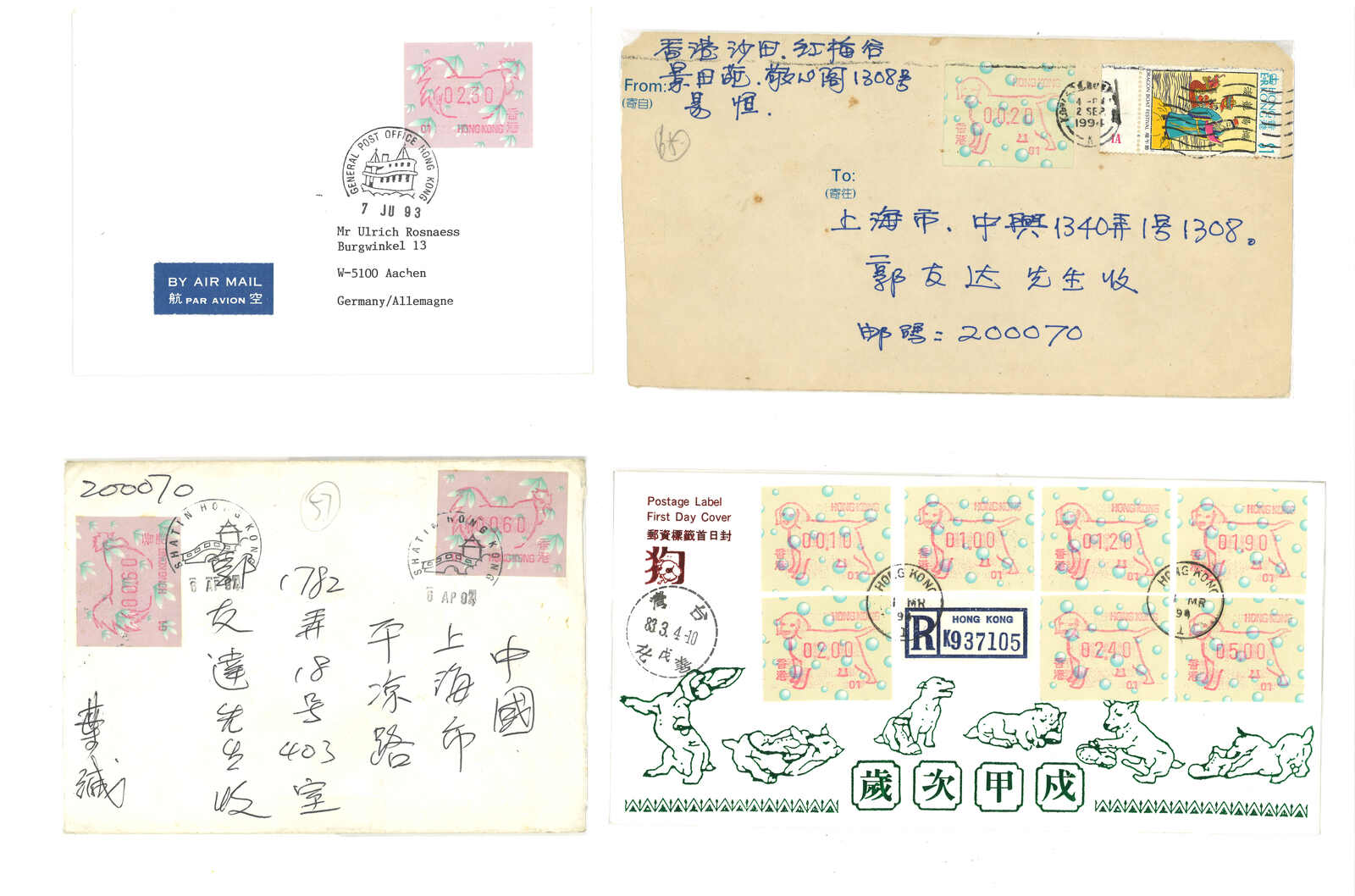 1986-1998 a collection of Hong Kong ATM stamps and covers, raning from the Carp to Year of Tiger issues. Including two Carp FDCs.