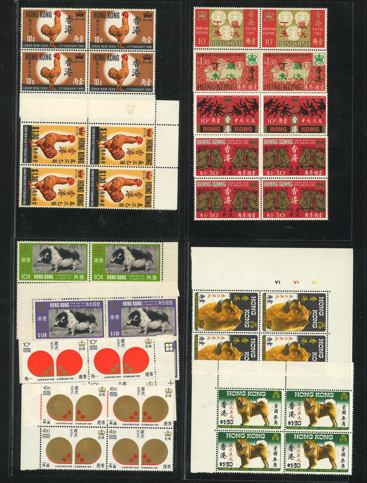 1967至1978年香港第一輪生肖票四方連新全,帶邊紙,自羊年至馬年,無貼上品。(Image 1)