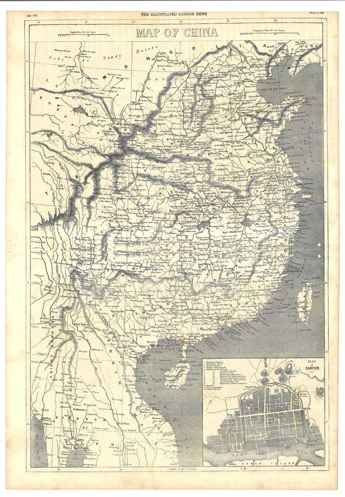 1704 image1858 (24 Jul) The Illustrated London News p.89-92. With a map of China. Please note tht it only includes China Proper. (size 54 x 80cm).