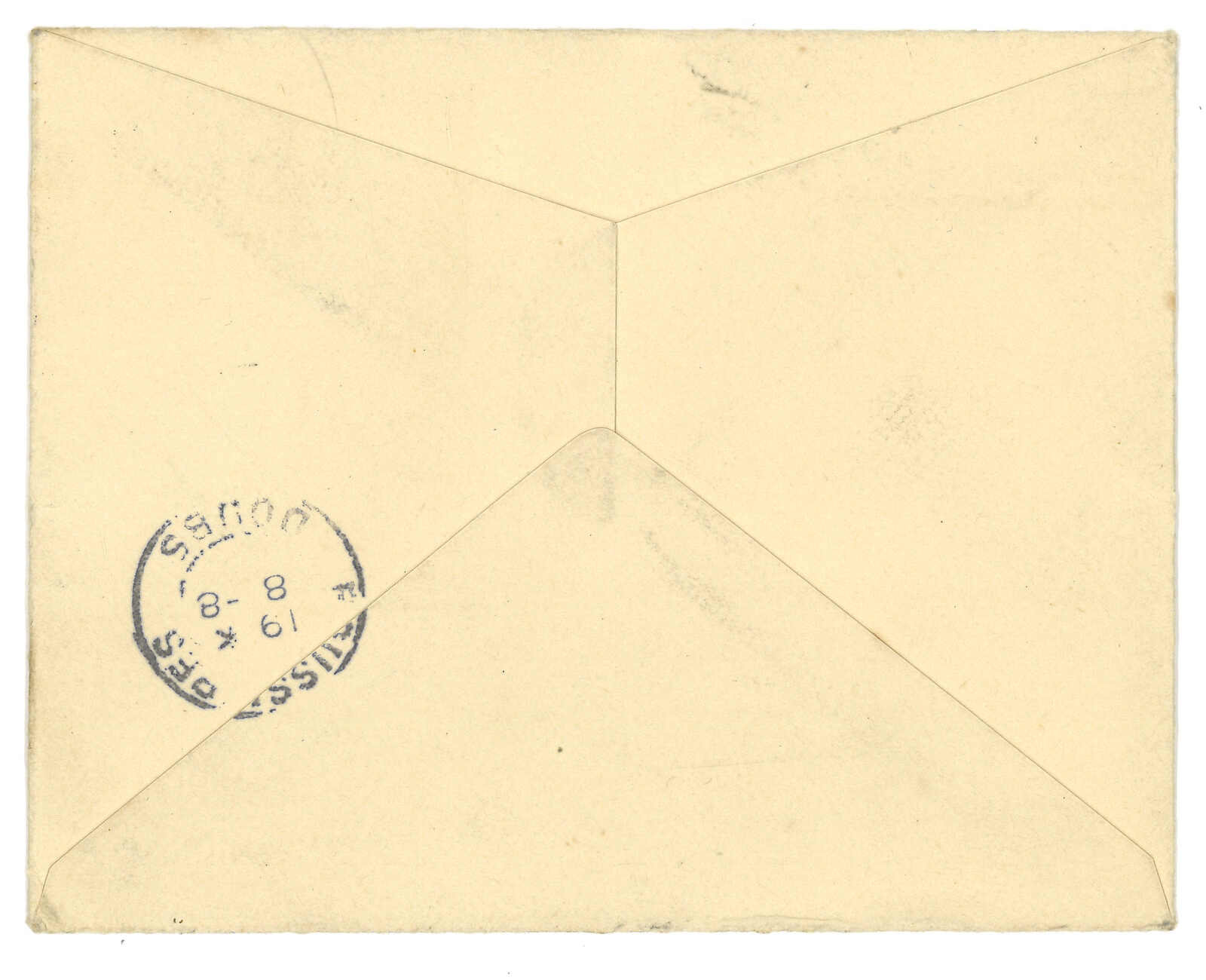香港維多利亞女皇像10仙掛號郵資封(size F 3-1/4 x 5-1/4 inch)寄南非,加貼2仙雙連,銷總局掛號日戳,旁貼掛號標籤。Milo Rowell舊藏。(Image 1)