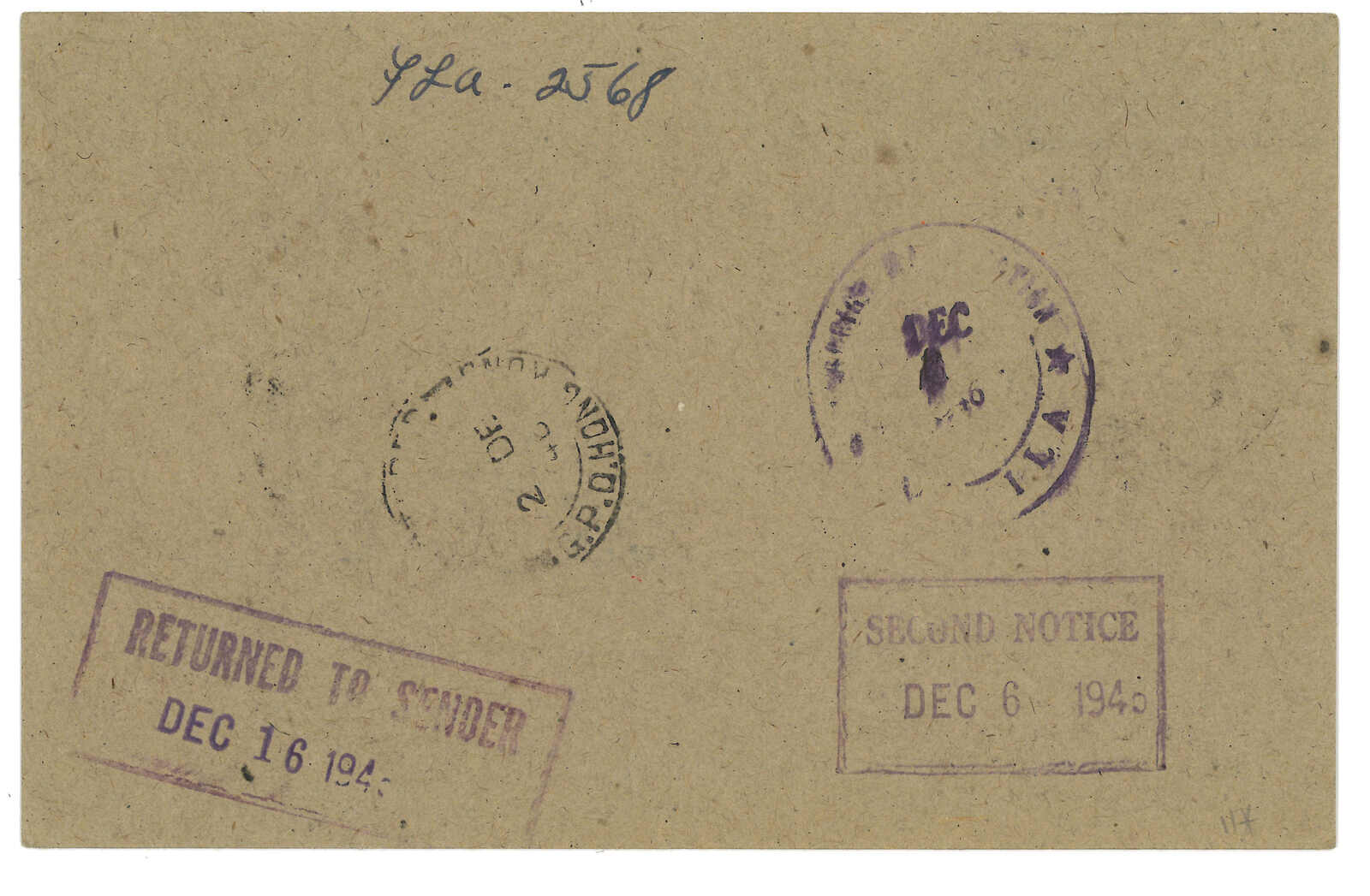 1946.12.2 香港皇家兵團2分郵資片(楊目P31)寄馬尼拉,加貼勝利紀念3角 + 佐治六世8分 + 1角5分,銷九龍日戳, 旁貼掛號標籤。12月抵馬尼拉。香港郵資片之大名譽品。(Image 1)