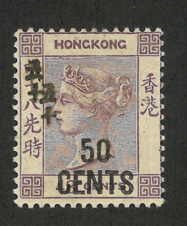 1777 * image1891 Hong Kong QV 5th surch issue 50c/48c, with double Chinese character variety (Yang 46b), MH. F-VF. R N Gurevitch recorded that this variety is probably genuine. Catalogue price HKD$2500.
