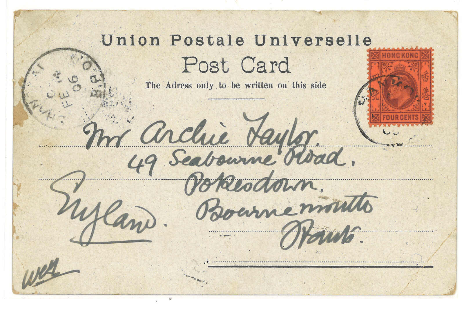 1904至1909年一組五件圖片明信片,自上海或漢口寄國外,貼香港愛德華七世票,銷不同樣式之上海及漢口英局日戳。一組出色之實寄片,影像內容包括各式建築及地標。(Image 1) (Image 2) (Image 3) (Image 4) (Image 5) (Image 6) (Image 7) (Image 8) (Image 9) (Image 10)