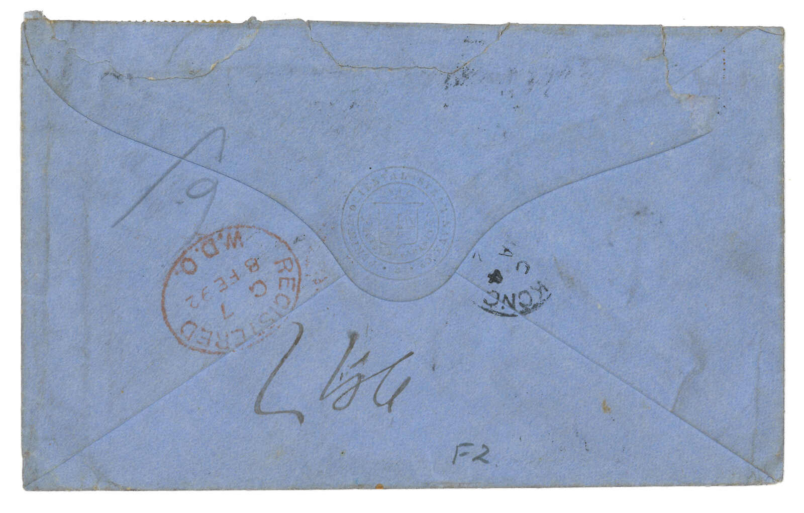 2919 cover image1922 Hankow (8 Nov) to England. Registered cover, f.w. Hong Kong KGV ovpt. CHINA 1c + 2c + 4c + 6c + 8c, tied by Hankow BPO Webb type M cds, alongside with type R2 registered label. Arrived London (22 Dec). Commerically usage of this ovpt. China issue is rather scarce. Neil Christensen collection. 2008 (20 Jan) Spink China, lot 1316.