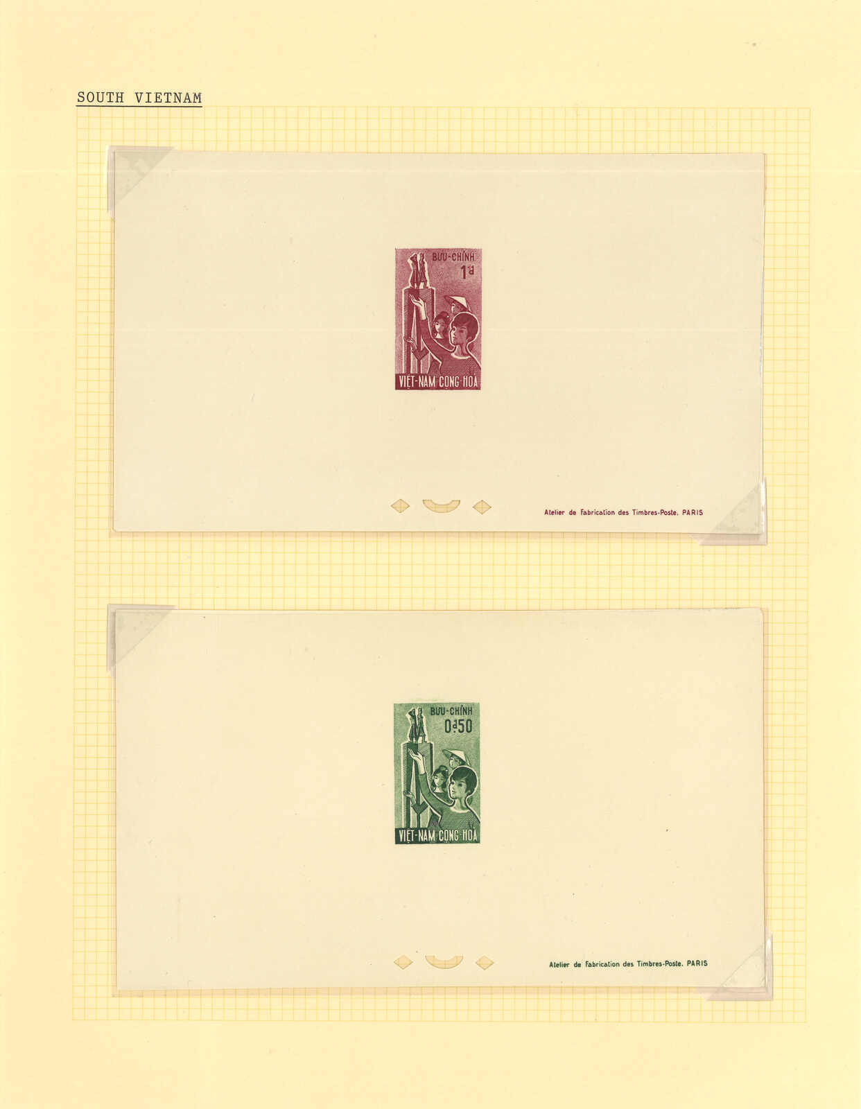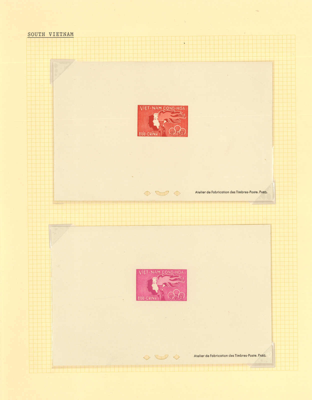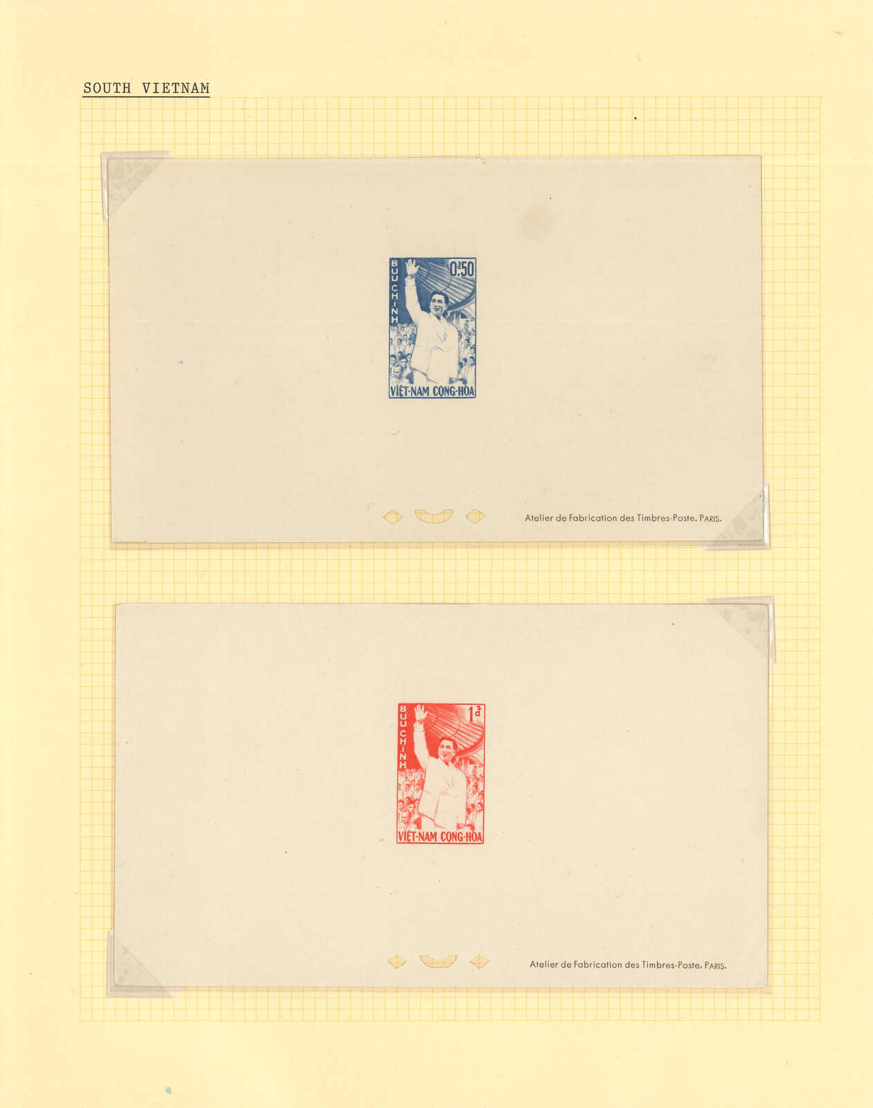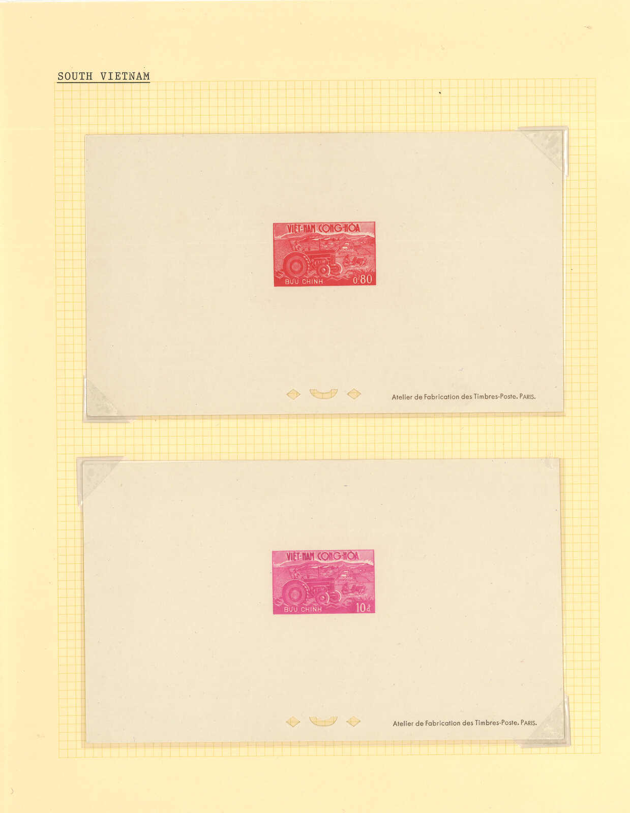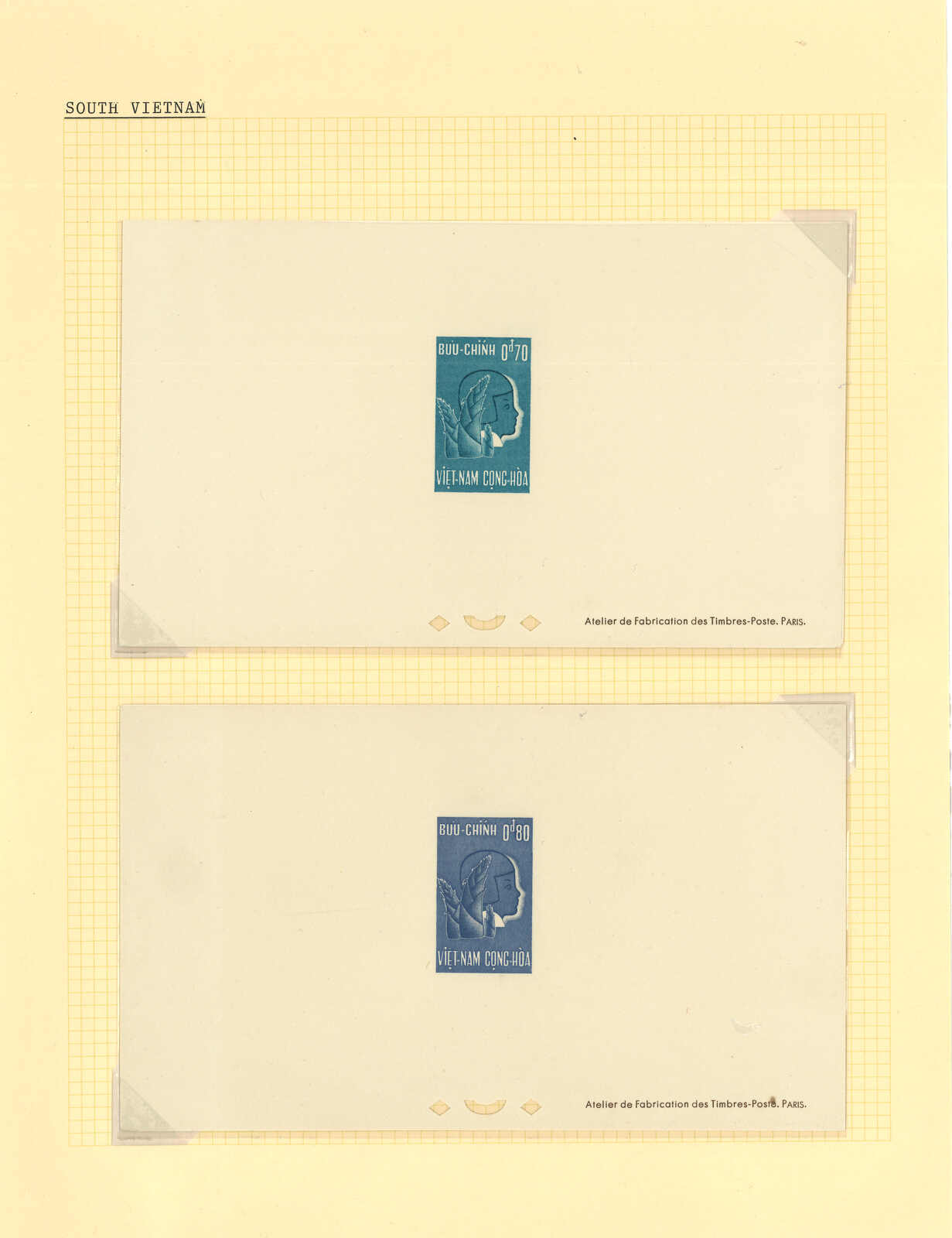1950至1960年代一組十三套南越郵票之豪華試印張或無齒票,包括農業改革、越南鐵路重開、共和國四週年、第一屆童軍大露營等。均無貼上品。(Image 1) (Image 2) (Image 3) (Image 4) (Image 5) (Image 6) (Image 7) (Image 8) (Image 9) (Image 10) (Image 11) (Image 12) (Image 13) (Image 14) (Image 15) (Image 16) (Image 17) (Image 18) (Image 19) (Image 20) (Image 21) (Image 22)