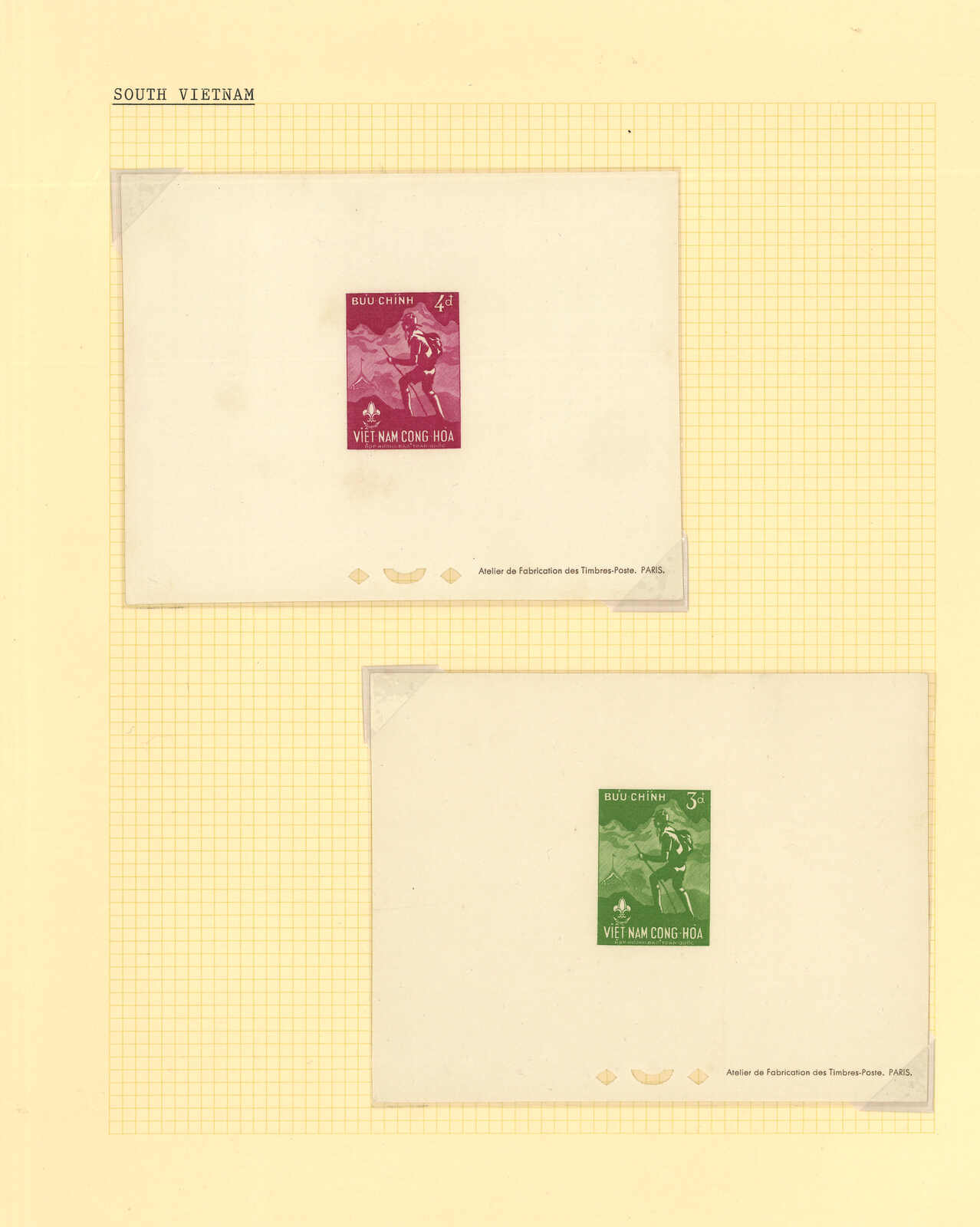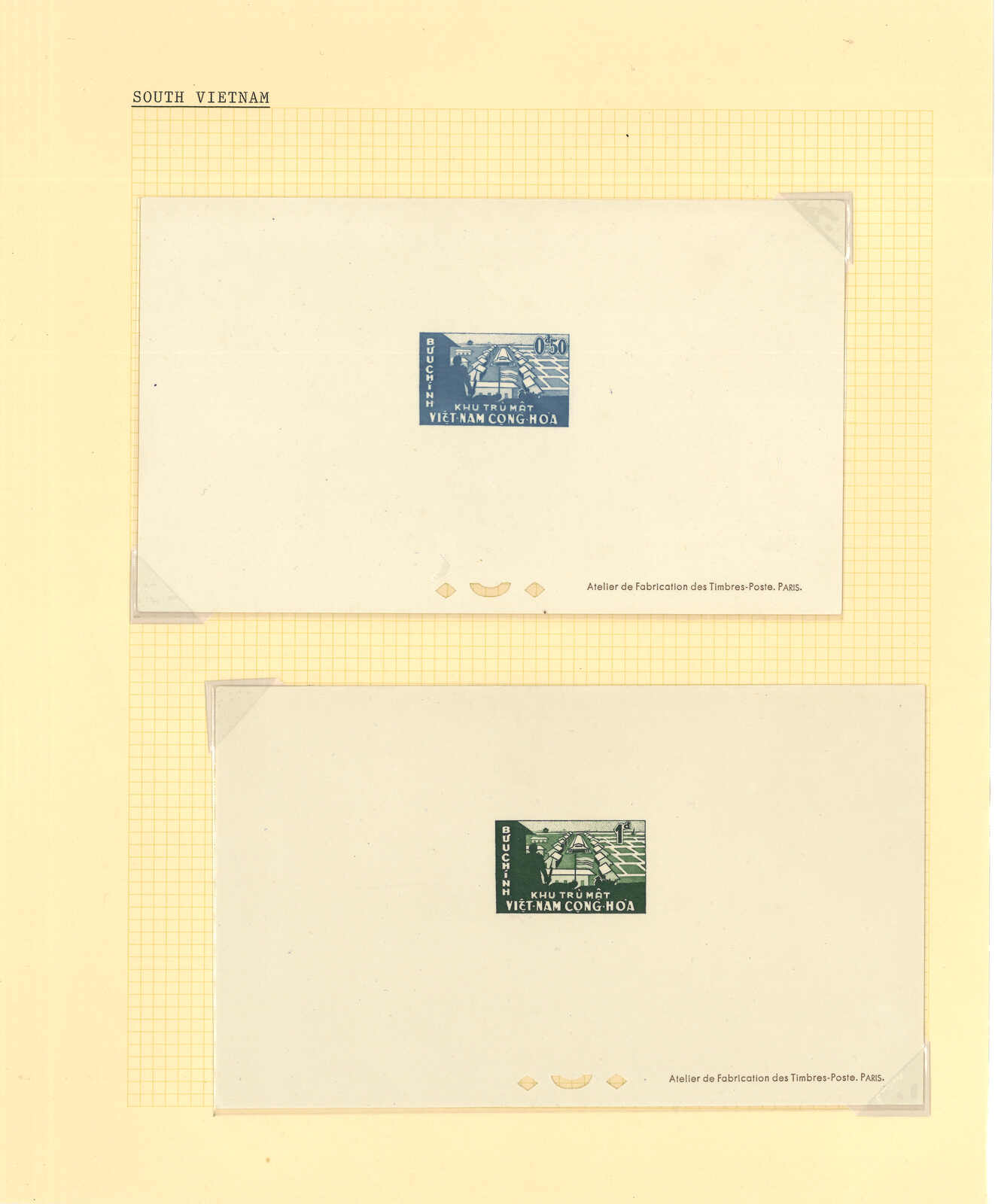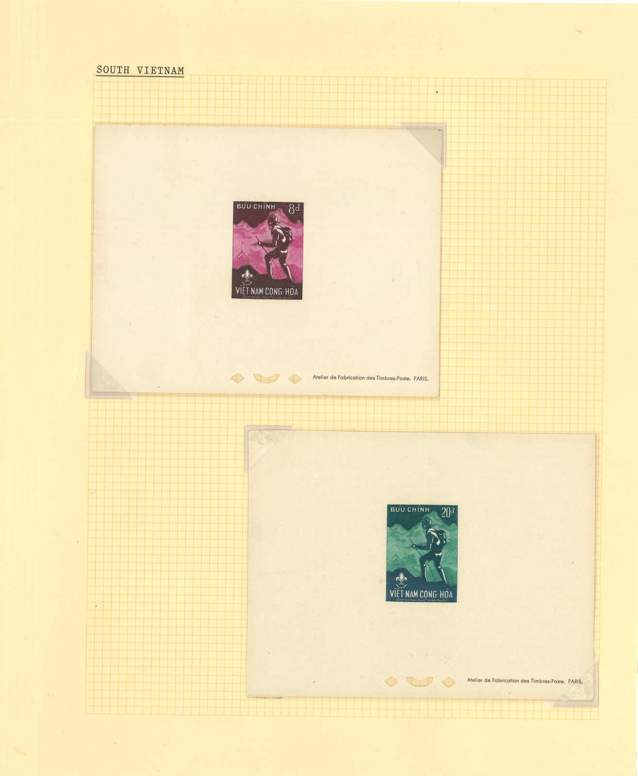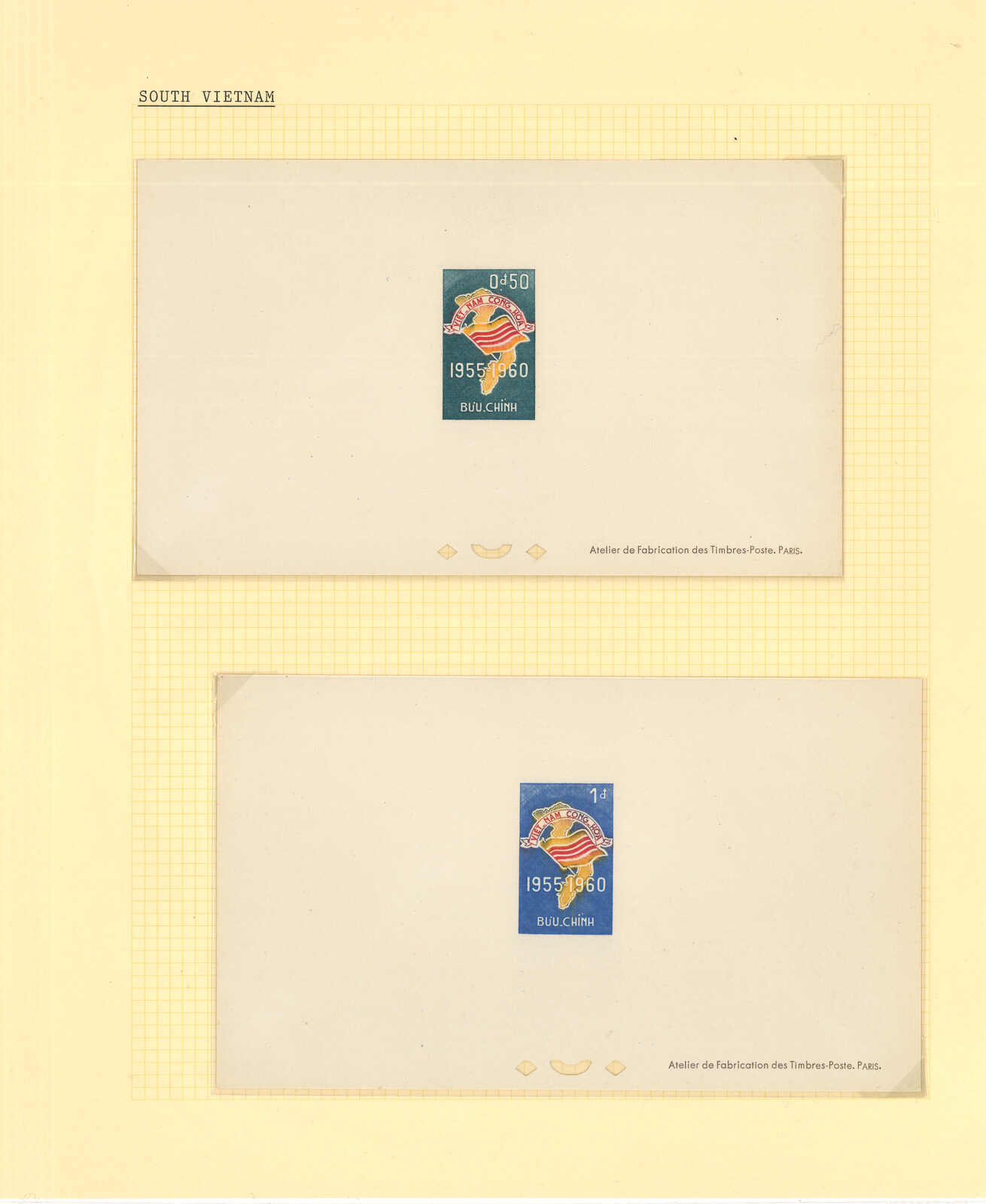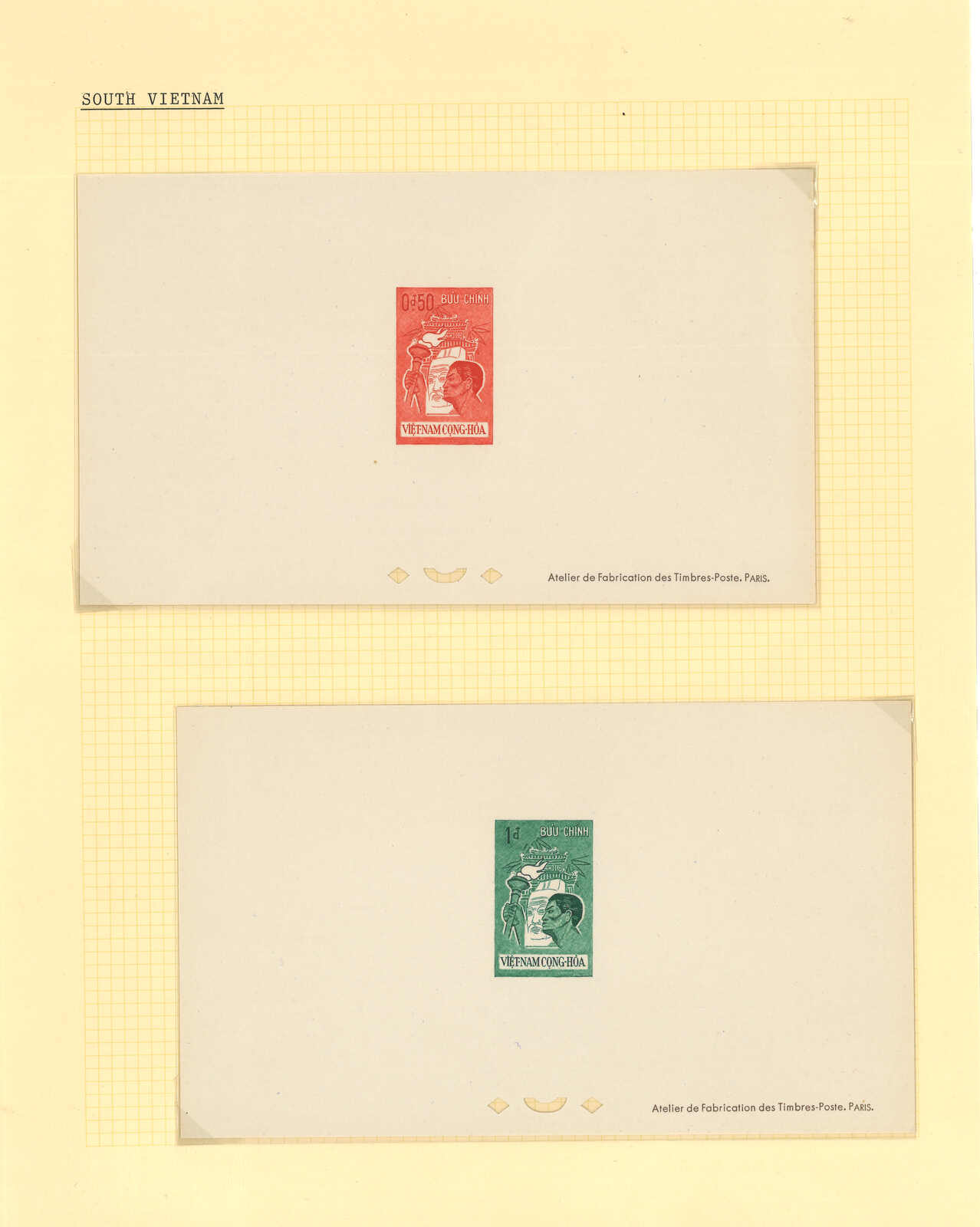 1950至1960年代一組十三套南越郵票之豪華試印張或無齒票,包括農業改革、越南鐵路重開、共和國四週年、第一屆童軍大露營等。均無貼上品。(Image 1) (Image 2) (Image 3) (Image 4) (Image 5) (Image 6) (Image 7) (Image 8) (Image 9) (Image 10) (Image 11) (Image 12) (Image 13) (Image 14) (Image 15) (Image 16) (Image 17) (Image 18) (Image 19) (Image 20) (Image 21) (Image 22)