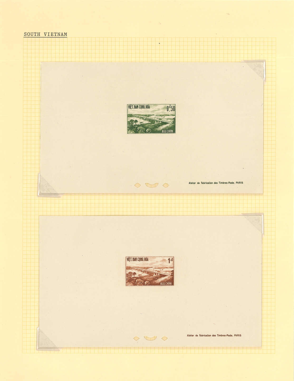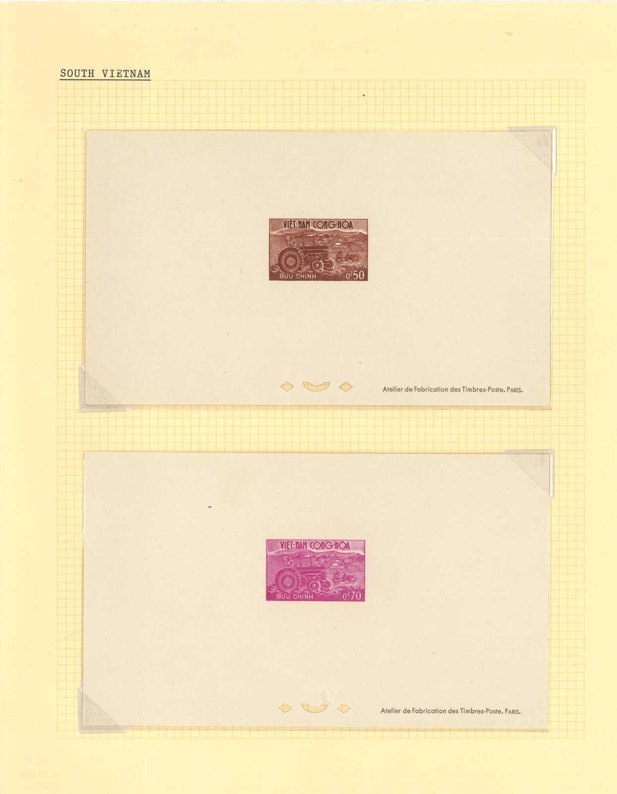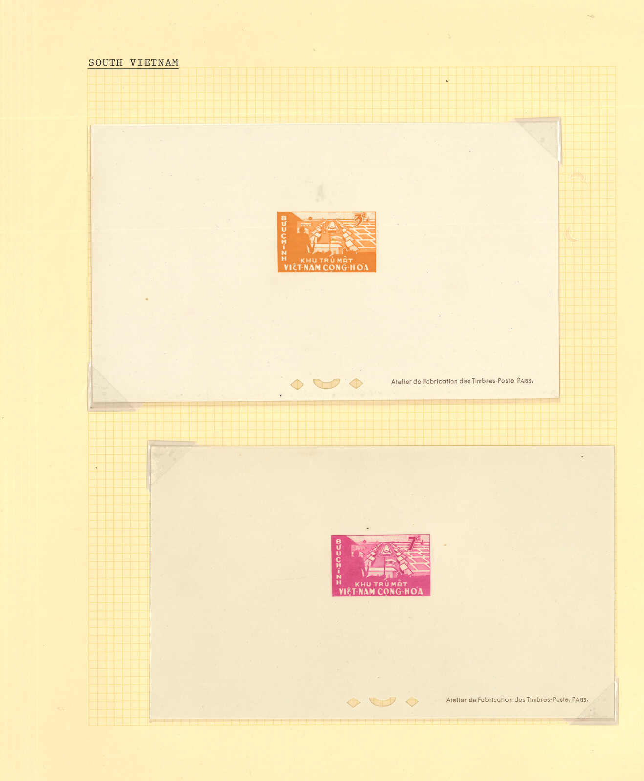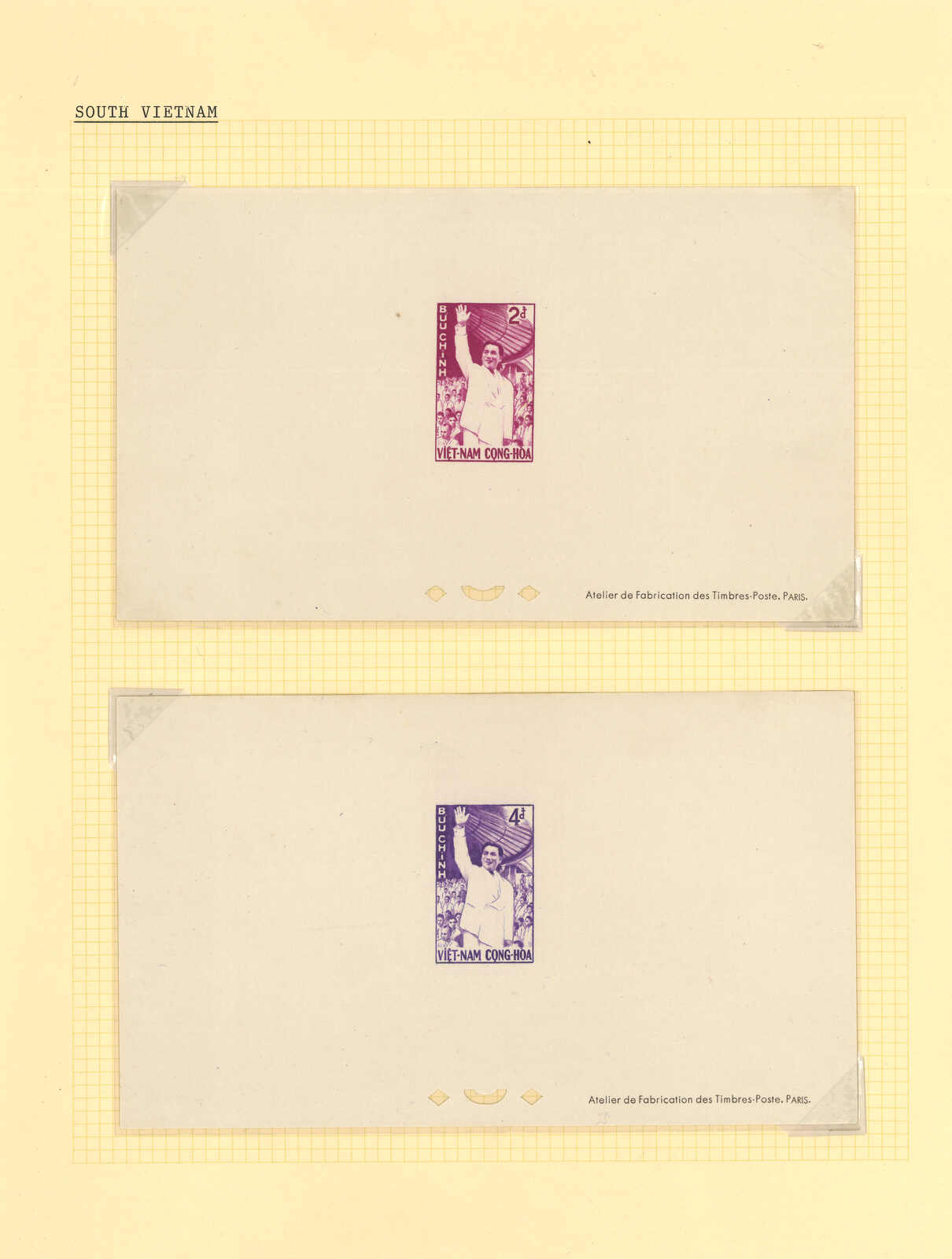 1950至1960年代一組十三套南越郵票之豪華試印張或無齒票,包括農業改革、越南鐵路重開、共和國四週年、第一屆童軍大露營等。均無貼上品。(Image 1) (Image 2) (Image 3) (Image 4) (Image 5) (Image 6) (Image 7) (Image 8) (Image 9) (Image 10) (Image 11) (Image 12) (Image 13) (Image 14) (Image 15) (Image 16) (Image 17) (Image 18) (Image 19) (Image 20) (Image 21) (Image 22)