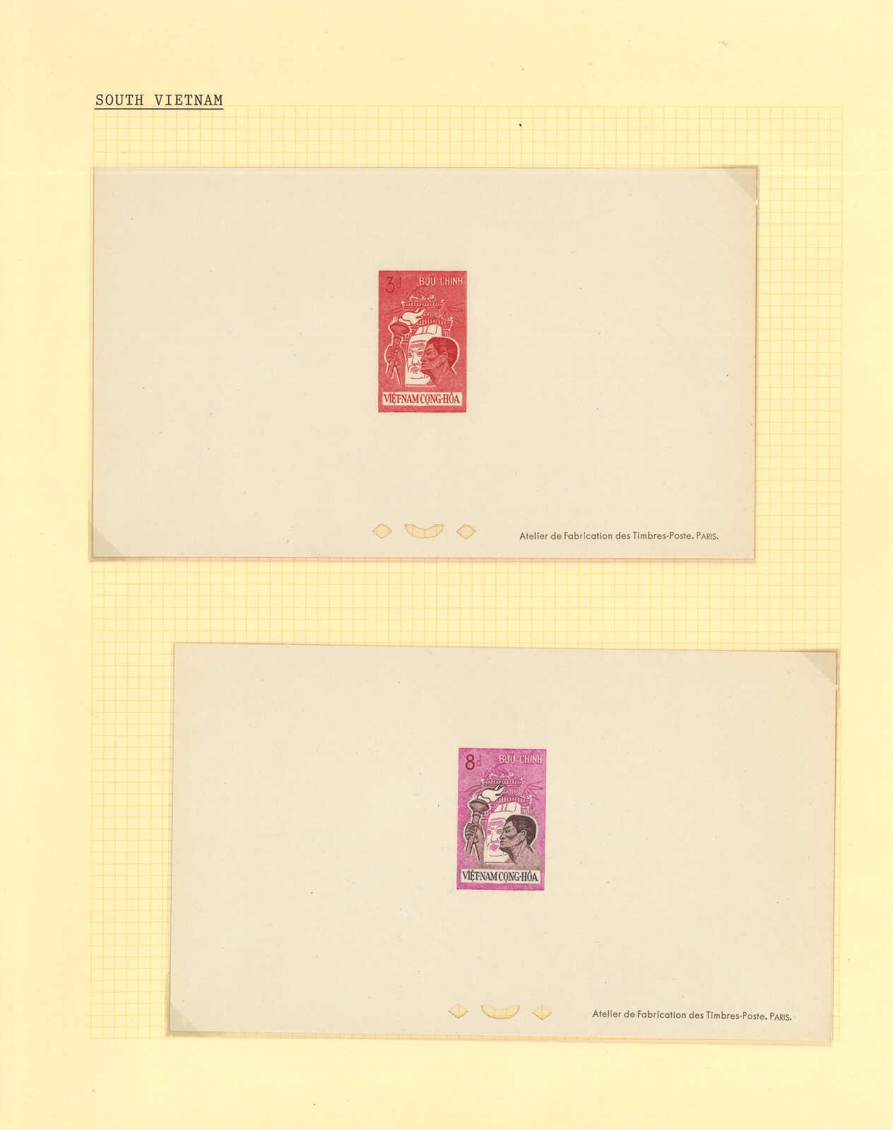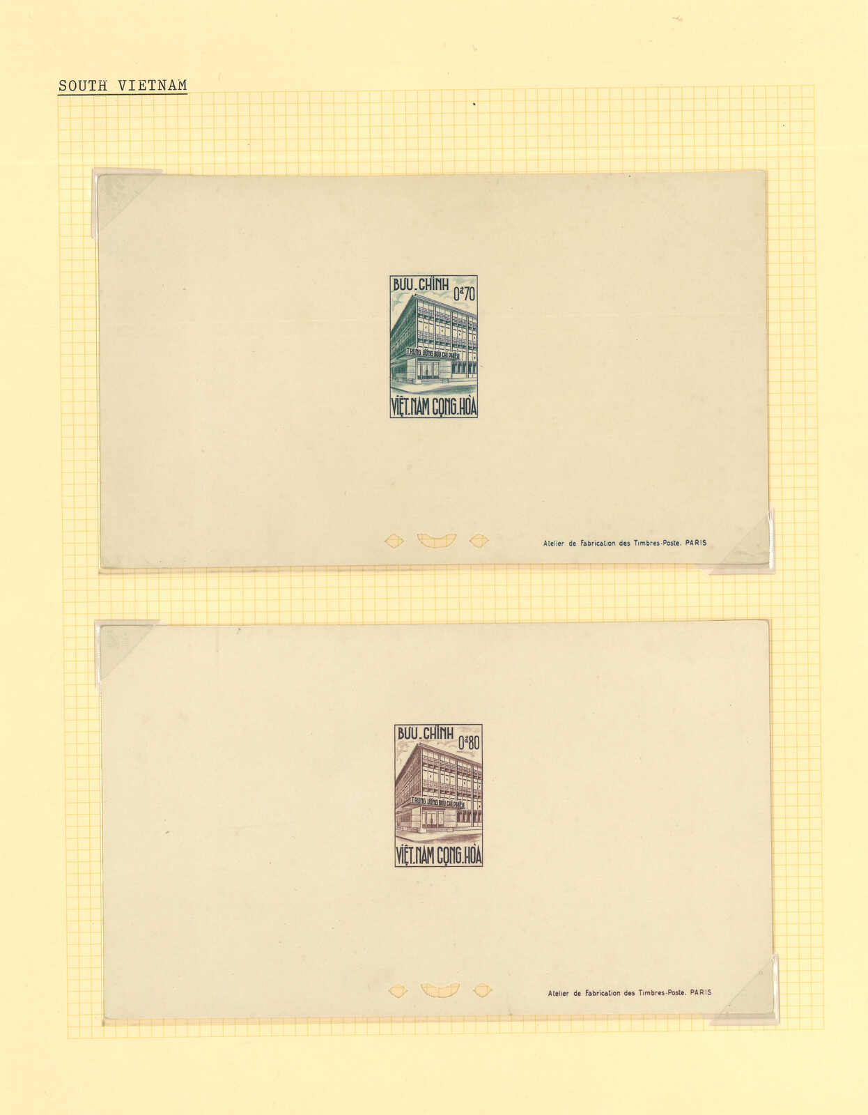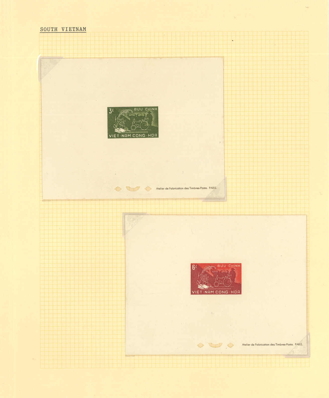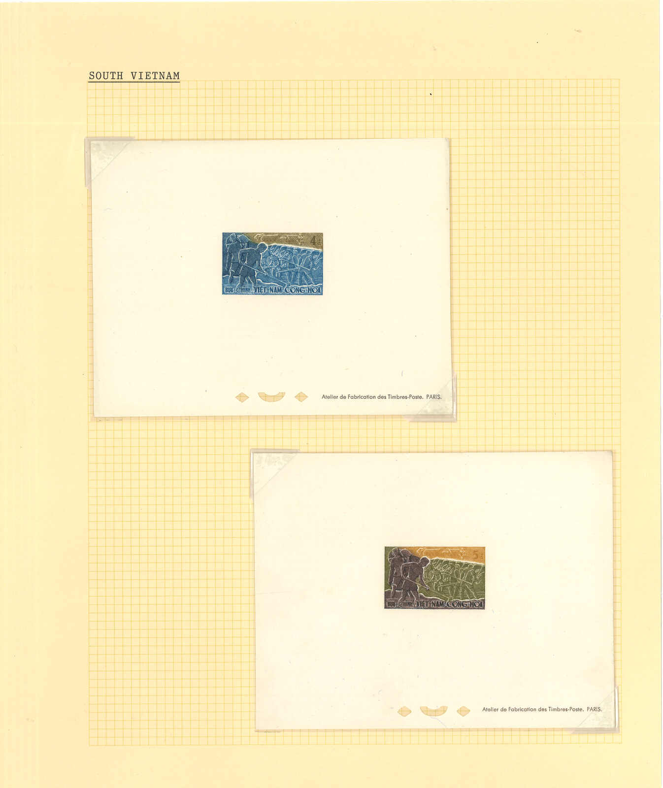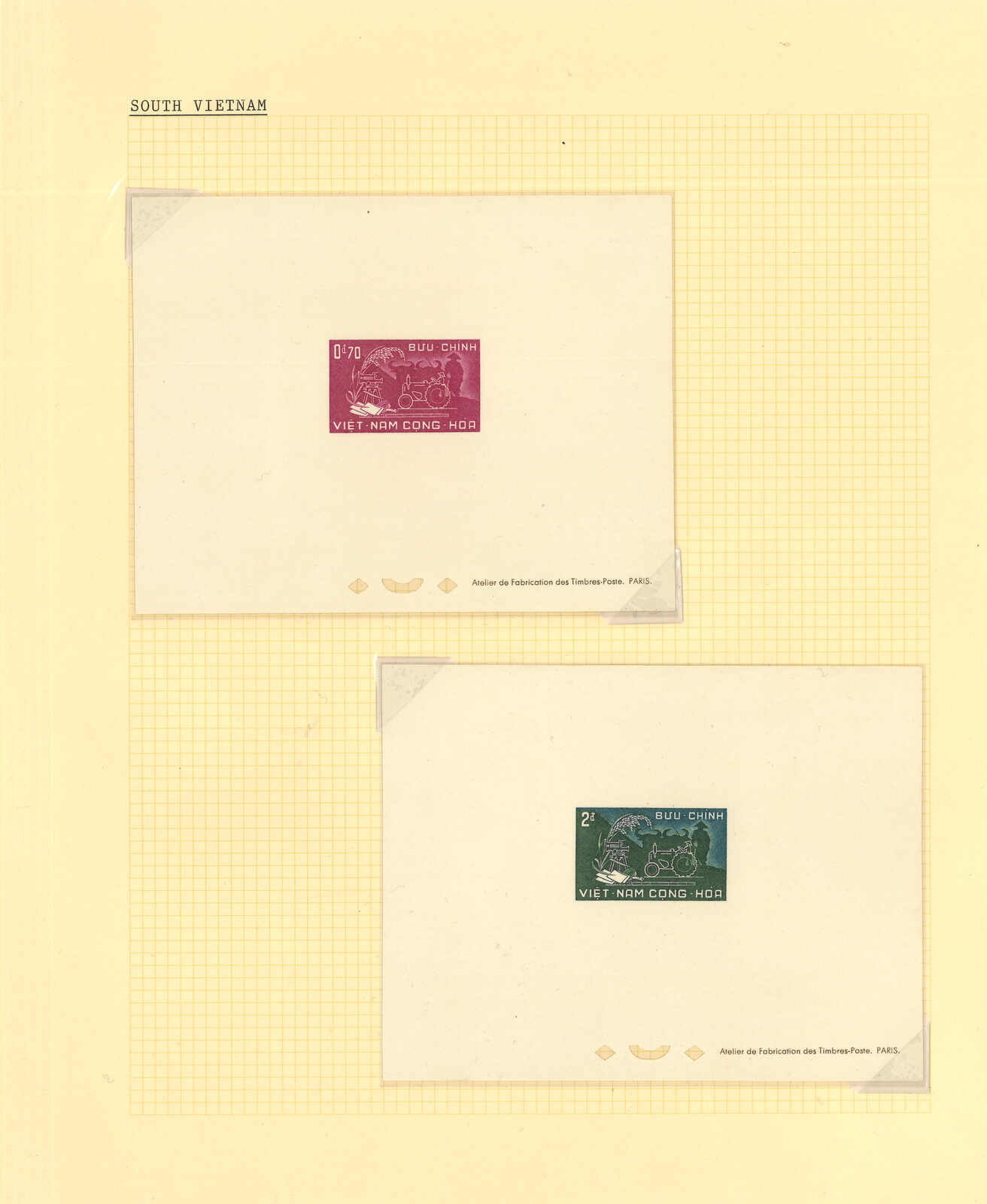 1950至1960年代一組十三套南越郵票之豪華試印張或無齒票,包括農業改革、越南鐵路重開、共和國四週年、第一屆童軍大露營等。均無貼上品。(Image 1) (Image 2) (Image 3) (Image 4) (Image 5) (Image 6) (Image 7) (Image 8) (Image 9) (Image 10) (Image 11) (Image 12) (Image 13) (Image 14) (Image 15) (Image 16) (Image 17) (Image 18) (Image 19) (Image 20) (Image 21) (Image 22)