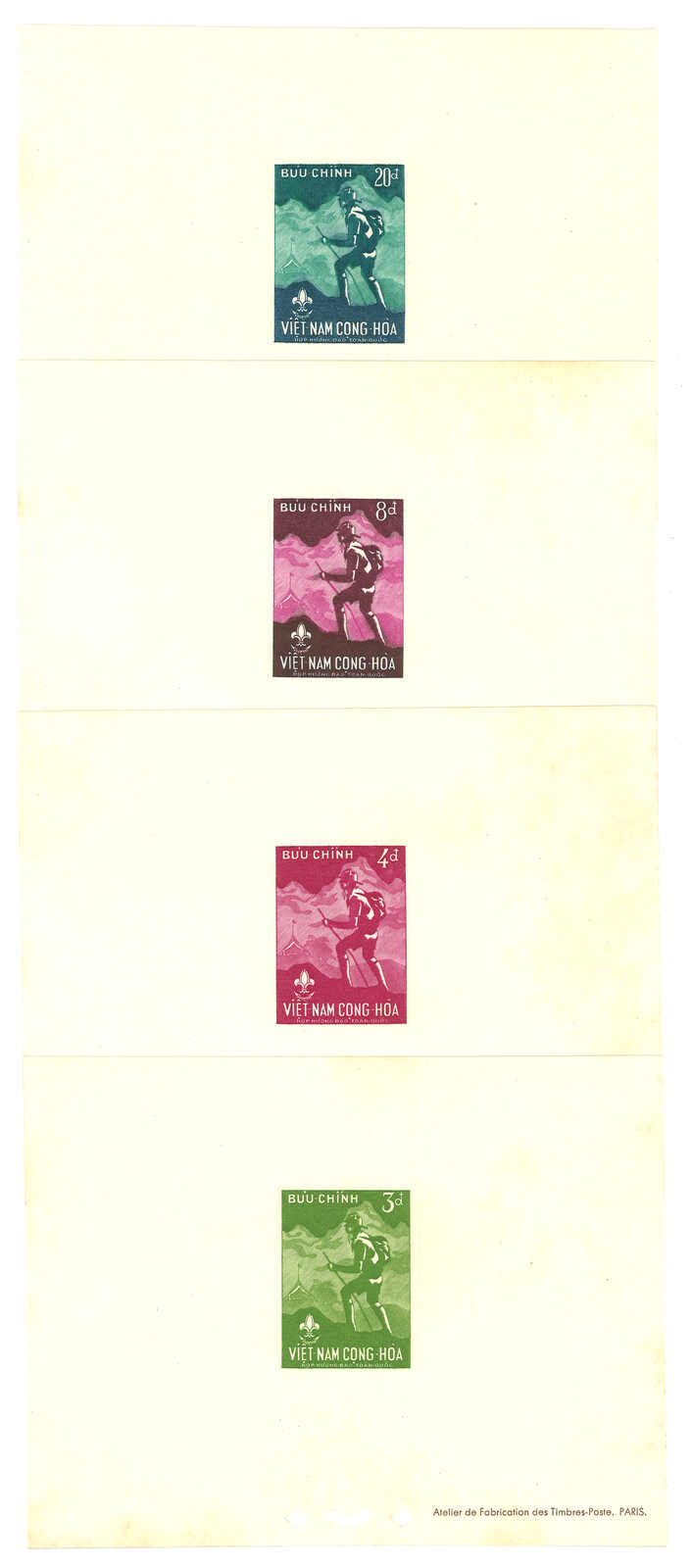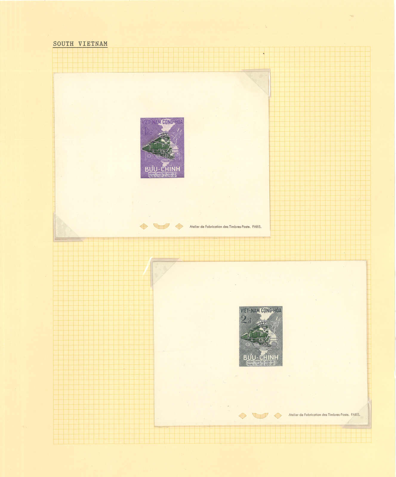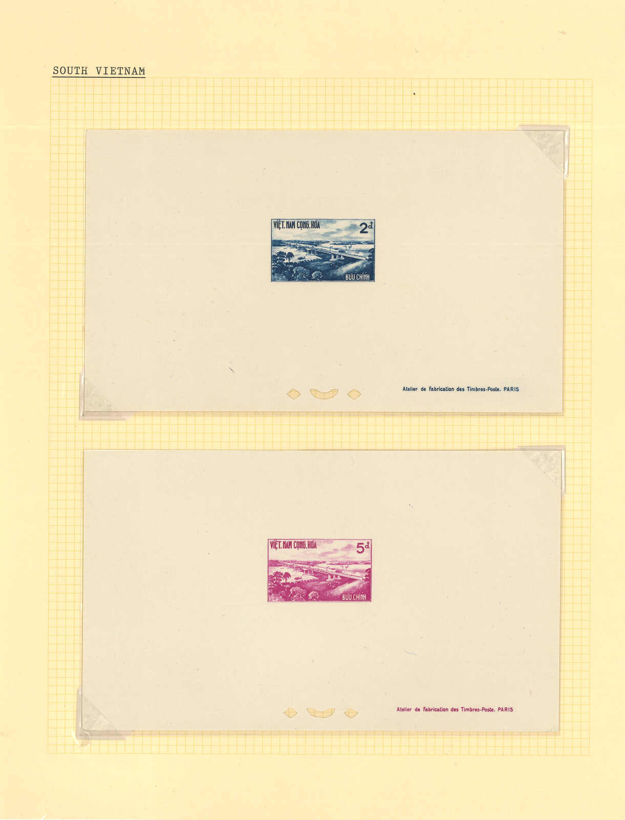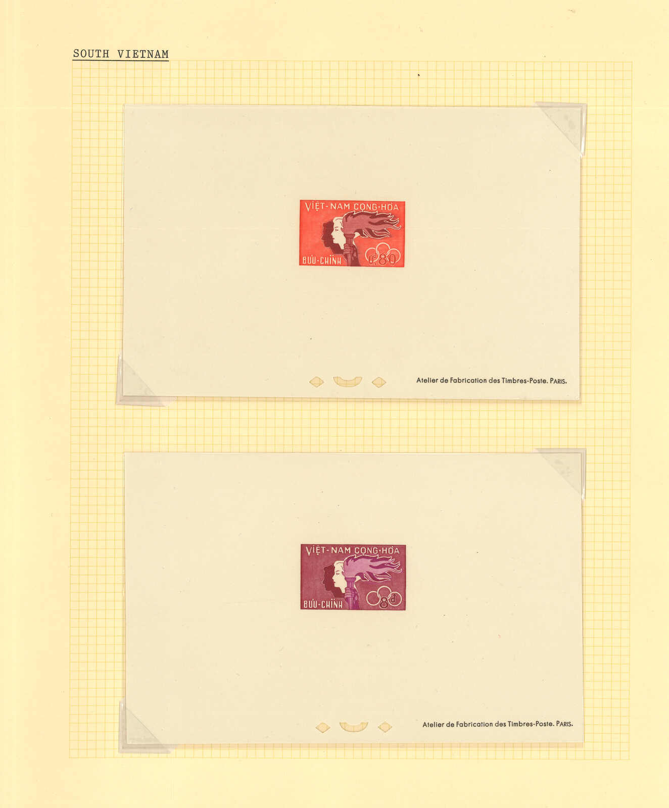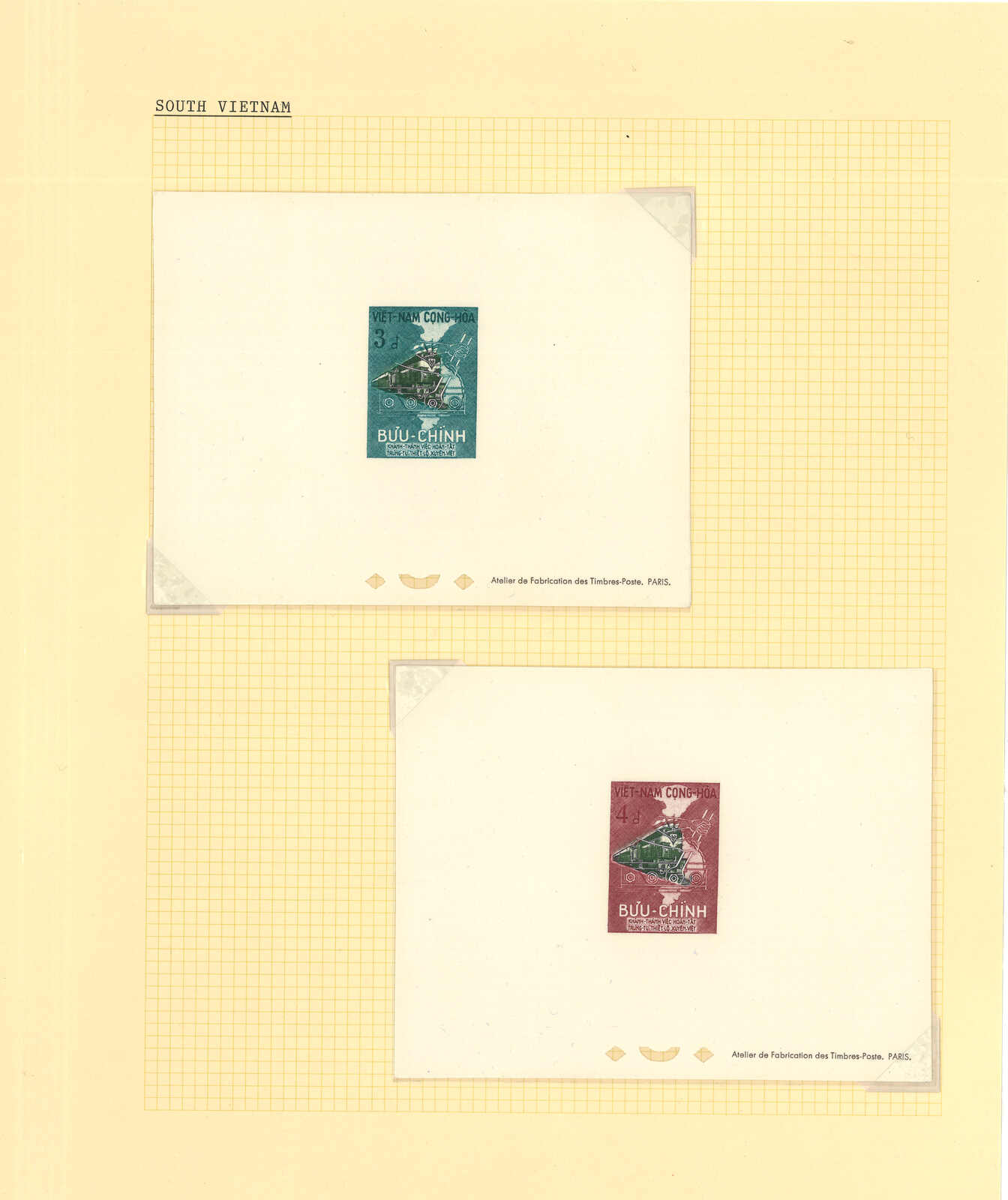 1950至1960年代一組十三套南越郵票之豪華試印張或無齒票,包括農業改革、越南鐵路重開、共和國四週年、第一屆童軍大露營等。均無貼上品。(Image 1) (Image 2) (Image 3) (Image 4) (Image 5) (Image 6) (Image 7) (Image 8) (Image 9) (Image 10) (Image 11) (Image 12) (Image 13) (Image 14) (Image 15) (Image 16) (Image 17) (Image 18) (Image 19) (Image 20) (Image 21) (Image 22)
