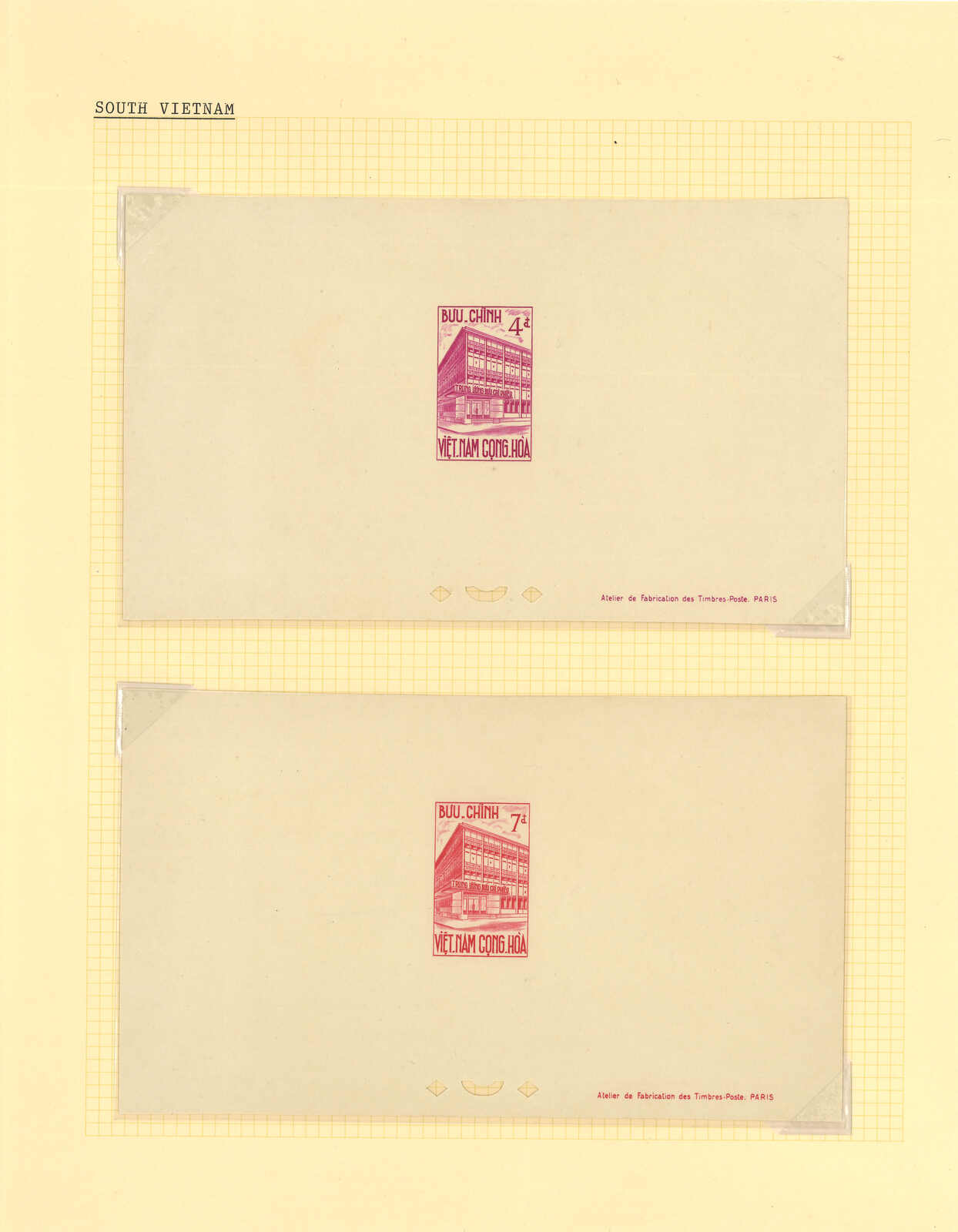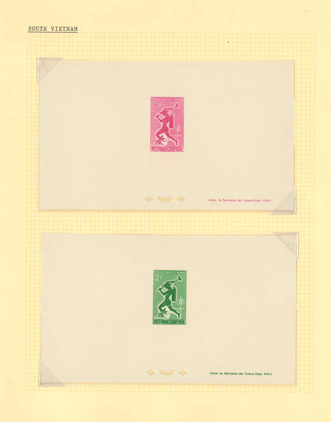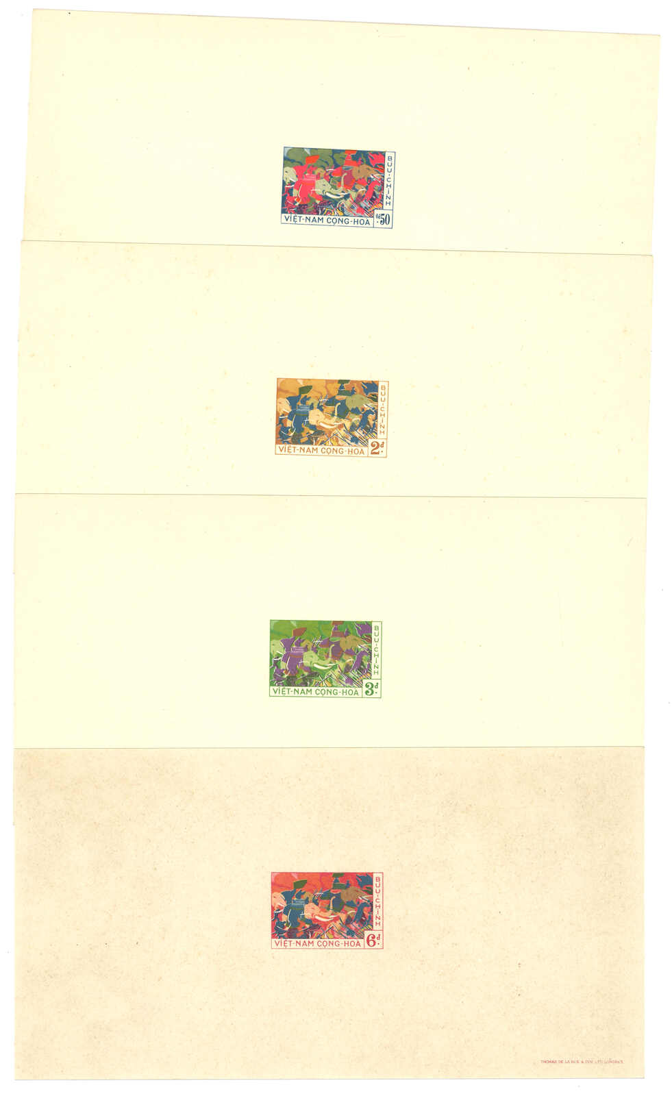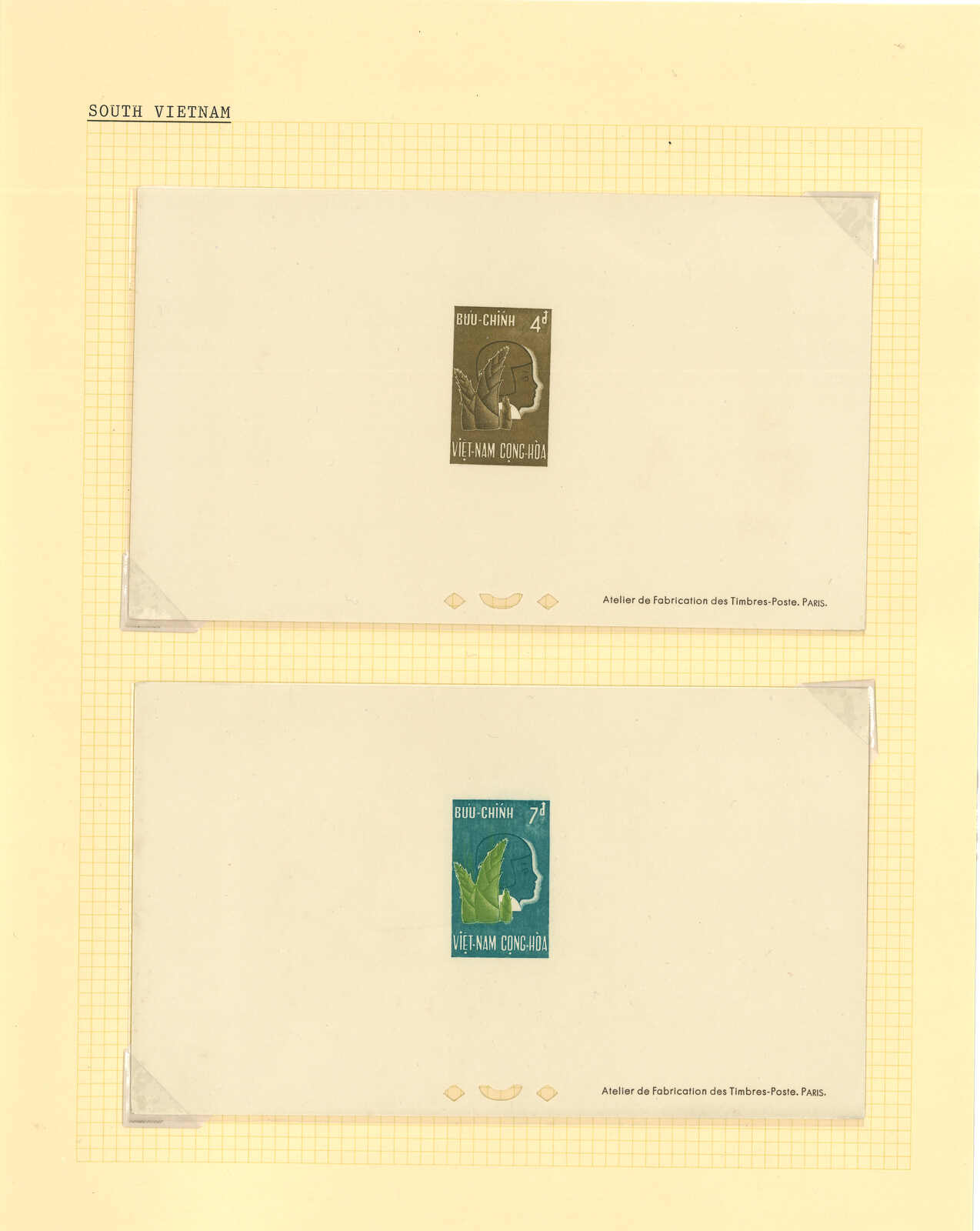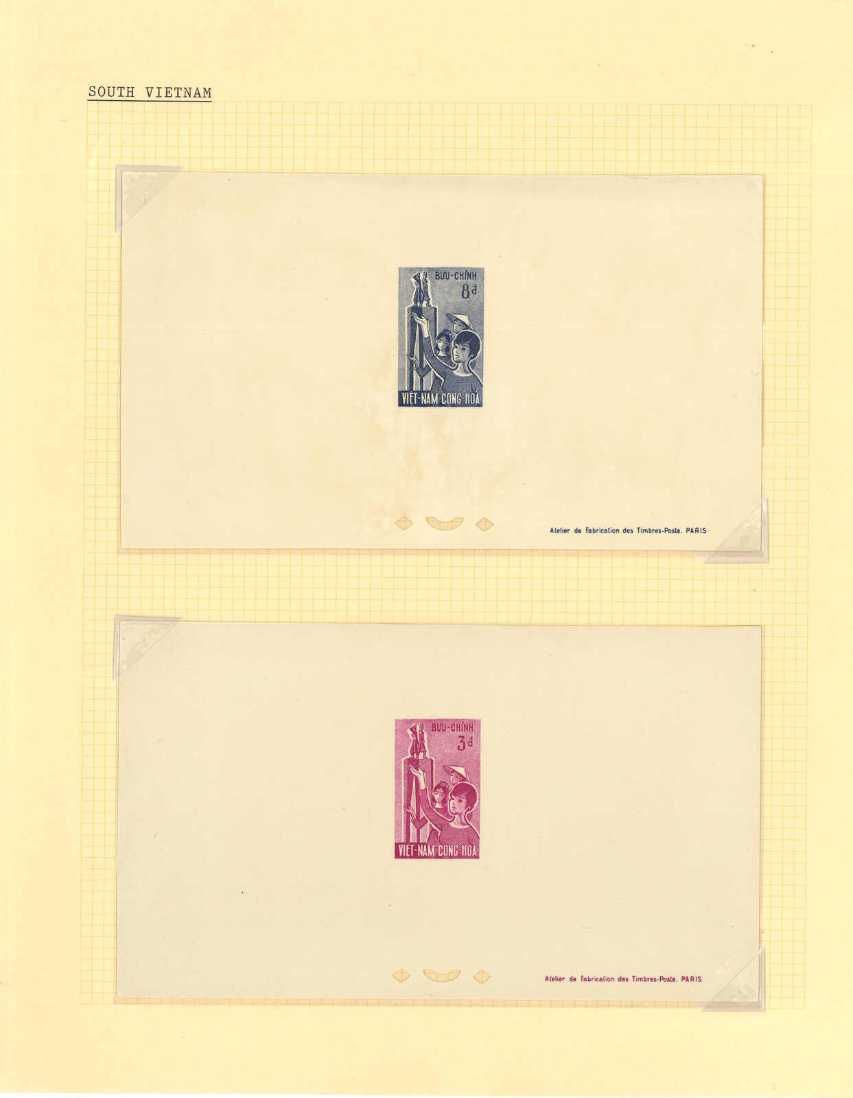 1950至1960年代一組十三套南越郵票之豪華試印張或無齒票,包括農業改革、越南鐵路重開、共和國四週年、第一屆童軍大露營等。均無貼上品。(Image 1) (Image 2) (Image 3) (Image 4) (Image 5) (Image 6) (Image 7) (Image 8) (Image 9) (Image 10) (Image 11) (Image 12) (Image 13) (Image 14) (Image 15) (Image 16) (Image 17) (Image 18) (Image 19) (Image 20) (Image 21) (Image 22)