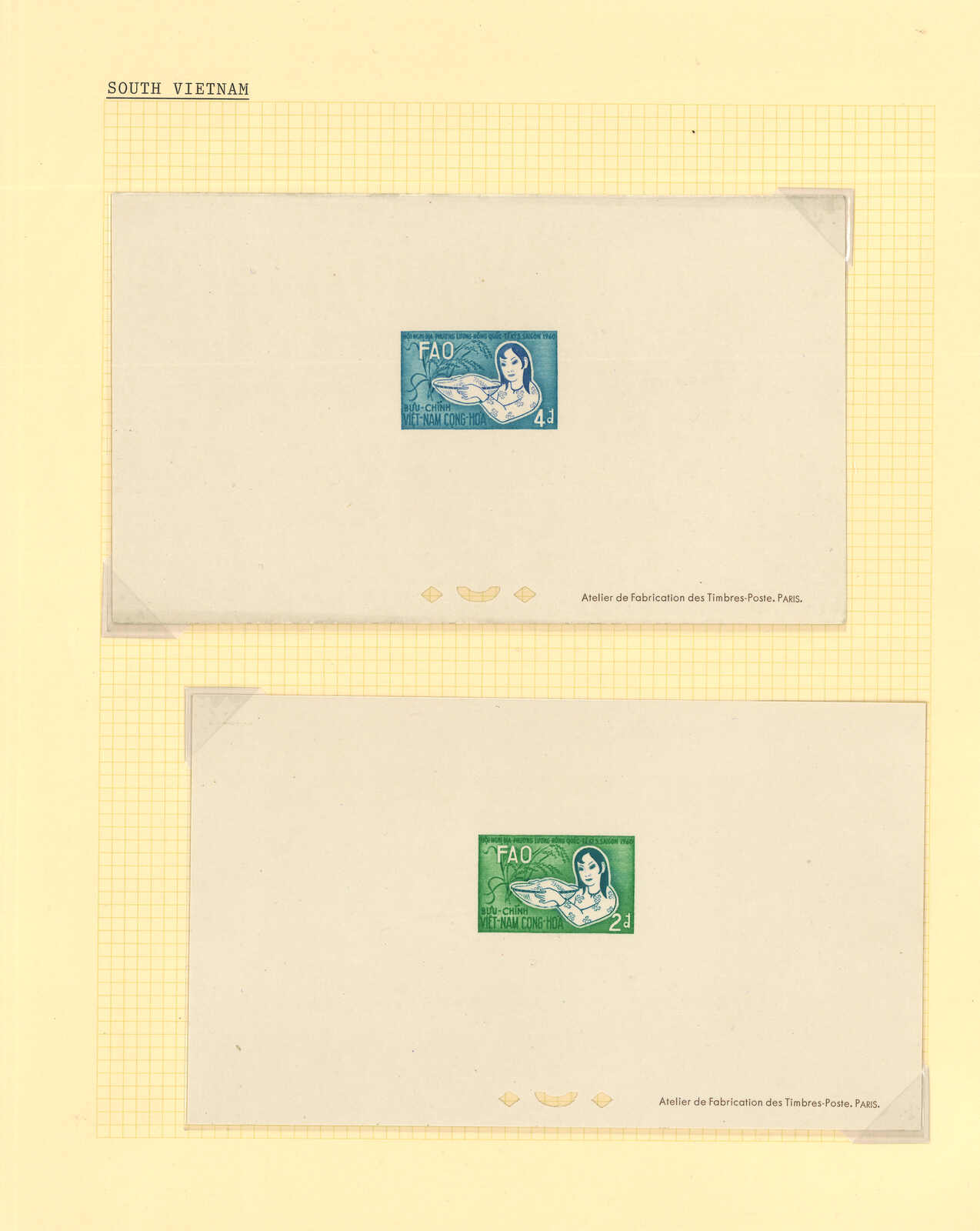 1960年代一組十八套南越郵票之豪華試印張或無齒票,包括糧食及農業會議、共和國五週年、農業發展、兒童福利等。均無貼上品。(Image 1) (Image 2) (Image 3) (Image 4) (Image 5) (Image 6) (Image 7) (Image 8) (Image 9) (Image 10) (Image 11) (Image 12) (Image 13) (Image 14) (Image 15) (Image 16) (Image 17) (Image 18) (Image 19) (Image 20) (Image 21) (Image 22) (Image 23) (Image 24) (Image 25) (Image 26) (Image 27) (Image 28) (Image 29)