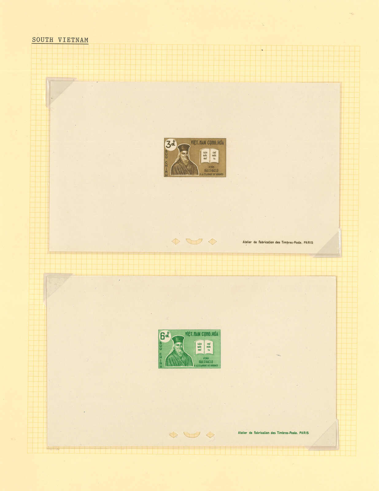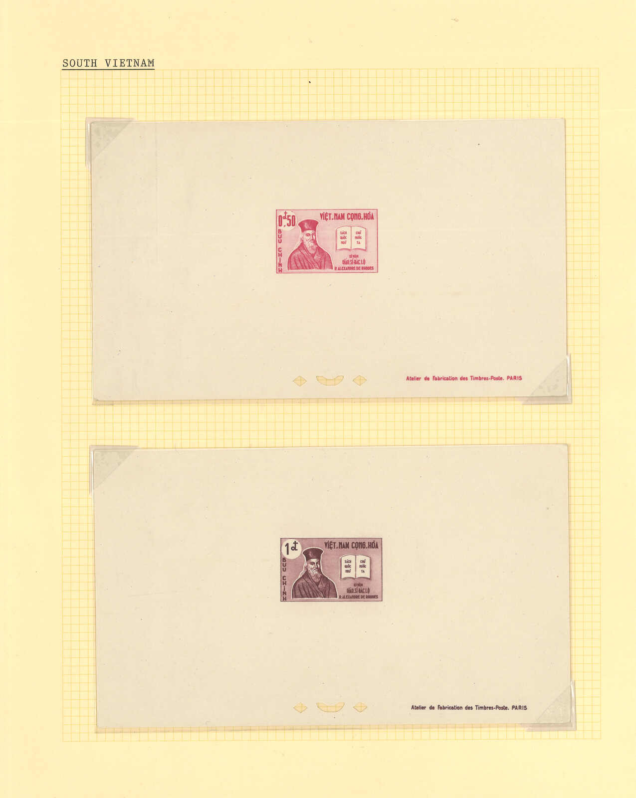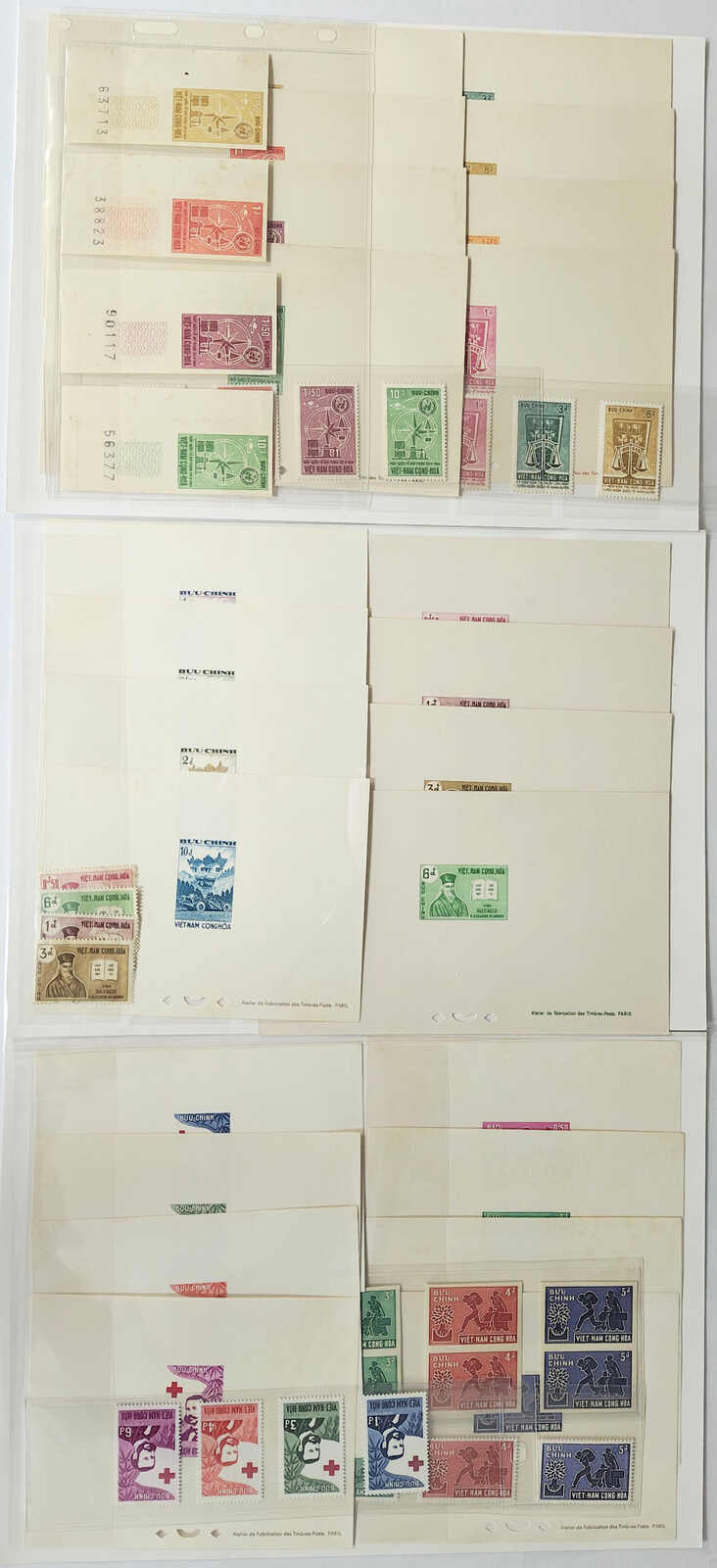 444 image1960-1970s a comprehensive collection of over 40 sets of South Vietnam deluxe die proof, imperf multiple and mint stamps, including 300th Death Anniv of Alexander of Rhodes, Red Cross, World Refugee Year etc. All MNH. Very Fine. Please view.