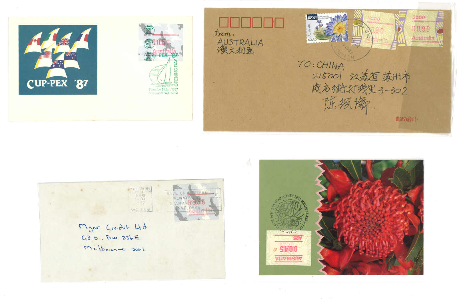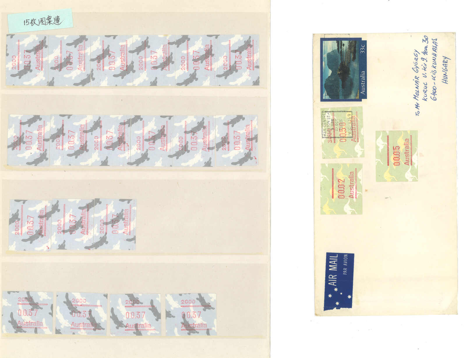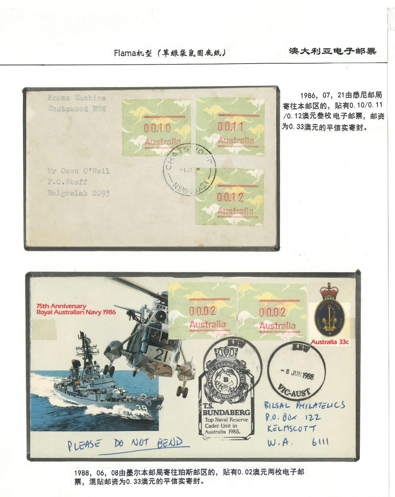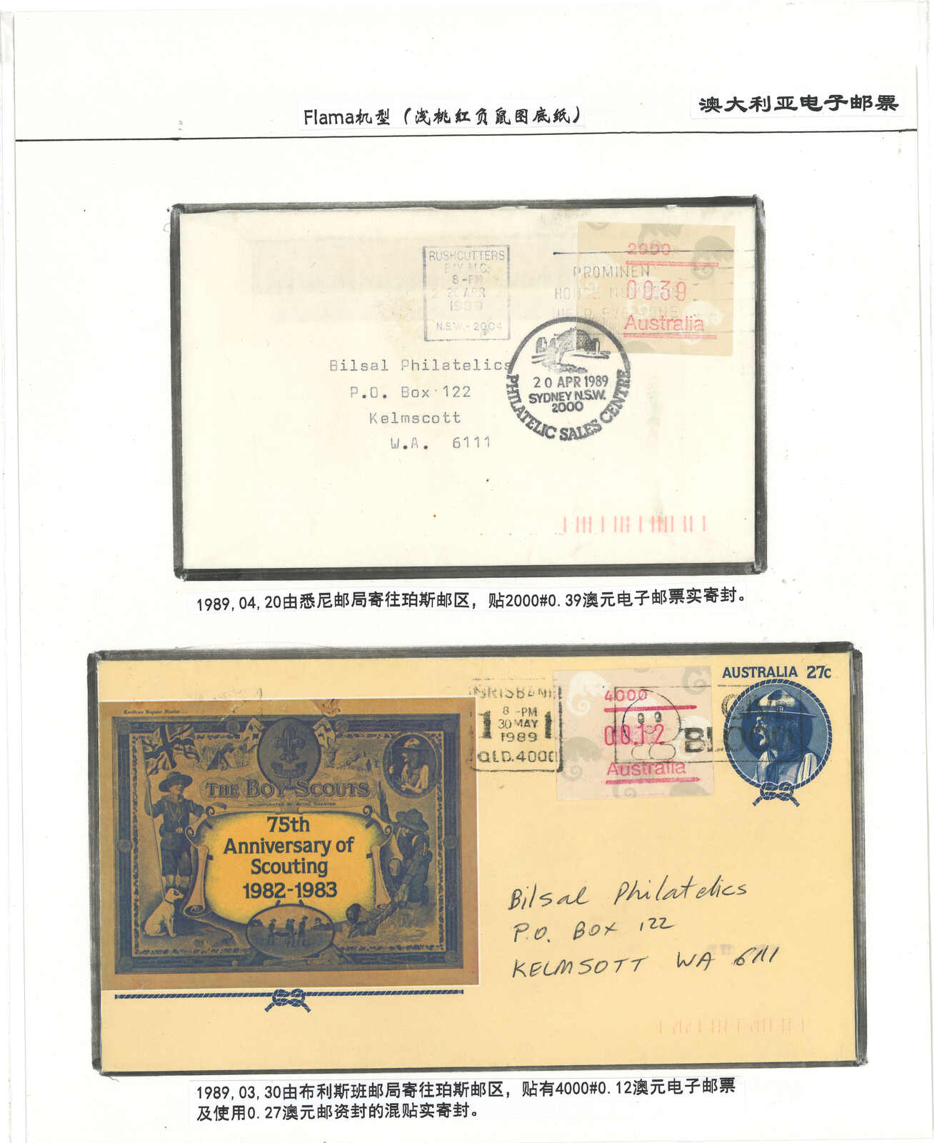 3554 **/cover image1985-1993 a comprehensive collection of Australia Kangaroo, Koala, Platypus, Opossums ATM stamps and covers in 58 exhibit pages (about 50 stamps and 100 covers), showing mint stamps and covers from Sydney, Brisbane, Canberra, Melbourne and other cities. A comprehensive and orderly arranged group.