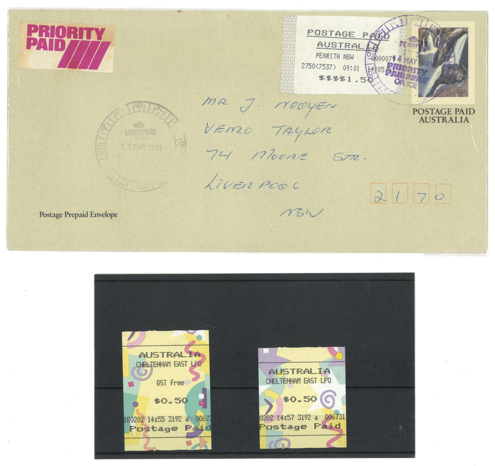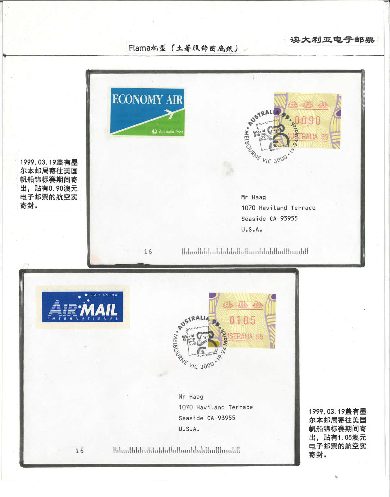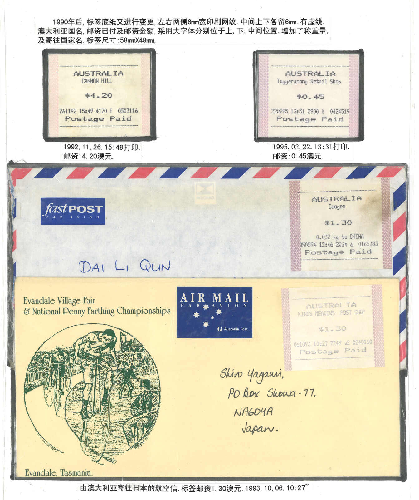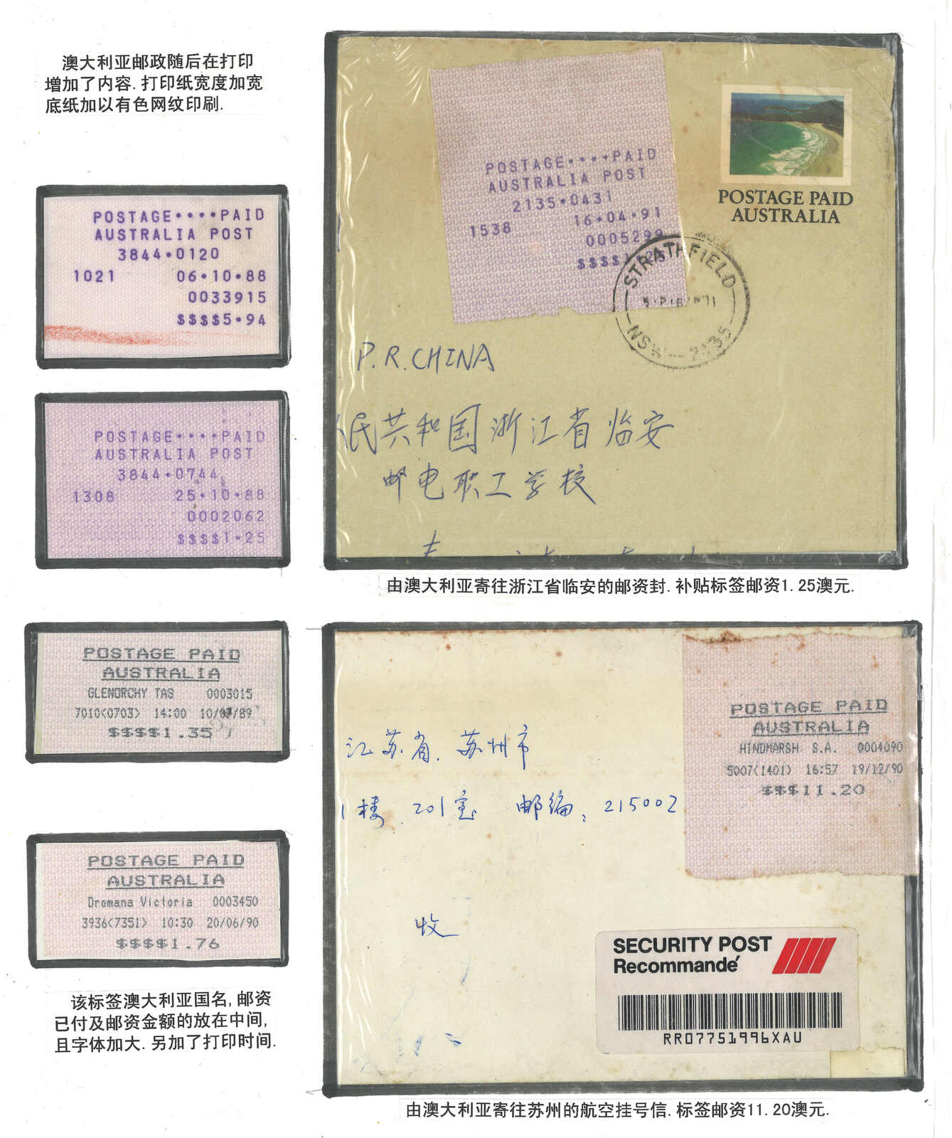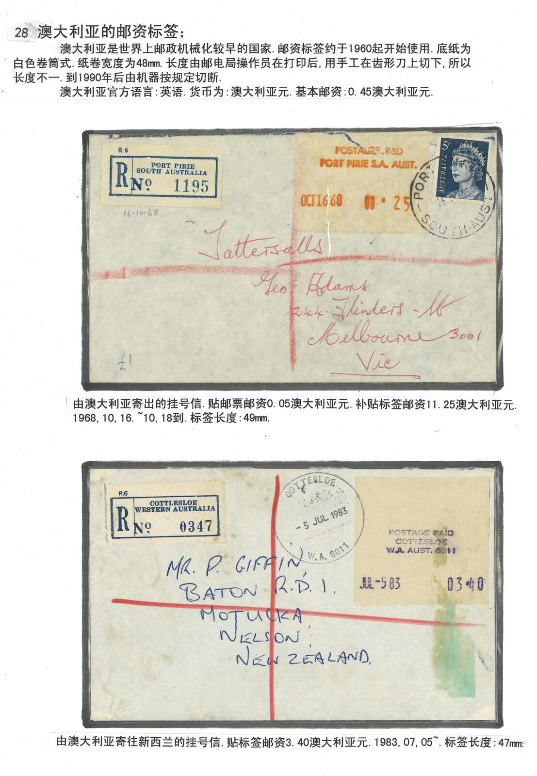 1970至1990年代一組澳洲郵資標籤集藏,包含約12件信封及18枚標籤(Image 1) (Image 2) (Image 3) (Image 4) (Image 5)
