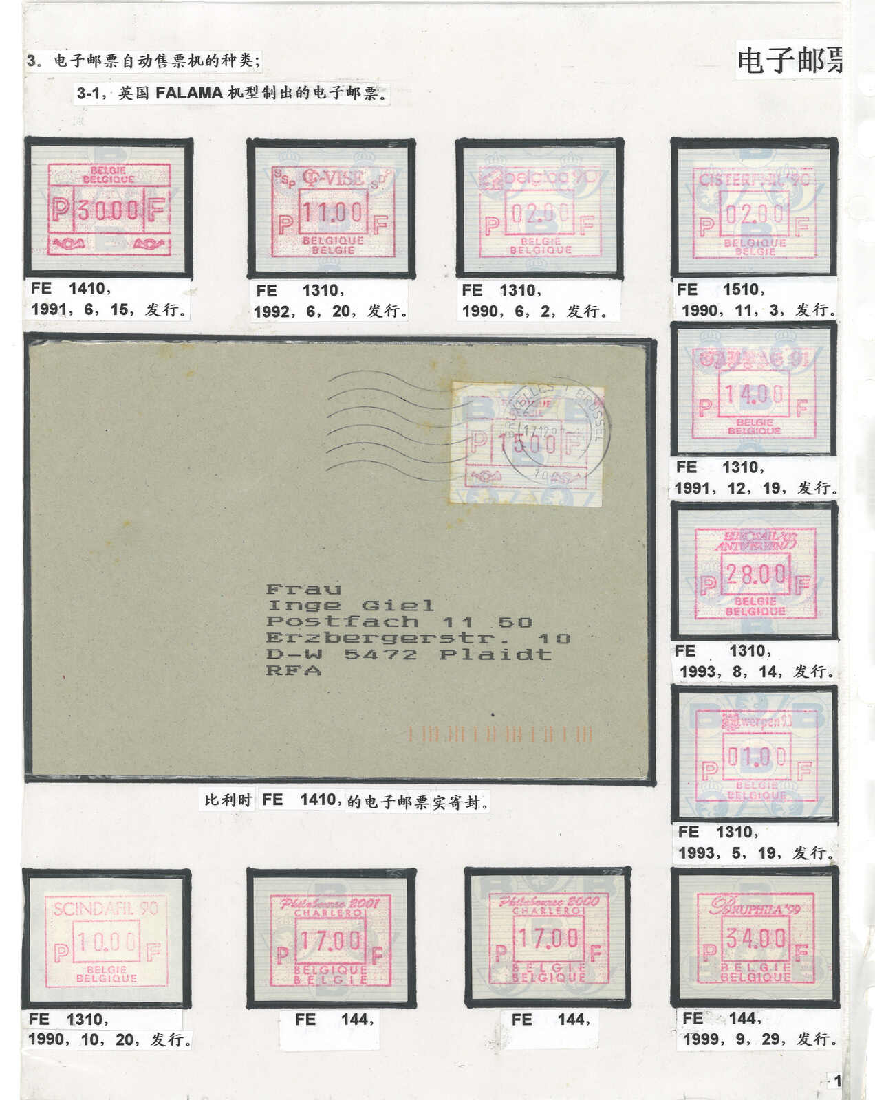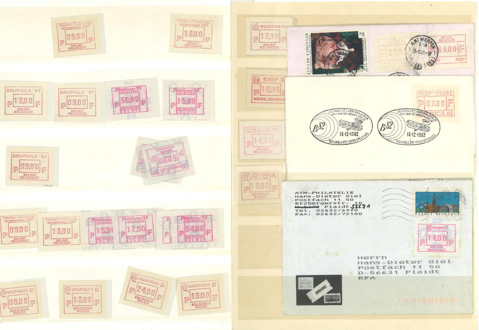 3469 **/cover image1981-2004 a collection of Belgium ATM stamps and postage labels, containing about 90 stamps and 85 covers, including early Frama issues in large quantity. Very comprehensive. Please view.