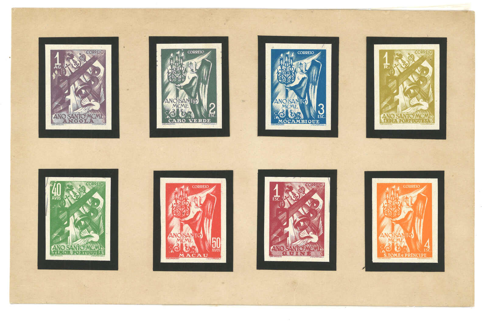 1951年葡國殖民地聖年結束無齒試印票一套8枚,貼於硬卡上。(Image